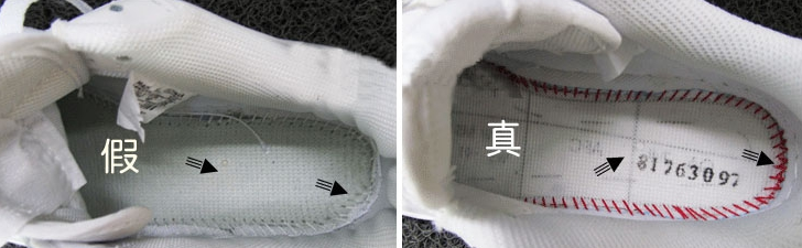 真版:鞋垫机印LOGO清晰不含糊,贴有原配尺码标签贴纸,鞋垫尺寸切割完整。非常完美。七、鞋底周边车线做工对比