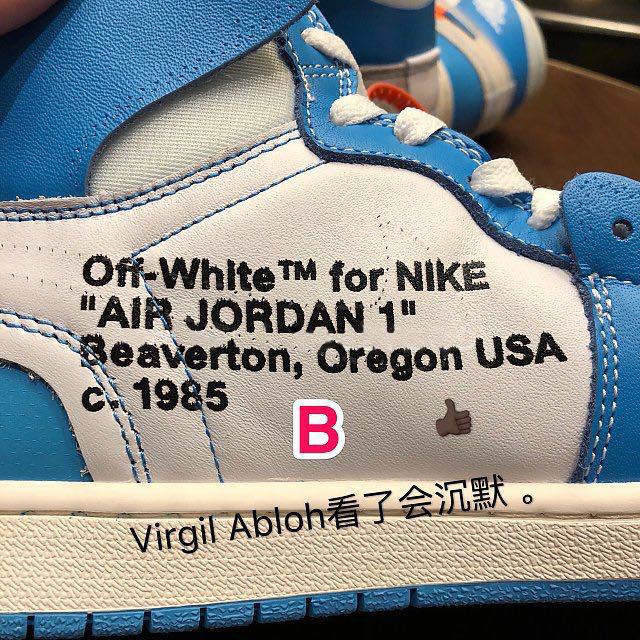 买莆田aj要注意些什么如何辨别Off White X AJ1 北卡蓝真伪 注意几点就行 看完你就明白
