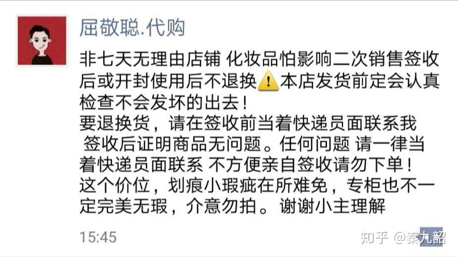 曝光一个微信假代购 1.他卖的东西 全是假货 从来不发去店里实体代购的图(美其名曰囤货) 大牌都很便宜(阿玛尼405卖169 祖玛珑小样套装 198 )(美其名曰清仓) 假货做的太明显 如果是精品有一点点瑕疵 这个价格还能接受 千万不要相信便宜的大牌 大多是假的 一分钱 一分货 (上真 下假) 2. 退货之后不退款 用支付宝转钱 实际是为了躲避微信投诉 之后也把我拉黑 3.这个人恶心至极 前后矛盾 推卸责任 第一个假设说明代购可以确认真假 第二个 代购不是专业的鉴定师 我也很无奈 我买到假货卖给你 你也只有认了 反正我的货经不起验证 快递代签站:只有签收之后才能打开包裹验货(除非是货到付款) 在签收前当着快递员的面验货是不可能的 他非要顾客做出一个不可能的事情 表现他的心虚 并且这个话是在我们一群朋友已经购买了东西之后说的 签收之后不退换 但是在之前又说过不正包退 虽然说不会发坏的出去 但是又没说不会发假的给你 是不正包退 只是不退钱而已 !zzui后 希望大家引以为戒 我吃过亏 我认了 不希望大家再吃亏 擦亮眼睛 多观察哈你的微信代购吧