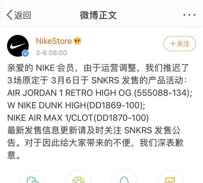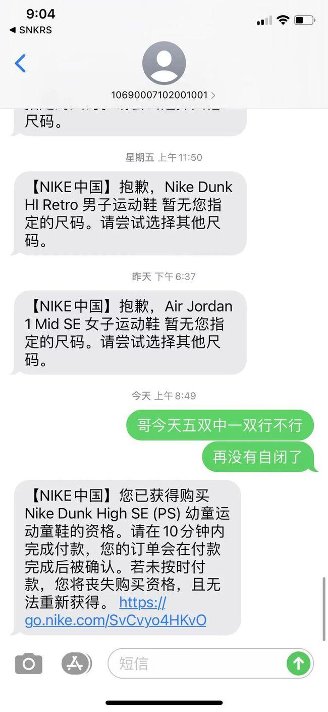 近日在网上流传出一张“狠图”,似乎有个精品鞋的BOT精品,总共46万多个账号参与抽签?然后中了2664个签(双鞋)。 不过,我们可以肯定的是,这图之前就有了,绝对不是今天的发售~所以尽量就不要拿这张图发朋友圈装X啦。 但如果精品操作属实的话,不管是哪一天精品的结果,目标还是SNKRS?那。普通人能中简直就欧皇中皇。。。 只能靠物理外挂能中,也很厉害了。 在精品面前,群控机房都是笨方法。只不过闲暇不发售的时间可以去做别的群控灰产······ 有一天,潮流精品购黑产、灰产圈,会天降正义吗? 原定3天前被SNKRS临时取消发售的3双鞋款,在昨天中午就已经全部回归,并且锁定了今日对外释放! 本以为是Bot待机太多服务器顶不住,但是没想到今天3月9号的发售更刺激,从早上9点一直覆盖到12点。 总共4双重磅鞋款将会释出。 在很多人眼里,这都是赚钱机会呀···· 你早上收到这样的短信了吗? 感兴趣的话大家还请尽快去参加~现在只剩下12点场的Dunk啦! 发售时间:2021年3月9日12点 (北京时间) https://www.nike.com/cn/launch/t/womens-dunk-high-orange-blaze 发售时间:2021年3月9日12点 (北京时间)目前该鞋款市场价格超过2000,溢价多的超过2倍! https://www.nike.com/cn/launch/t/air-jordan-1-university-blue 预计你今天收到多少个道歉提示? 注意:Supreme情报网会密切关注该SNKRS的发售情报,并会及时告知大家怎么买,去哪里买!敬请关注我们的公众号推送、新浪微博!