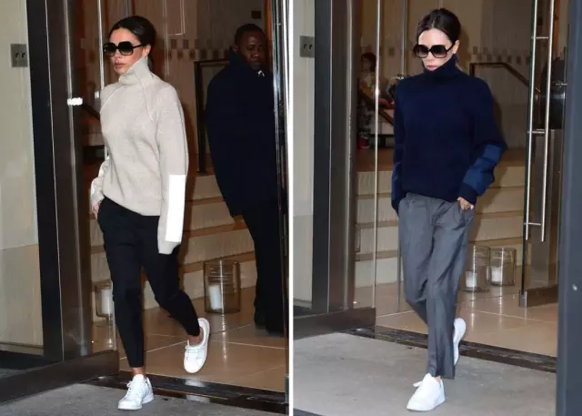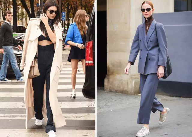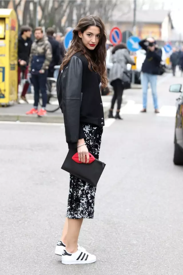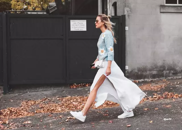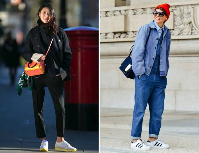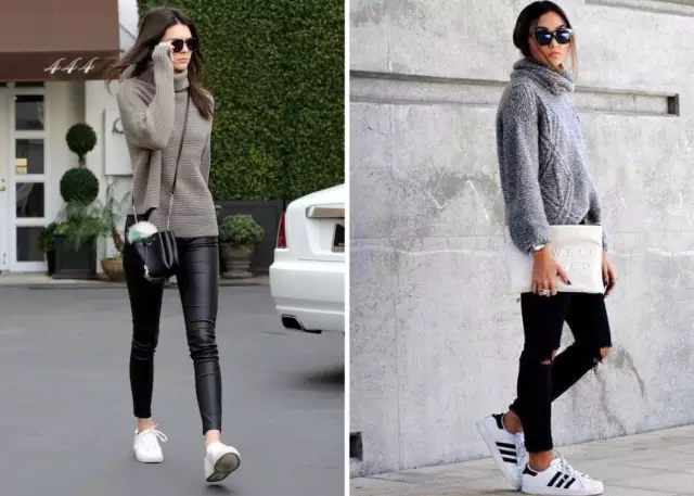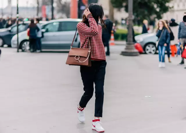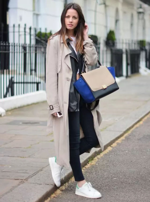不知道你是不是和小编一样,隔段时间就会在朋友圈里看到标题类似于“小白鞋已经过时了”、“你居然还在穿小白鞋!?”的推文。而一般这个时候,小编都会翻一个大白眼。 那么像小编这种既想要风度又想要温度的人,秋冬季节应该怎么穿小白鞋呢? 1. 从哪儿来,回哪儿去——运动风 小白鞋和运动服搭配,永远不会用违和感。特别是搭上今年的运动风大潮流,大衣+运动裤+小白鞋,又好穿又潮。对于和小编一样身材普通的人来说,切忌穿宽松的运动裤! 或者是全套运动服!否则简直就是车祸现场! 那么普通人们,应该怎么穿呢? 大衣+侧边条纹运动裤 的搭配zzui保险!大衣可以中和掉运动服的随意,给整体搭配加入一点硬朗的形状,而侧边条纹的修身运动裤还可以拉长我们的腿部线条。 2. 酷酷街头风 和小白鞋第一好搭的风格,当时是简单随意的街头风了。 可以像江疏影那样 露肩上衣+撕边牛仔裤+小白鞋+mini包 的全黑调调,不过江疏影和我们不一样,她还在细节搭配上做文章,给自己的Prada换上了带花卉的宽背带。 你也可以用 灰色毛衣+黑色牛仔裤/皮裤+小白鞋+ mini包 的经典搭配出街,像肯豆一样,你还可以在自己的水桶包上挂了一个红翻天的Fendi小怪兽挂饰。 除了全黑、黑白灰和蓝白搭配,还可以像大表姐刘雯那样,全套丹宁+小白鞋。 3. 西装风 肯豆用 裸色长风衣+黑色bra+黑色高腰西裤+小白鞋 搭配出街,把一米八的腿长直接拉长到两米。 街拍里的麻豆们也都是 西装+拉链高领衫+小白鞋 搭配着穿,太禁欲太难穿了! 但是小编没这个身材,只敢借鉴一半,用 宽松的卫衣/毛衣+修身西装裤+小白鞋 来凹造型,就像另一个小白鞋狂魔大表姐一样。 4. 秋冬也能用小白鞋搭的裙子们! 时尚博主们都按着 印花毛衣+开叉半裙+小白鞋 套路来。印花毛衣和开衩裙能给小白鞋的运动风增加一点柔和感,适合爱美的女孩子们在秋天穿。 用 红唇+皮裙/亮片裙+小白鞋 搭配出街,能给人酷酷的感觉,害怕冻腿的女孩们还可以用重回秀场的黑丝袜/渔网袜搭配~ 5. “我不管我不管,我冬天就是要穿好几层”的叠穿风格 小编单独把这一类列出来,是因为叠穿很有讲究,否则一不小心就会裹得像一个球! 叠穿的要点在于,下身搭配一定要简洁修身。 zzui安全的搭配是:大地色系大衣+收口裤/露出脚踝的直筒裤/露出脚踝的阔腿裤+小白鞋,露出脚踝怕冷怎么办?穿上温暖的袜子啊~ 也可以用亮眼的颜色搭配叠穿,但是一定要顺色! 但是微胖的小编不敢穿大量亮色的衣服,但是我们可以用亮色单品来提亮全身搭配!比如像大表姐一样 全黑叠穿+橙色斜挎包+带一点荧光色的小白鞋,或者是街头随性的 牛仔外套+牛仔裤+红色针织帽。