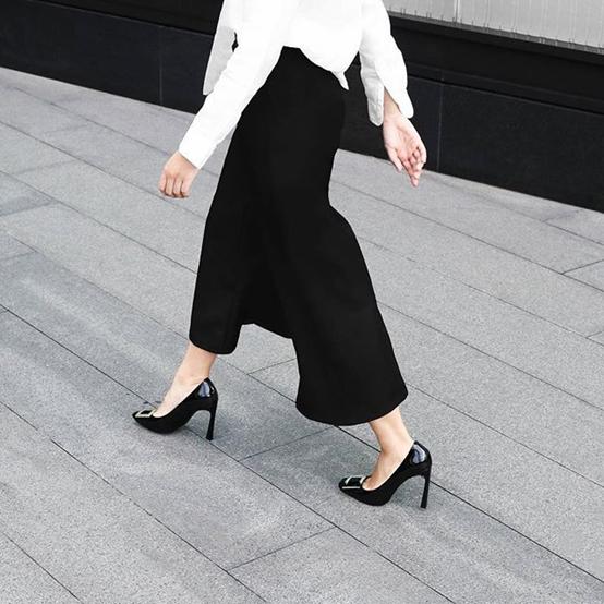 高跟鞋对于女人来说永远有着致命吸引力。《欲望都市》中的“嗜鞋狂魔”Carrie曾把鞋称作自己的爱人,即使快要流落街头,也抵挡不了美鞋的诱惑。说到女孩们心目中的dream shoes, Roger Vivier一定是少不了的那个品牌。 Roger Vivier被称为“鞋子的弗拉戈纳尔”,于1937年在巴黎的Roy Royale开设了他的第一家精品店。高跟鞋是他卓越的领域 - 他是1954年推出的Aiguille高跟鞋的父亲,以及蜿蜒的Virgule鞋跟,自1963年以来,他一直被认为是他的同名品牌的宣言。 Roger Vivier的鞋子有着鲜明的标识——方形扣。不管是平底、高跟,漆皮、绒面革,在RV的鞋子上总能看到各种不同材质的方扣设计。Roger Vivier品牌zzui受欢迎的鞋款Belle Vivier已然是鞋履界的经典之作,其灵感取自法国女星 Catherine Deneuve 在 1967 年的电影《白日美人》中所穿着品牌设计。 鞋型侧面线条流畅,细致,将脚背展露出来,显得腿又细又长。它的设计深深的影响了之后所有女性高跟鞋的外观。Belle Vivier采用亮面皮革制作,当然,“方”的元素依旧无处不在,方跟,方头和方扣的设计复古Chic又美貌,看着样子就想收入囊中啊! 向来很会穿的戚薇选择用白色连衣衬衫裙大批额灰色Belle Vivier,清爽又利落。搭配红唇和墨镜,是所有女生都可以学习的通勤穿搭 小花张雪迎选择用红色的Belle Vivier搭配一身牛仔,这套穿搭简直是为初入社会的少女们量身定制的,俏皮中透露出了一丝优雅 阚清子这套充满法国风情的穿搭搭配银色的belle vivier trompette,将优雅,随性,浪漫表现得淋漓尽致 现Belle Vivier上线寺库,蜈蚣精们快点去签收这份优雅吧 !
