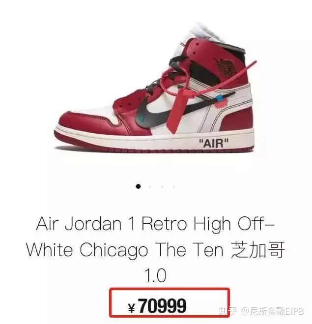2017 年,Nike旗下Air Jordan和精品潮牌OFF—WHITE合作的,名为 OFF—WHITE·Air Jordan 1 的球鞋从售价 1499 元的很快涨到 12000 元。