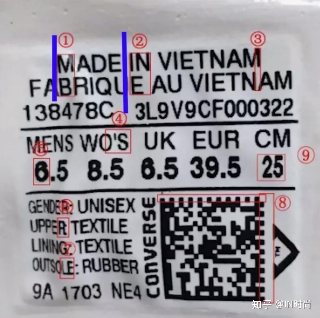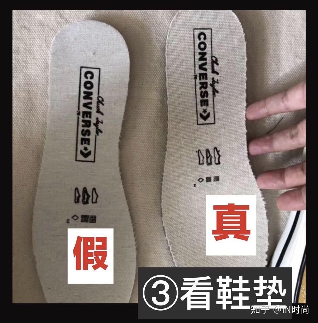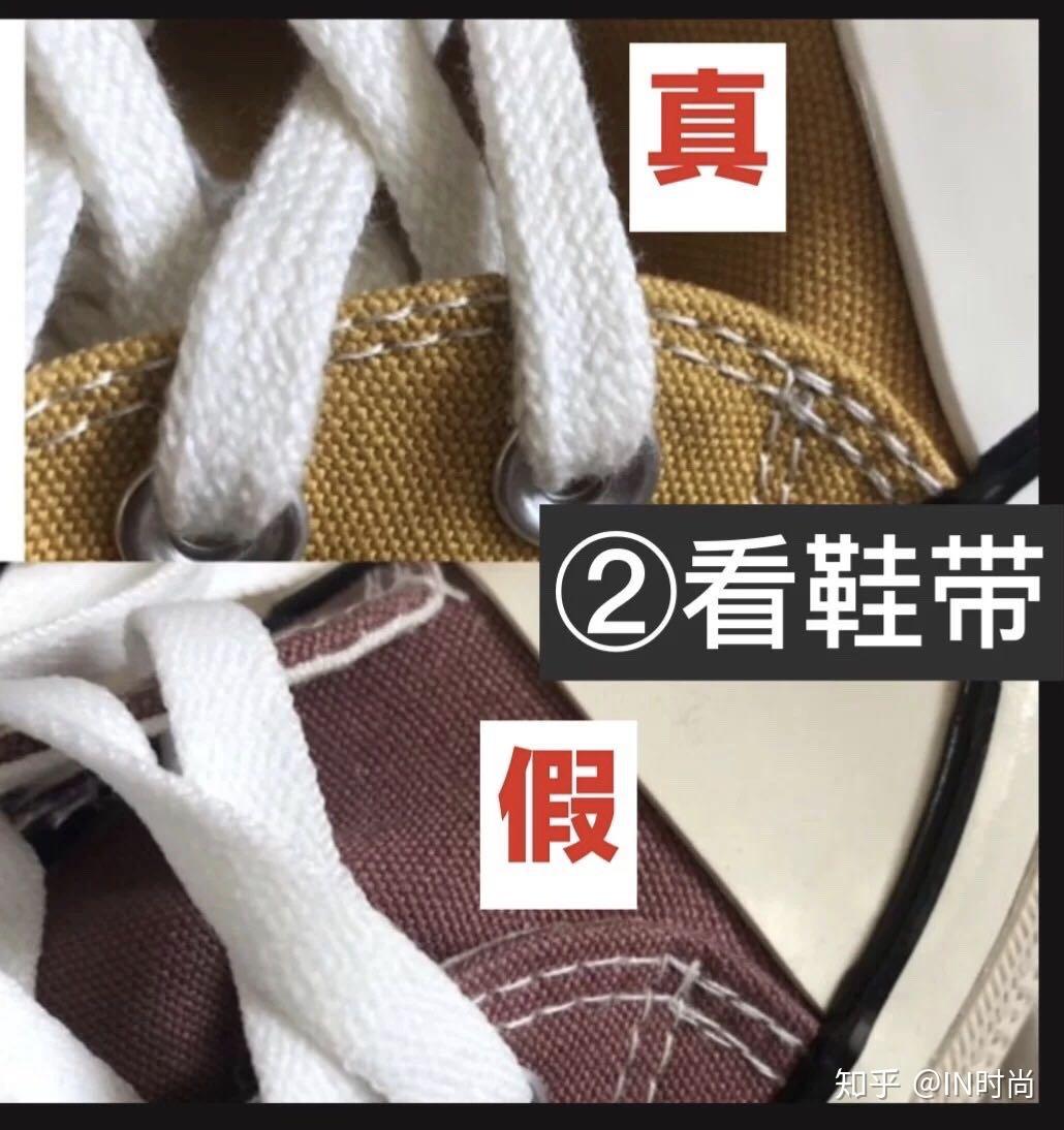 匡威Converse帆布鞋,经典的1970,是很多人青春必备,不管是学生、上班族、还是稍大一点的80后,很多人的鞋柜都有一双匡威的帆布鞋,但现在市面上很多品质版本、莆田鞋等。究竟该如何去辨别真假呢,今天就来细说一下。 要辨别匡威Converse帆布鞋的真假可以从以下九个方面去看 1、 看鞋子的脚后跟的鞋标:正品的鞋标印精品清晰,细节处理比较精致,质地哑光,图案和文字都有一定的立体感,精品品的图标和文字整体都会比较粗糙和模糊。 2、 看鞋带:正品的鞋带采用的织物质量较好,编织出来的鞋带表面有纹理规整,精品品的鞋带编织纹理肉眼可见的机打,鞋带单薄,手感软绵绵。 3、 看鞋垫:同样是看鞋垫的图标和文字印精品清晰度,正品鞋垫的图文印精品工艺好,鞋垫厚重,而精品品的鞋垫担保,印精品工艺差,印精品容易出现溢墨导致模糊,在一些比较小的印精品文字里面可以看到,精品品的成品小文字模糊比较严重,正品则是清晰有纹理。 4、 看鞋舌:与鞋垫跟脚后跟鞋标印精品同理,精品品的鞋舌图标及文字的印精品比较粗糙模糊,比较小的文字印精品出现线条粗大交叠导致的模糊感,而正品印精品比较清晰,有立体感 5、 闻气味:正品Converse的帆布鞋新鞋虽然也有“新鞋味”但不刺鼻,有一股帆布混合橡胶的气味,但是精品品新鞋开盒就会扑面而来一股刺鼻的胶水味,而且散味比较慢。 6、 看鞋后跟弧度:正品匡威1970高帮款,鞋后跟都是有弧度,看起来有一点点褶皱感,而精品品的鞋后跟是没有弧度呈直线的。 7、 看车线:正品鞋头第一个鞋带孔前是三条双车线汇合的,而精品品一般是双线汇合。 8、 看鞋舌文字对齐:一般正品鞋舌上第一行第一个英文字母M是对齐第二行第三个英文字母B的,第一行第五个英文字母I是对齐第二行第八个英文字母E的,也就是M和B对齐,I和E对齐。而精品品鞋舌上是没有对齐的 9、 看鞋底防伪标志:一般正品的鞋底边边都会有小圆点的防伪标识,而且小圆点处理表面比较光滑,精品品的鞋底要么是没有小圆点的,要么就是小圆点表面处理不光滑直接是横切出来的。 以上鉴别方法适用于市面上大部分的精品品,但有些莆田的版本对比下来会发现细节做的很到位,鞋标字体粗糙、印精品歪斜不贴合、走线不齐、鞋头偏大、鞋底胶质等等精品品特质在一些莆田鞋上是找不到的。对一些高质的莆田鞋,不能做工细节去对比,只能是从上脚感觉来辨别,对比正品,莆田高质的Converse帆布别踩实感更强,而正品的踩实感会稍软,站久了正品的疲累感会低于莆田的精品品。 未经许可,本文严禁转载哦。关注潮牌货源,喜欢潮牌资讯,95后广东妹子在常熟潮牌外贸村,关于外贸村的潮牌故事一直都会,可关注主页了解我,整理不易,记得点赞交作业哦。