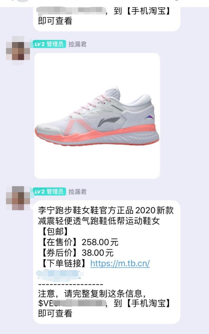 比如这双李宁运动鞋,淘宝官方旗舰店价格258元,领了券后,居然38买到手了。为啥同样的商品,我们自己在淘宝买需要花原价的钱,而在群里买却优惠这么多?