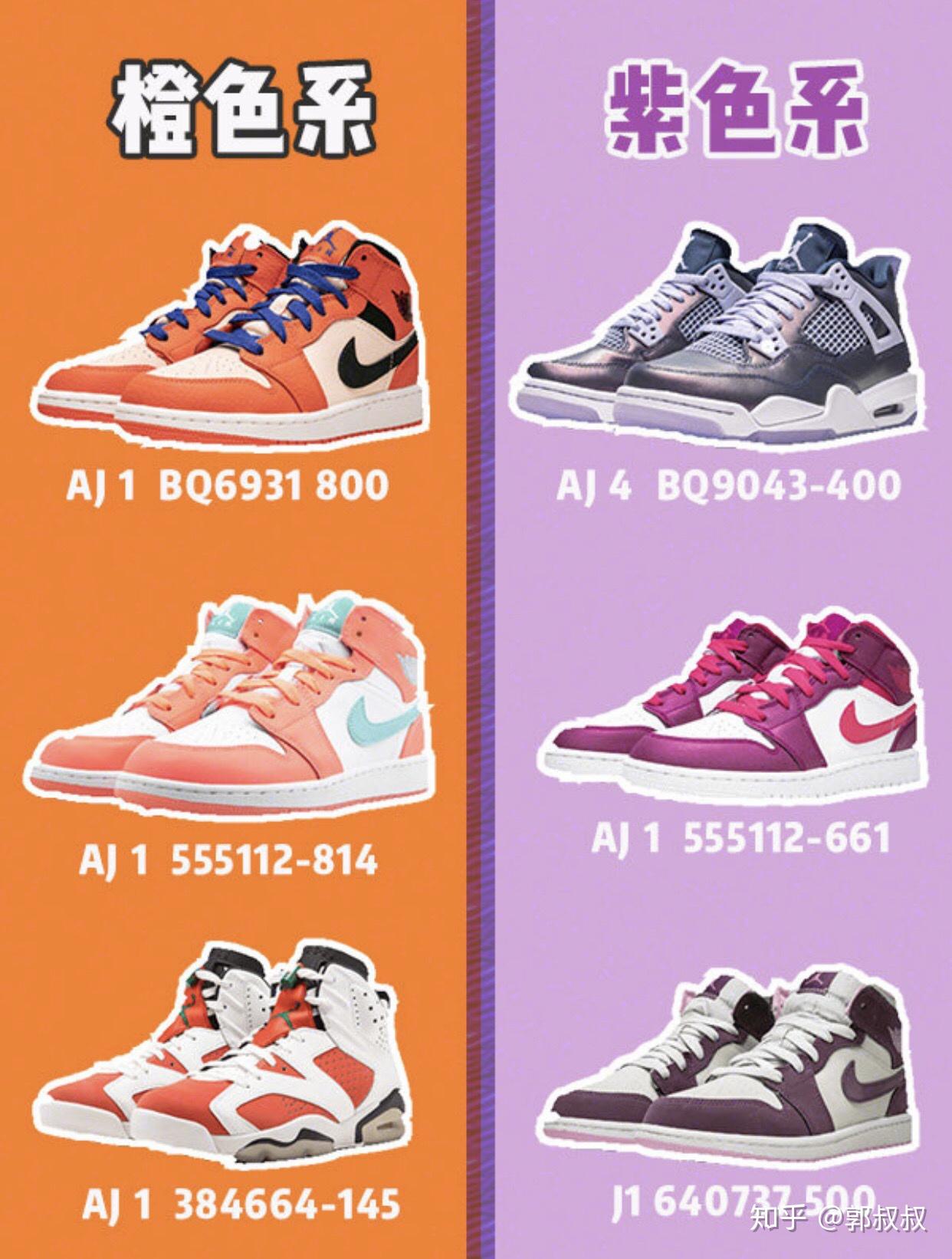 想要入手AJ的朋友看过来,帮你们整理出9个颜色系里好看的款式啦 1??红色系 2??粉色系 3??白色系 4??黑色系 5??橙色+紫色系 6??蓝色系 7??绿色+黄色系 这些都可以做情侣款 全都是颜值高的百搭款 有什么不懂的就在评论区里发问或者私信我