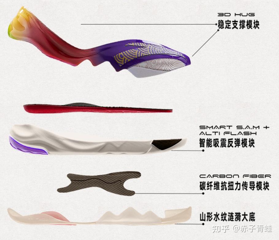 打篮球这件事占据了我的半个人生,穿过的篮球鞋可能有100多双了,刚开始打篮球时还是十几岁的年纪,直接穿着双星、回力、国产康威和不知名的旅游鞋往水泥地硬上,现在想想膝盖都一阵哆嗦,年轻不知膝妇敷啊。 后来渐渐又买了李宁、Nike、阿迪、锐步、AND1、匹克、安踏等各式各样的鞋款,科比、老北京、乔丹,加内特,麦迪,罗斯,KD,哈登等逐一买了个遍,zzui疯狂的时候一年会买好几十双鞋,被老婆戏称为蜈蚣脚。现在打球也没有那么疯狂了,只沉淀下了几双zzui适合自己的。 前些天有个朋友问我:想买一双适合的篮球鞋。外线养生打法,塑胶地,膝盖有伤,脚踝也比较脆弱,希望买一双包覆好、缓震好、耐磨的篮球鞋。我回答他后寻思着,不防把选购思路整理成一篇文章,让广大球友能快速找到自己的实战篮球鞋款,顺便涨知识,防被坑,遂创作此文。 全文约7000字, 阅读需要8分钟, 建议点赞后收藏慢慢食用。 更新几双2021年的实战好鞋, 虽然2021年才过去了3个月,但是已经涌现出不少实战属性极佳的篮球鞋了。 NIke Cosmic Unity Nike Zoom GT Cut KD14 韦德之道9 樱花粉 首先我们先粗略了解下篮球鞋的构造,熟悉一下球鞋名词对我们以后买鞋,看评测都有莫大的帮助。篮球鞋按结构分为鞋面和鞋底,没有找到好的篮球鞋图片,就以去年大热的sacai x Nike为例: 鞋面Upper:从前往后分别是鞋头、鞋胆、鞋带、鞋舌、后跟护片、后跟护套。 鞋底:从下到上为大底Outsole、中低Midsole(气垫)、内底,碳纤维支撑板,鞋垫。 其中zzui影响我们打篮球体验就是中低气垫技术,也就是缓震体验,比如大名鼎鼎的NIke zoom air、Nike React,阿迪达斯的Boost等; 其次是鞋面材料,主要决定球鞋的包裹感受和重量; 大底的材料和纹路决定是否防滑、耐磨,如果加宽前掌,会有一定的防侧翻能力; 后跟的材料和护片可以稳定后跟、避免崴脚。 一拿到篮球鞋,我首先就会看它的鞋面材料和中低科技,它们决定了一双篮球鞋品质好坏的80%,接下来展开讲讲。 1.鞋面材料 帆布:1917年,匡威正式推出了第一双篮球鞋, converse all star,采用帆布作为主要材料,在耐克阿迪流行之前,风靡整个50年代NBA,上古巨星张伯伦就穿它拿下了100分。 经典鞋款:AJ1 ,AJ12,科比ZK4,Answer 4,哈登1 编织鞋面:追求轻量化并坚固耐用的鞋面技术,用纱线编制成一整块鞋面,科技感十足。 经典鞋款:詹姆斯15,HD2017, AJ32 。 网层布面:由尼龙和聚酯所织成的网层布面,轻盈、透气,结实持久。 经典鞋款:AJ4,HD08 2.中底科技 如果把鞋子跟一辆车做类比,那么鞋面相当于车身,中底是悬挂系统,大底则是轮胎,所以中底是一双篮球鞋的灵魂。下面我按品牌系列来解读: Nike Phylon:起源于美国,早先所有运动鞋的中底部分均称为Phylon, 作为Nike曾经的专利技术,Phylon材料属于二次发泡中底,成品表面较白且有褶皱。在制作工程中将塑料粒子通过两次加热发泡后灌入模型加压冷却,在发泡过程中,可以通过对温度的设定来掌控材料的密度变化。 优点:轻便、弹性好,柔软度佳,硬度、密度、拉力、撕裂、延伸率佳。 缺点:不易降解不利于环保,高温时候会收缩易皱。 EVA:乙烯/乙酸乙烯酯共聚物,Ethylene Vinyl Acetate, EVA中底也很轻,但是缓震性能和弹性远远比不上PHYLON中底,但造价比PHYLON要低很多,因为PHYLON为二次泡发,EVA是一次发泡。 Phylite:PHYLITE是一种合成材料, 60%PHYLON+40%橡胶, 用在球鞋前掌,提高灵活性的同时, 足够耐磨不用再额外贴橡胶, 减轻鞋的重量。缺点是耐用性稍差。 Lunar: Lunar是一种EVA和丁腈橡胶(Nitril Rubber,NBR)混合物,它比普通Phylon轻30%。Lunar使重力均匀分散于双脚,达到超轻量及弹性缓震的效果,这不仅让运动鞋产生保护双脚的作用,还提升了稳定性和舒适感。 Lunar的耐久性非常差,所以它需要一个载体。如果以Phylite为载体则叫做Lunarlite;如果以Phylon作为载体的话,就叫作Lunarlon。 React: React和Lunarlon比较相似,脚感柔软、回弹出色,并且解决了Lunarlon存在的塌陷问题,更加持久耐用,相比Lunar进一步减轻了重量。 Air Sole: 70年代由NASA航空工程师弗兰克?鲁迪发明,后来被nike买下专利 。Air Sole由上下两个微层聚合物复合材料制成的半膜结合而成 内部充入氮气等惰性气体,气压一般为10psi。缺点是内置气体会产生流从而影响耐用性,一般两年内就会逐渐衰减到不可用,还容易发出咯吱声。现在主要用于Air force 1, AJF等潮流鞋款上。 Air Max: 1989年出现的可视化气垫air Max与Air Sole相比气压更大、气量更足,多为全掌或者后掌。它zzui大的特点是多气室缓震, 一个Air Max气垫至少包含两个不同气压的气室,可以同时兼顾减震性和稳定性。 Zoom Air: Zoom Air技术于1995年诞生, Zoom Air的结构其实就是一片扁平状的气垫再加上织物和尼龙纤维丝共同组成的缓震系统。将织物材料置于气垫的上下面,再使用热压的方式将许多尼龙纤维固定在上下壁的织物面之间,纤维丝起到连接上下壁的作用。与Air Max不同Zoom Air气垫内置于Phylon中底里, 并且厚度仅有4-8mm,是Air Max的一 半,这样就大大提升了稳定性。在同等体积下Zoom的充气量、反弹速率、能量消耗都比Max要好50%。 Adidas Bounce: bounce本质上就是传统缓震胶,也就是发泡的eva, 但是结构化的设计取代了传统的泡沫中底材质,从而为你的下一步移动提供更好的能量传递与推动。我有一双Pro Bounce穿着感受就是回弹很韧,不软绵拖沓,适合突破手和射手打法的朋友。 Boost: 是由德