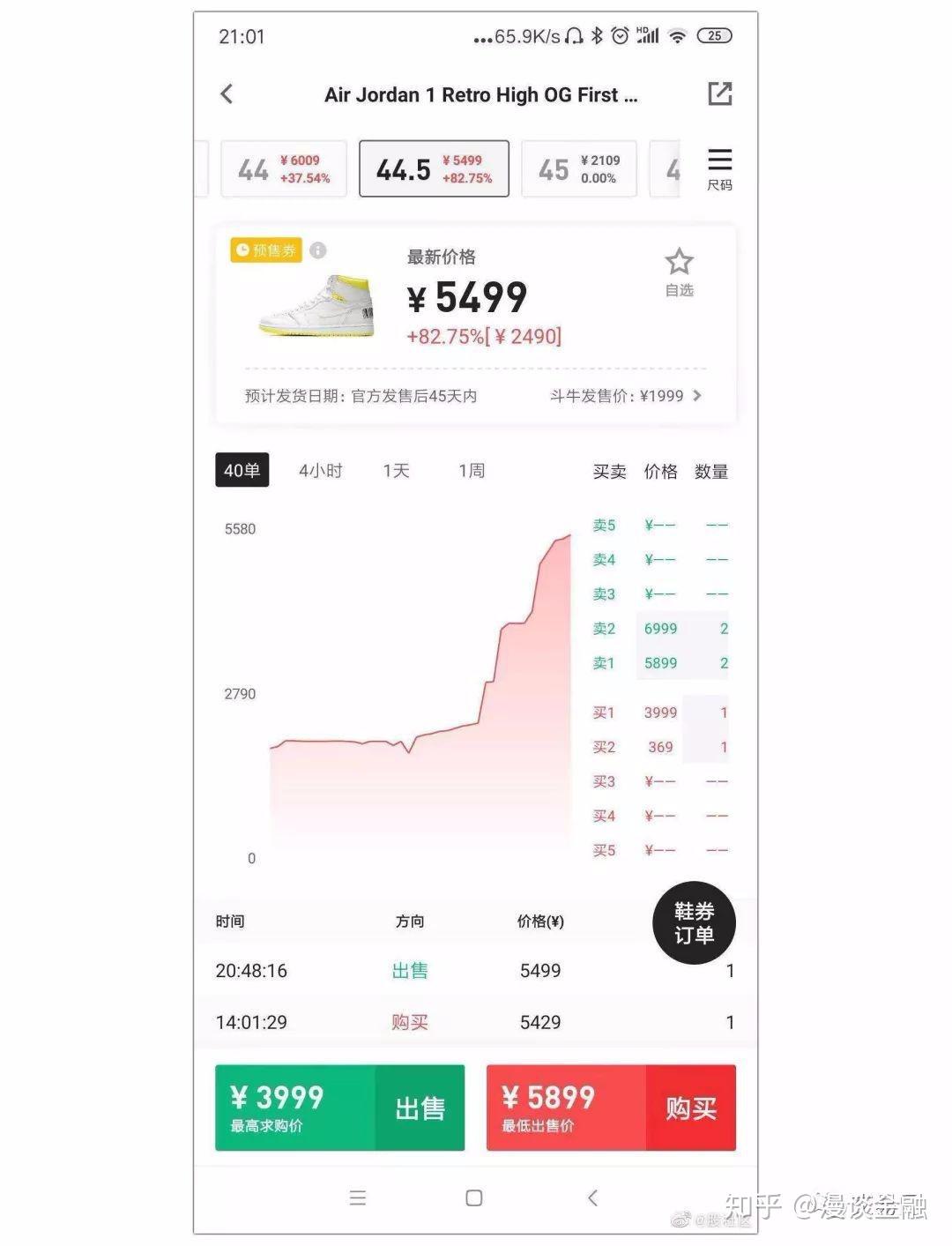 币圈大佬自嘲炒币不如炒鞋 03 专业精品进场,币圈引爆鞋市 1.电子化交易 目前毒和nice等多家鞋交所都已启动电子化交易,分时图,挂单买卖K线等专业金融炒作投机展示方式。 这又进一步加持和放大球鞋炒作氛围。