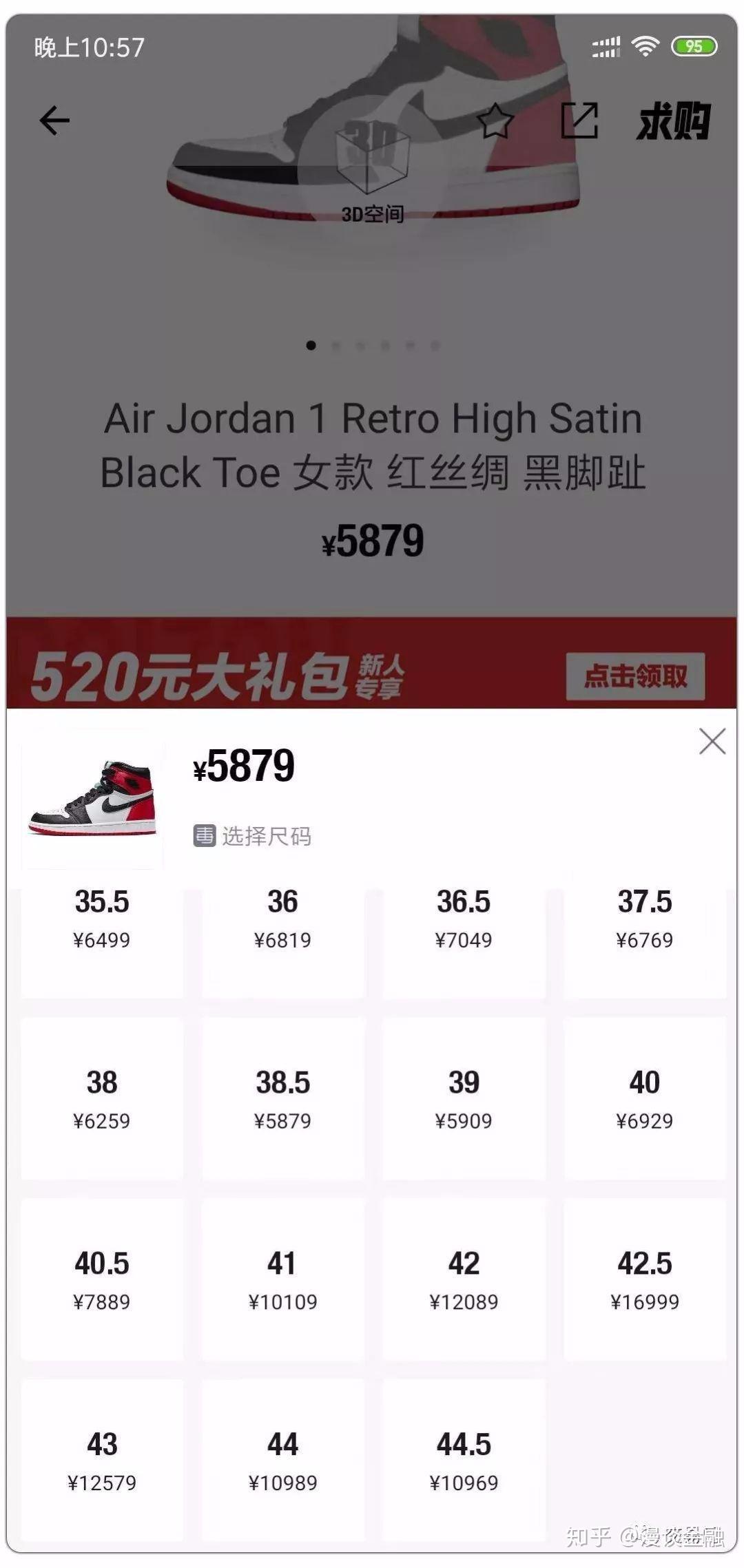 群里某位炒鞋的鞋库 供给少,下游需求膨胀,这样的市场自然少不了吸引资本精品的介入 (也就是前文我们讲的毒和nice) 。 为了深入了解相关鞋市,我们潜入某刚刚成立的炒鞋讨论小组中。 目前国内zzui大球鞋网上交易平台是毒APP,我们在APP内找到了一双群里这些热心朋友讲的刚发售几天就让他们赚了几倍的一款鞋——Air Jordan 1 Retro High Satin Black Toe 女款红丝绸黑脚趾。 这款球鞋在2019年8月17日发售,发售价格为1299元,仅仅4天过去,根据毒APP显示zzui新现货价格zzui低也要5800元,zzui高达到12000元,涨幅为446%-923%!