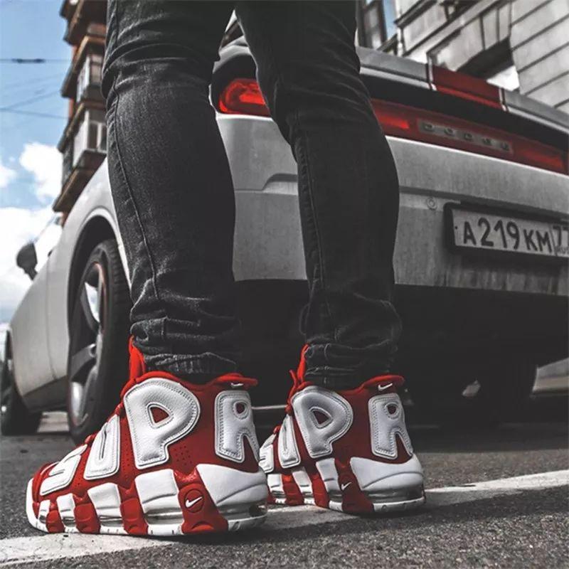 前有 2016 年皮蓬奥运大 Air 造势,让这双复古与霸气兼顾的经典球鞋重回街头,来到 2017 年 Supreme 再接再厉,直接将 Supreme 文字替换到鞋身之上。