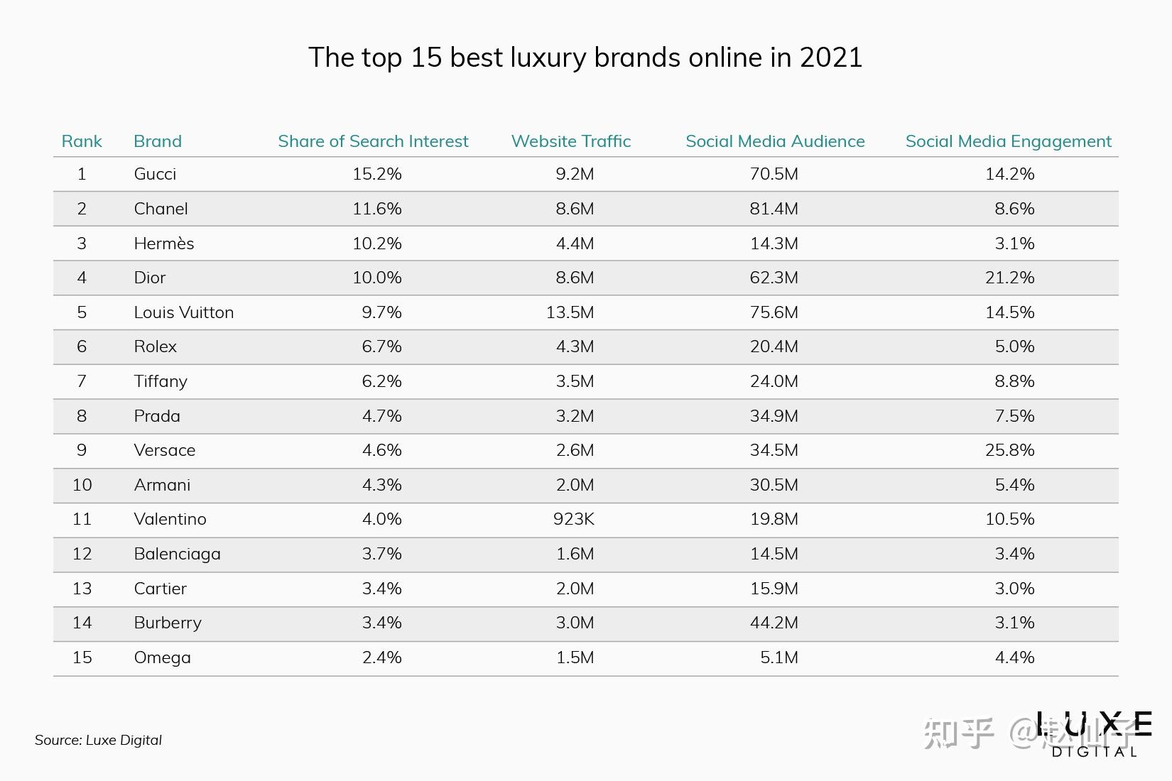 盘点2021 年网上zzui受欢迎的 15 个奢侈品牌以及数据分析(建议收藏)