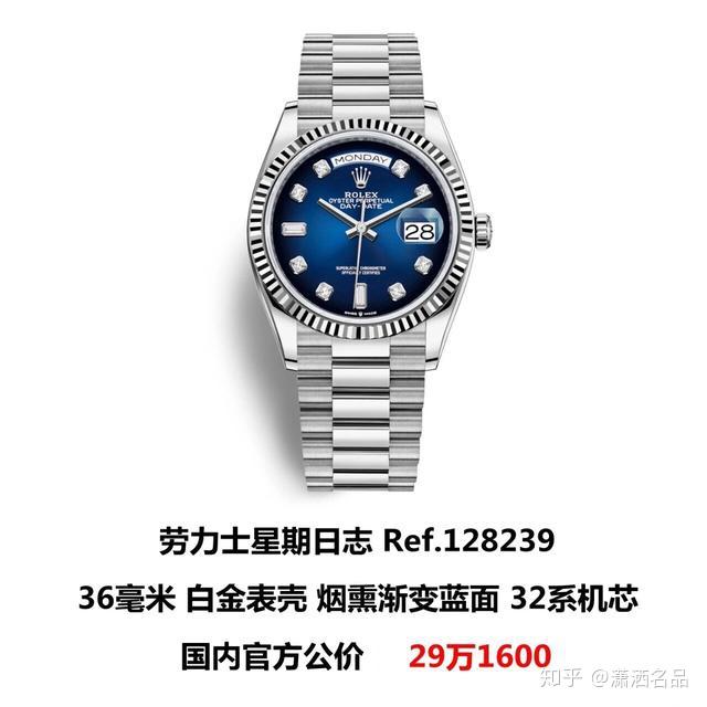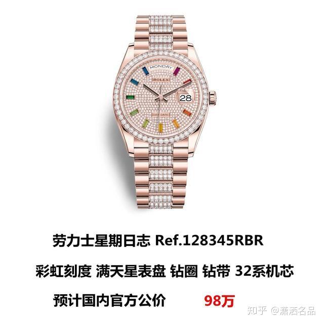 每一年钟表展劳力士都是一个被受关注的腕表品牌,除了款式以外相信大家zzui关注的就数价格了。其实劳力士在这个月开始就已经在官网同步了再售表款的价格了,不过可能不少表友还不知道,那么今天潇洒就挑了几款和大家分享一下国内的官方价格。 zzui新一代的游艇示吠力士今年主推的款式,这是一款采用了18k白金的腕表,这一定估计让很多人没想到,公价21万多,不过我感觉这款表基本和“炒货”沾不上边。 去年劳力士一款五珠带款红蓝圈热了一把,今年有推出五珠带款的蓝黑圈,公价7万多,估计又是一款炒货。 精品熏盘zzui近几年比较火,劳力士今年也玩了起来,搭配金色表壳,墨绿色精品熏渐变表盘非常契合品牌标识,个人以为会火一把。 去年推出一款彩虹迪公价75万,到了去年8月份就已经炒到了180万人民币左右,可以说这表劳力士尝到了甜头,所以今年又推出一款彩虹版的Day-Date,与彩虹迪不同的是这款表把渐变色宝石用在了刻度上,配合满天星表盘、钻圈、钻带配置相当高。
