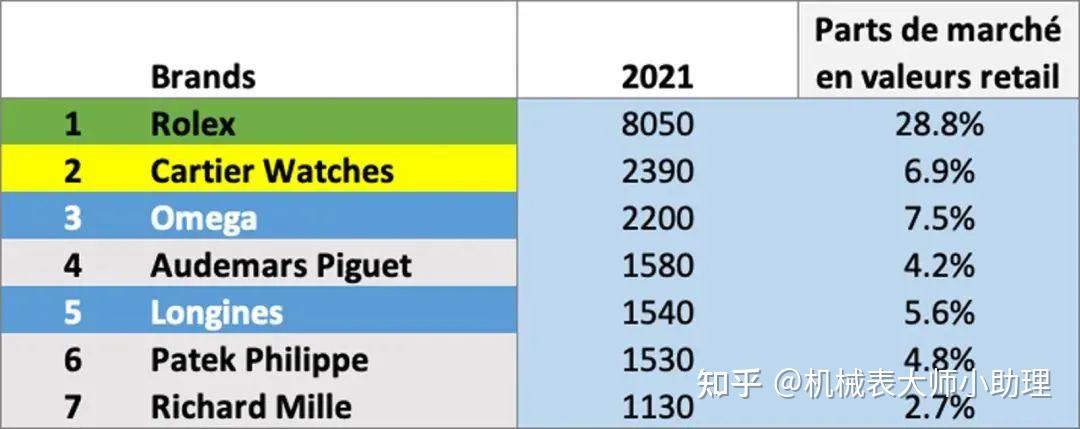 盘点机械表大师:2021年钟表销量排行榜单,劳力士又稳居第一?