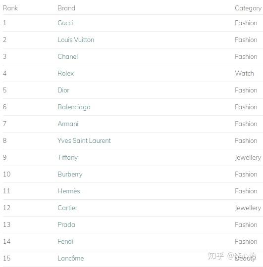 链接:https://luxe.digital/business/digital-luxury-ranking/most-popular-luxury-brands/