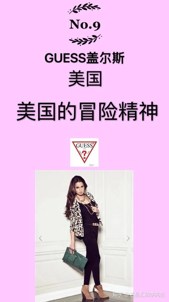 1??Donna Karan唐纳卡兰 唐纳卡兰(Donna Karan)、创立于1984年美国唐纳卡兰公司、Donna Karan与Calvin Klein和Ralph Lauren并称美国三大设计师 、创立了以她自己名字命名的高级女装品牌 、文化多元 灵感多元。 3??Chael香奈儿 香奈儿由Gabrielle Chanel于1913年在法国巴黎创立的品牌,至今已有百年历史 高雅 简洁 4??Versace范思哲 范思哲1978年诞生于意大利由意大利设计师Gianni Versace与兄弟Santo及妹妹Donatella创立、美杜莎、致命吸收力 5??Dior迪奥 迪奥1947年创立于法国巴黎、香水是一扇通往 全新世界的大门 6??CUCCl古驰 古驰1921年创立于意大利佛罗伦萨、豪华性感身份与财富之象征 7??Valentino瓦伦蒂诺 瓦伦蒂诺1960年创立于意大利、高级定制、高级成衣系列、时尚艺术史 8??Prada普拉达 普拉达1913年创立于意大利米兰、对知识的好奇和文化的兴趣是设计灵感来源 9??GUESS盖尔斯 盖尔斯1981年创立于美国、美国的冒险精神 1??0??Arman阿玛尼 阿玛尼创立于1975年意大利米兰、世界知名奢侈品牌、鹰 象征至高的品质和技艺。