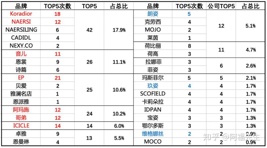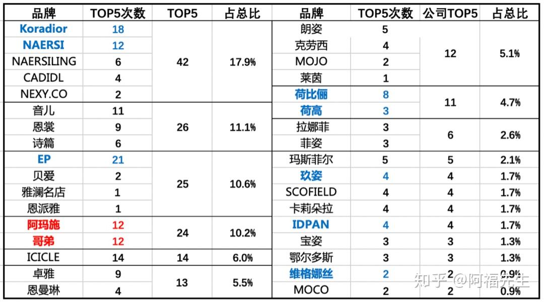 如果要论战斗力和造血能力,曾经的zzui强者非哥弟公司莫属,开篇的Top 5榜单上,大量品牌早期都有“哥弟血液”注入,如下图蓝字品牌: