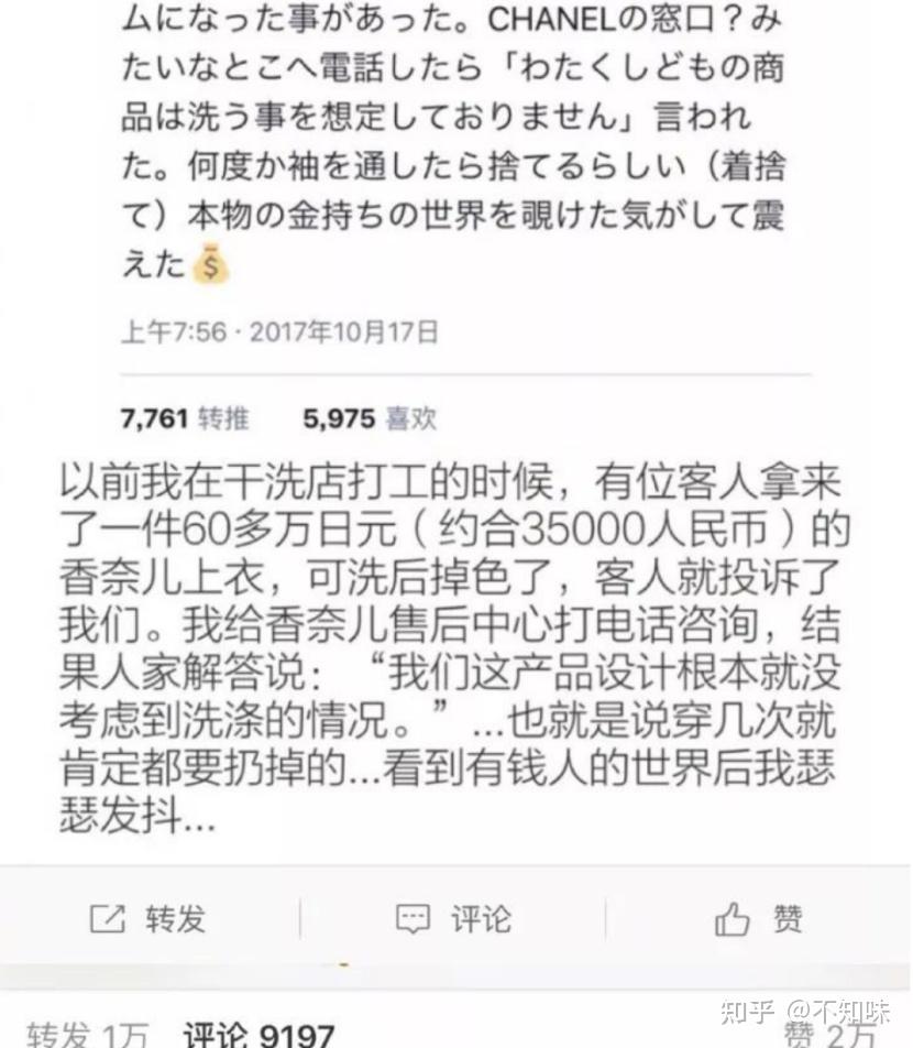 想起这样几个故事(真实性不做保证),感兴趣的可以自行搜一下这些故事的出处。 事件1 A花三万五千元买了一件 Chanel 花呢外套,发现洗后掉色,遂打电话向销售投诉。销售说:“不好意思,我们的产品从来不考虑洗涤。” 事件2 B参加朋友聚会,朋友的二代朋友穿了件Ralph Lauren的羊绒开衫,在灯光下衣服表层2mm的轮廓都围绕着干净均匀的绒毛,把姑娘看呆了。 zzui重要的是,一颗线球都没有!全身衣服就像从商店把全新的穿出来一样,而木访娘感觉自己像第一次进穿着美特斯邦威的楚雨荨。 直到后来攒钱自己也买了件Ralph Lauren的羊绒衫,她才发现——羊绒原来更容易起球!那二代朋友的衣服果然是新的!!! 事件3 C攒了三个月工资买了只Chanel羊皮包包,用了几天就出现磨损,去店里理论,销售答:“这款包包不适合日常使用。” 事件4 D买的Gucci包包手柄折断,发现里面居然有纸质填充物,又惊又愕去问店方,答曰:“本来就是这样的哦~” 上面这四件事都在百度上能搜到相关新闻,而作为一个奢侈品行业的从业者我并不会否认上面这几件事的真实性,只不过这个概率可能就相当于特斯拉的问题车。 或许我们需要了解奢侈品牌是给谁用的,zzui初奢侈品牌的消费者数量极少,Louis Vuitton、Gucci、Chanel、Fendi 这些家喻户晓的名字几十年前鲜为人知,只有‘用得起’的消费者才知道。 为什么要给“用得起”打双引号?因为“买得起”不等于“用得起”。 1970 年代末开始的奢侈品牌民主化潮流,通过大规模资本注入和全球化市场营销,把奢侈品牌主体顾客群重新定位为中产阶级,让普通人能够偶尔”奢侈一把“ 虽然顾客群扩大了,但奢侈品牌的思路没变,品质没变,价位也没变。 奢侈品牌并不会心疼那些吃半年方便面攒钱买包的小女生,为她们把包包做得用不旧磨不烂;也不会考虑到多数人衣柜里没几只大牌包包,为她们把包包设计得面面俱到和适用于所有场合。 奢侈品牌当然想赚中产阶级的钱,但他们的服务对象依然是那些“用得起”的人。” 这话听起来虽然不太“舒服”,但也许正是事实。 “用得起”是什么概念? 如果你买一只三万元的包包就像普通人买三百元的包包那样轻松,你就属于‘用得起’的消费者。 这样的消费者自然会毫不在意地把包包放在地上拖来拽去,自然不会纠结于边角磨损和金属氧化,也自然会把帆布包当帆布包用,把尼龙包当尼龙包用,并享受这些材质带来的轻松自在。 我大概总结了下大家对奢侈品牌手袋的期待和抱怨,总结下来有以下几条: 1、期待皮革完美无缺 2、期待皮革不磨损不掉色 3、期待金属件不磨损不掉色 4、期待非皮革材质拥有与皮革材质一样的奢华感 5、对因审美和实用不可兼顾而做出的设计让步表示失望,比如自重大、容量小、没有拉链…… 很遗憾,这些期待大多数是不现实的 第一,天然皮革不是完美无缺的。 用来制作手袋的牛皮和羊皮像人的皮肤一样,纹理不是完全均匀的,比如背部的纹理会紧致一些,腹部的纹理会松弛一些,所以在包包的正面和反面看到不同的皮革纹理十分正常。 同样,动物皮革也和人的皮肤一样不是完美无缺的,蚊虫叮咬造成的小疤痕在所难免。 有些品质奢侈品牌,比如 Hermès,会精选品质完美和纹理整齐的牛皮,制作出基本没有不规则纹理的包包。 而它选用皮革的超高标准导致废凭肥很高,因此包包的制作成本和价格也很高。 为了满足消费者对完美皮革的追求,很多品牌采用压纹的方法,在皮革上压制出均匀的荔枝纹和鱼子酱纹,很受消费者欢迎。 Prada 于1970 年代末开发研制出一种十字纹牛皮,英文叫作“saf?ano”,虽然完全不具备牛皮的自然纹理,但是整齐漂亮,防水防刮,因此十分讨喜,现已被众多品牌广泛采用。 第二,皮革不磨损和不掉色是不可能的。 新包包拎出去用两天,难免会有使用过的痕迹,也就是微小的划痕和破损。连续用个把月后,包包出现比较明显的磨损痕迹是十分正常的。 越娇嫩的皮革越不耐磨,比如 Chanel 著名的小羊皮,像婴儿的皮肤般吹弹可破。比较耐磨的皮革往往非常厚实,比如 Hermès 的 Togo 牛皮以抗划痕著称,但自重很大。也可见耐磨和轻便往往不能兼得。 如果磨损比较严重,消费者可以把包包拿到护理店做“补色”,也就是在破损处精品一层和包包同色的、质感有点像油漆的涂料。“补色” 后,包包的磨损就被遮挡住了,但破损处的纹理和质感则无法恢复。 减少皮革磨损的唯一办法就是少用。不要长时间连续用同一只包包,经常换包包是个好办法。如果每周换包,你会发现包包似乎永远用不旧。 第三,金属件不磨损和不掉色是不可能的。 手袋的金属件一般由合金和金属电镀层构成,高品质的金属件经过双层电镀,看起来饱满而均匀;低品质的金属件只经过单层电镀,看起来比较单薄。 用过一段时间后,在经常摩擦的部位,比如底钉、搭扣、拉链头等处,电镀层就会变薄, 出现磨损和掉色现象。 常见的金属都会氧化甚至生锈,哪怕是我们认为耐磨的重金属也不会永远闪闪发亮,比如金银氧化会色泽黯淡,铜生锈会变成绿色。 为解决磨损的问题,很多设计师聪明地使用做旧感金属件,比如古董银和古董铜,因为原本便是旧旧的质感,所以额外的磨损和掉色完全显露不出。 我个人很喜欢做旧金属件,使用起来毫无压力,其怀旧风格也自有魅力。 第四,非皮革材质不可能拥有与皮革材质相同的奢华感