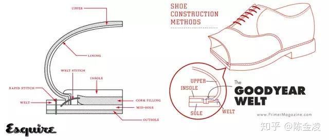 “当鞋子合适的时候,脚被忘却了”,一句话虽然简单却一语道出了“鞋子哲学”的精髓——唯有鞋子与脚达成舒适的默契时,脚才得到了真正的自由,这也正是鞋子的美学顶点。 舒适是鞋的灵魂,世界上有这么一群人对脚的研究和关注可谓无微不至,然后再为其量身定做出一双绝世美鞋,那这双带着尊贵的身份标签和独特气质的定制鞋,本身就是身份和品味的象征。 人们常说“ if you do not have a nice pair of shoes, you should invest one, since it makes the outfit ” ,一双好鞋点亮整身衣着。 如果你想到了 Gucci 、 Louis Vuitton 、 Prada ,请先等一等,今天我们暂时离开时尚,只谈传统和风格。 那么, 怎样就算是一双好皮鞋了呢?先从皮料说起。 Full Grain 牛皮的zzui上层,也就是头层牛皮, zzui好zzui稀有的牛皮,这里的稀有不是指小牛稀有,而是一张 Full Grain 通常代表的是没有损伤的自然头层牛皮,粒面纹路自然且极少能均匀,所以 Full Grain 价值通常很高。 Smooth leather 除此之外我们经常会见到平滑皮 Smooth leather ,这是 Full Grain 头层牛皮的一种,但是因为某些动物表皮纹路不明显或者鞋匠为了达到特殊效果而制成了平滑皮。 Top Grain 而我们一般被告知的头层牛皮是什么呢?通常指的是 Corrected Grain ,是 Top Grain 的一种说法,在真正的头层牛皮 Full Grain 略下方的位置,因为有轻微瑕疵和损伤不能被选作 Full Grain 。 所以在加工时会经常被修补和抛光掩盖瑕疵,经过损伤修补的头层牛皮,同样有着柔软,甚至更耐久的特性,和 Full Grain 外表相似,但是价值低于 Full Grain 。著名的皮鞋品牌 Church’s zzui擅长使用 Top Grain ( Corrected Grain )修补和抛光达到 Full Grain 的质感。 Corium 这是我们通常所讲的真皮,位于 Full Grain 和 Top Grain 的下方,加工之前纹理非常粗,耐久度略差而好的鞋匠通常会把这个皮层做成 Suede 。制鞋用的 Suede 以前取自麂,现在都是牛皮制作的。对于穿着者来说,易脏,易吸水,不好打理,但是非常年轻有质感并且非常柔软舒适,多次穿着折痕不明显。 马皮 Cordovan 曾经是山羊皮,近些年通常指马皮,取自马臀部下层的肌肉平滑层,也被称为 Shell ,所以有了 Shell Cordovan 这个说法。因为工序的困难,这是一类价值非常高的皮鞋,价格通常是同级别小牛皮的 1.5 到 2 倍,被zzui好的制鞋品牌采用和加工,成品大多棕红色并且高光,zzui具代表性的品牌就是美国的 Alden 和西班牙的 Carmina 。 这里我们不介绍“稀有皮”,因为没有买卖就没有杀害。 Goodyear zzui古老zzui传统也是zzui耗费人力的制底方法,这种制底通常分为三步,第一步是准备鞋的内底,将鞋内底的一部分制成垂直的“肋”来便于缝纫。 第二步是将鞋的裝边( Welt )和内底( Insole ) 在鞋楦保持定型下缝制在一起,裝边通常是由一条皮段制成。接下来鞋的内底和外低会留出一个夹层,这个夹层通常由一些碎屑或者谷物来填充。 第三部则是将外底( Outsole )与鞋的裝边( Welt ),内底( Insole ),以及鞋垫缝制在一起。这种制底方法让鞋保持了zzui好的耐久度,但同样也增加了鞋的制作成本。这种鞋底zzui被传统鞋匠追捧。 Blake Blake 则是直接将鞋的内底和外底直接缝合甚至是粘连,这种鞋底通常层数较少并且在出现磨损时容易更换。因为这种制底方式操作简单,成本相对较低,便于生产,被大多数非传统和时尚制鞋品牌使用,zzui具代表的则是 Tod’s 和 Berluti 。 随着技术的发展, fiddled sole 依然代表着品质的皮鞋但也开始被广泛的使用。在英国的 John Lobb , George Cleverley 的高仿定制系列 Anthony Cleverley , Foster & Son 定制和 Edward Green 定制和 Gaziano&Girling 的成鞋中都可以找得到琴弦鞋底。 除了英国鞋匠还有很多外国匠人也非常好的诠释了琴弦鞋底比如日本的 Yohei Fukuda , Ann Bespokemaker , itarusassoo ,意大利的 Roberto Ugolini 等等。 Oak Bark Sole 如果你感叹买不到 Beveled sole 皮鞋,至少我们可以很容易找到 Oak Bark 鞋底。 Oak Bark 鞋底是一种鞋外底产品,这种鞋底有比普通皮底更耐抗更轻便的优势。 主要有两个厂家生产 Oak Bark Sole ,一个是德国的 Joh Rendenbach Jr Tannery ,简称 JR ,你可以在他们的鞋底上发现大大的 JR 字母刻印。另一个则是英国的 J&FJ Baker&Co ,一个低调的厂商但也是被广泛使用在品质皮鞋上的厂商,你通常可以在 Saint Crispin’s 成鞋, Crockett&Jones 手工系列, Vass 和 Carmina 的马臀皮鞋上找到 Oak Bark 鞋底。 橡胶底 Crepe鞋底 走路更加舒适更柔软,没有触地声音,装备于各类休闲皮鞋,还有沙漠靴,但是因为是曾经的行军鞋底, 质感较糙,高仿鞋匠除 Alden 以外使用不多。 Dainite Studded鞋底 这是一项英国专利也是品牌,也属于橡胶鞋底的一种,但是你会在鞋底发现很多钉或者脊。这种橡胶底比一般橡胶底更厚更具有保护性,经常出现在德比鞋上,传统皮鞋品牌经常采用。 《王牌特工》片头要说出暗号“ Oxford no Brogues ”才能呼唤王牌特工出场解决问题,到中期柯林大叔改造小鲜肉的第一步就是让他试穿牛津鞋,并告知其轻便易走且暗藏毒刃能精品无形;延续到影片zzui后小鲜肉用牛津鞋里的毒刃戳死开挂的大魔王女助理,都在说明牛津鞋这玩意儿有多么牛掰。 Derby德比鞋 是 Oxford 的变种,区别就是 open lacing —— 鞋带襟面立体,露出鞋舌,这种皮鞋更加百搭和休闲,可以搭配牛仔裤。 Brogue布洛克鞋 更加具有装饰意义更多体现细节的皮鞋, 大多数没有德比鞋和牛津鞋正式,但依然可以商务使用。布洛克的雕花
