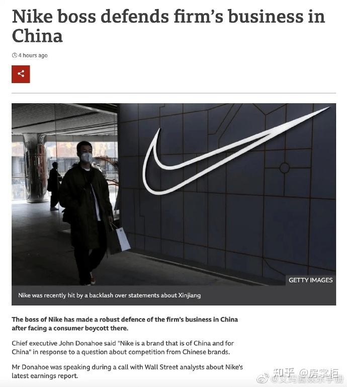 耐克市值一夜精品增2000亿,CEO大赞中国市场:耐克“属于”中国!你们还要点脸吗?有羞耻之心吗?忘了抵制新疆棉了?今年3月低点至今,安踏体育股价涨了53%,李宁涨了102%,特步精品更是精品涨287%。 之前耐克、阿迪达斯国外品牌抵制新疆棉花的行为引发了网友们的极大愤慨,大家身体力行,从明星到普通网友纷纷发声支持国货,坚决抵制辱华品牌。大家的努力没有白费,近日耐克的CEO在采访时就说出“耐克是属于中国,为中国而生的品牌”,根本不敢放弃中国市场,态度上服软。 中国市场以往是耐克增长zzui快的市场之一,但是因为新疆棉花事件,中国消费者自觉对耐克进行抵制,对公司造成了影响,而且李宁、安踏等国货品牌迅速崛起,成为耐克有力的竞争对手,面对严峻的市场形势,CEO才有此一说,明显是对中国消费者的“真金白银”低了头。 6月25日,耐克集团(NYSE:NKE)发布2021财年第四财季和全年业绩报告。截至5月31日,耐克2021财年收入同比增长19%至445.4亿美元,净利润增长126%至57.27亿美元。 其中,耐克2021财年在大中华区收入为82.9亿美元(约535亿人民币),较上一财年66.79亿美元同比增长24%,除去汇率影响,增长19%。 耐克集团首席执行官John Donahoe说:“Nike是一个属于中国、为中国而生的品牌”。 25日收盘,耐克股价大涨15.53%,报154.35美元,领涨道指,同时创下历史新高。zzui新市值2435亿美元,较前一个交易日增长约320亿美元(约合人民币2080亿元)。 大中华区连续7年双位增长 25日,耐克集团发布2021财年第四财季和全年业绩报告。财报显示, 至此,耐克全年收入同比增长19%至445.38亿美元,净利润增长126%至57.27亿美元。上一个财年耐克集团收入为374.03亿美元,净利润为25.39亿美元。 财报显示,在耐克zzui大的市场北美市场,2021财年收入同比增长19%,达到创纪录的171.79亿美元。在大中华区,2021财年收入为82.9亿美元(约535亿人民币),较上一财年66.79亿美元同比增长24%,除去汇率影响,增长19%。耐克集团在大中华区的业绩实现了连续7年双位数增长。 而单独看2021年第四财季,耐克大中华区取得了19.33亿美元的收入,较上一财年同期增长了17%,同时也高过2019财年同期的17亿美元收入。 根据天下网商发布的618战报,6月1日-6月20日Nike位列天猫运动户外品牌销售金额排行榜第1名。亿邦动力发布的618终极榜单中,Nike品牌仅次于安踏旗下的Fila品牌,位于运动/休闲服饰榜单的第2名。 来源:天下网商 据金融时报报道,在电话会议中,有分析师提及关于耐克在中国面临其他品牌竞争的问题,集团首席执行官John Donahoe这样回应:“Nike是一个属于中国、为中国而生的品牌(Nike is a brand that is of China and for China)”。 多家投行上调目标价,zzui高看至192美元 耐克财报公布后,多家投行上调了对该公司的目标价。 瑞银将耐克目标价从170美元上调至185美元。 Baird分析师Jonathan Komp将耐克目标价由150美元上调至192美元,维持“跑赢大市”评级。该分析师指出,耐克第四季度业绩几乎翻了一番,这反映出了该公司在北美、欧洲、中东和非洲地区的强劲势头,以及在大中华地区优于预期的表现。该分析师目前认为,耐克股价未来三年的上涨潜力或将达到250美元以上。 RBC Capital分析师Beth Reed将耐克目标价由165美元上调至183美元,维持“跑赢大市”评级。该分析师表示,耐克公布了“强劲”的第四季度业绩,并在数字市场、女装产品、服装业务、乔丹品牌以及精品销售的推动下,将其2025财年的营收增长预期从高单位数上调至低双位数。 值得注意的是,就在6月25日晚间,李宁发布业绩报表,预期今年上半年净利不少于18亿元人民币,去年同期为6.83亿元人民币;此前安踏预计,在不考虑Amer合营公司影响下,公司上半年净利润将实现超65%的增长,约23.8亿元人民币。 今年3月低点至今,安踏体育股价涨了53%,李宁涨了102%,特步精品更是精品涨287%。