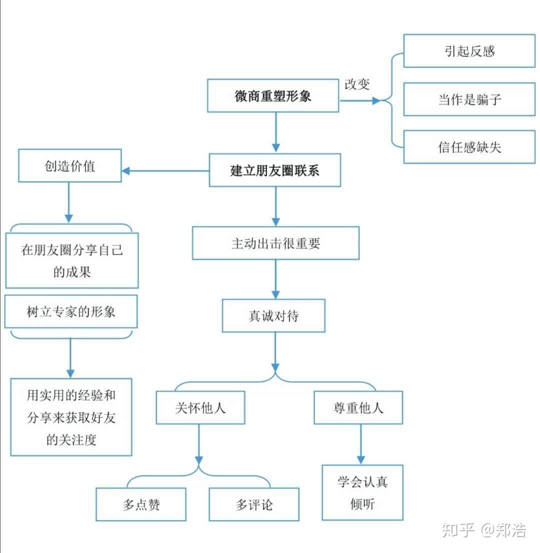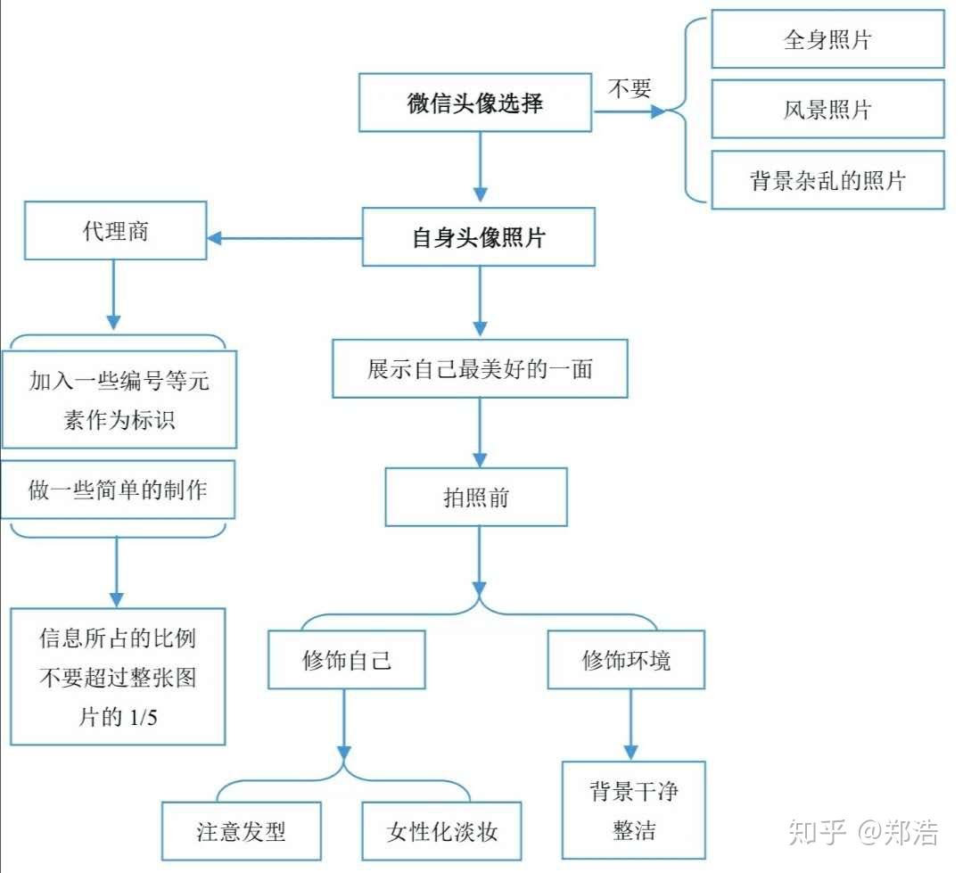 从今天开始郑浩准备每天更新两篇微商行干货秘诀。 希望能给广大的微商行业从业者带来帮助。 我们今天要说的是:如何做好账号形象的优化从而提升用户好感度 一、微信名字 在朋友圈内有一个得体又有特色的的名字是一件很重要的事情! 对普通人来说可能这个名字不怎么重要的,只要自己喜欢就好。但是对于我们为商从业者来说,就需要仔细的考量,和打磨。因为行业的不同,微商的目标不同,我们需要在名字上体现自己的独有的特色。 主要需要牢记两点:容易被记住,容易被传播。 名字的主要类型如下: 以上就是微信起名字的大概思路。同事需要结合自己产品的特点: 我们拿一个做精品产品的学员为例,学员性别为女,因为使用了自己代理的精品产品之后发生了改变,想在朋友圈内推广进行销售。 我们可以考虑XX姐实测月瘦10斤。名称简单明了的阐述了自己是谁,用了自己的真实姓名,实测突出了产品是经过本人真实考量的,容易提升用户的信任程度,月瘦10斤突出了产品的特性以及功效。那么这样一个名字基本就可以算是合格的微商名字了。 二、微信头像 除了名字以外,头像位应该是zzui惹人注意的了。微信头像是一个能直观的表现出用户心理活动的一个点,那么在不同的心理活动环境下,一个别出心裁的头像是对用户有着足够吸引能力的!(同时我们也可以根据用户的头像去分析用户心理,这点以后我们在详细的讲解。) 大部分的微商为了突出自己的真实性,会使用自己的真实照片作为头像,从而来增加用户的好友的信任感,因为微商本身的核心就是人与人之间的信任,在没有平台的约束下,只有相信你的人才会为你的产凭夫单!所以,用户的信任是微商从业者要考虑的重要因素之一! 但是也要注意以下几点: 三、个性签名 个性签名是微商朋友圈主页头像下方医德一个重要标签,位置很重要!内容也很重要! 朋友圈的个性签名在添加好友的时候往往能起到不错的帮助,会给客户留下一个直观的第一印象!所以个性签名同样是我们不能忽视的一个重要成分! 文按的优质程度在很大部分上决定了你的粉丝对你的第一印象的留存程度。只有那些优质的文字才会吸引别人的注意,激发粉丝和你继续沟通的兴趣。 切记!不要再个性签名中直接发出产品的广告或者是产品链接,而是要在个性签名中体现产品的优势和正能量! 四、朋友圈封面 朋友圈封面是可以和微信名字、头像、个性签名在同一个界面进行展示的。但是优势一个不同形式的体现场所。 其实朋友圈的封面就是一个很好地广告展示区域。 比如做服装的可以拍一下自己的实体店铺,将朋友圈的封面设置成店铺信息的展示。 品牌推广的可以设置成品牌的LOGO等。 五、形象的搭建 比如我们虽然说是微商的从业者,但是我们同样不喜欢看朋友圈内漫天的精品屏信息广告! 所以我们要换位思考,思考一下在用户的角度上怎么才不会让客户反感! 所以我们在发布朋友圈的推广信息是主要要侧重以下两点特性: ①,实用性 ②,针对性 因此通过观察思维导图我们可以分析出,发图文广告的时候,一定要层层筛选,找到对用户有价值,有用途的信息去进行发布。(这里要提到一下对好友要进行有效的类型分析,大概了解客户的喜好,去进行有针对性的营销与推广,切记!少发心灵鸡汤!用户所需要的是结果!) 六、打造个人IP 为什么会出现“微商”这个词呢?因为在微信上进行推广销售会首先普及到自己身边的朋友圈,列表里的好友基本都是熟人,起步相对来说比较轻松。 对于个人IP的打造能够在早期的时候很快的见到成效。 并且产品的质量过硬很容易被“人传人”这种现象提高个人IP的知名度。 所以要求微商要对自己的产品有一个清晰地定位 下面列出一些打造个人IP时的小技巧: 通过思维导图去一步一步的将自己的优势去扩大,同时扬长避短,努力的提升自己的不足之处。 小结: 成功的zzui重要因素,往往都在细节上面,点点滴滴的细节经过积累产生的质变是不可想象的! 在这里送给大家一句话共勉: 勿以善小而不为,勿以恶小而为之。 我是郑浩,有着业6年的互联网营销推广引流经验。 如果大家在我的专业范围内有什么问题可以随时滴滴我,我都会一一解答。 原创手码不易,看到的朋友们点个赞吧。谢谢。