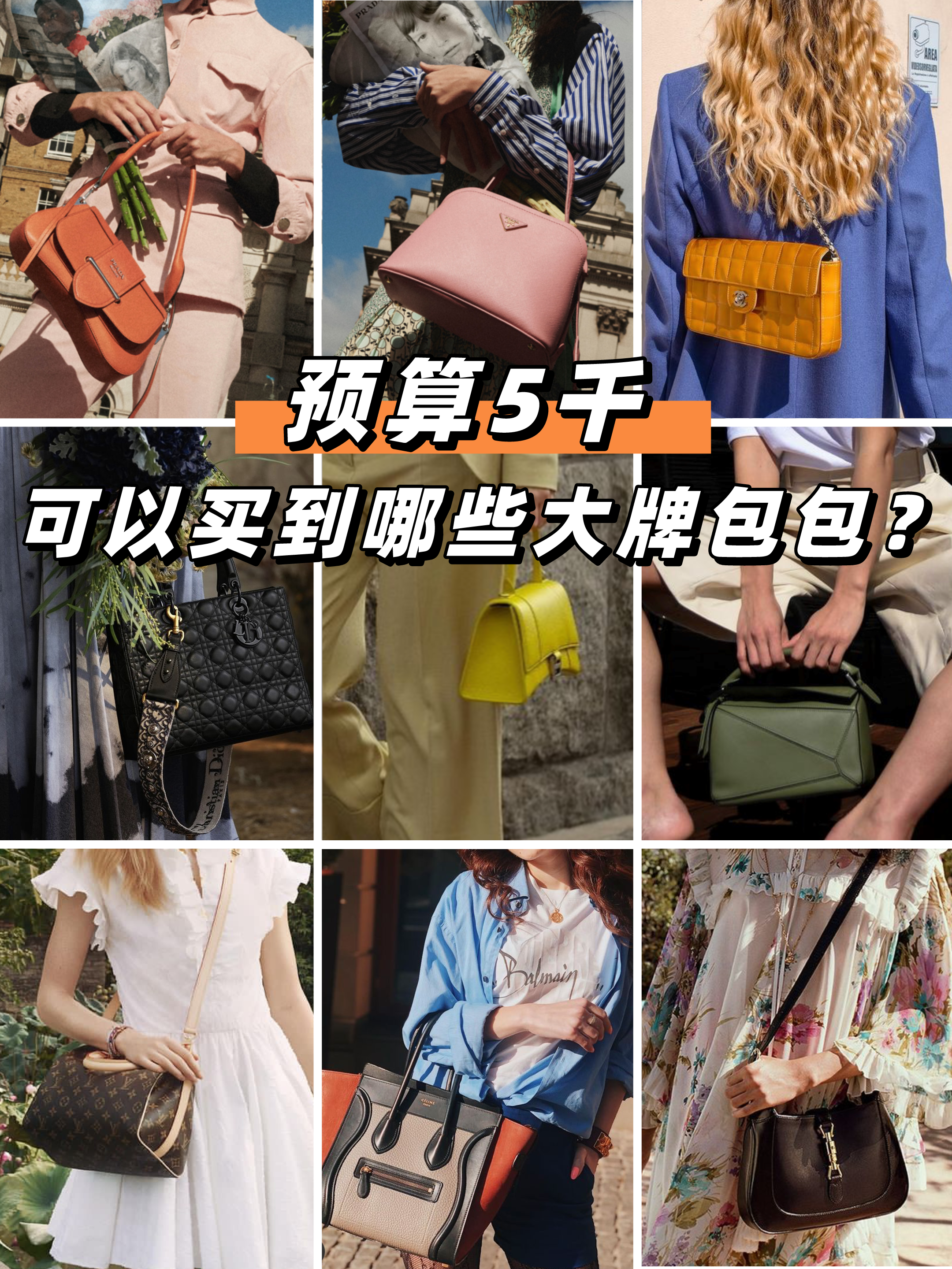 好久没出的预算重新回归啦~对于奢侈品大牌包包来说,很多姐妹觉得几千块钱是万万不能买的,望而却步。但是今天小奢给大家发福利啦!五千元究竟能买哪些大牌包包呢? CELINE 对于到来的夏天,一款链条手包在合适不过啦~马鞍包也可以精品到手呀! LOEWE 再也不用羡慕别人悲伤可爱的小象包啦,你也可以拥有~ DIOR 中古包包难道不香吗?遛狗包、半月包、马鞍包、波士顿通通任你选择。Lady dior也可以考虑入手哟~ GUCCI JACKIE 1961也能收入囊中啦~但示防计又是比手速的时候啦! LV 要属性价比zzui高的就是Neverfull,别问为什么,问就是耐用能装!经典的Speedy、水桶包、ALMA都能全部收入囊中! CHANEL 对于香奶奶来说,5000的价位我们就果断全部入手中古包啦~无论是容量大的GST、还是精致小巧的冰格都可以闭眼拿下~ PRADA Prada整体包包的折价还是比较多的,所以大部分包包五千元都是可以拿下的~ BALENCIAGA 迷你版的沙漏包是随便挑选啦!夏天背上一个迷你沙漏,拍啥啥好看! 有没有你的心动款呢~动起来吧! 大牌奢侈品包包|预算五千|新款包包|大牌包包|LV|时尚|平价代替