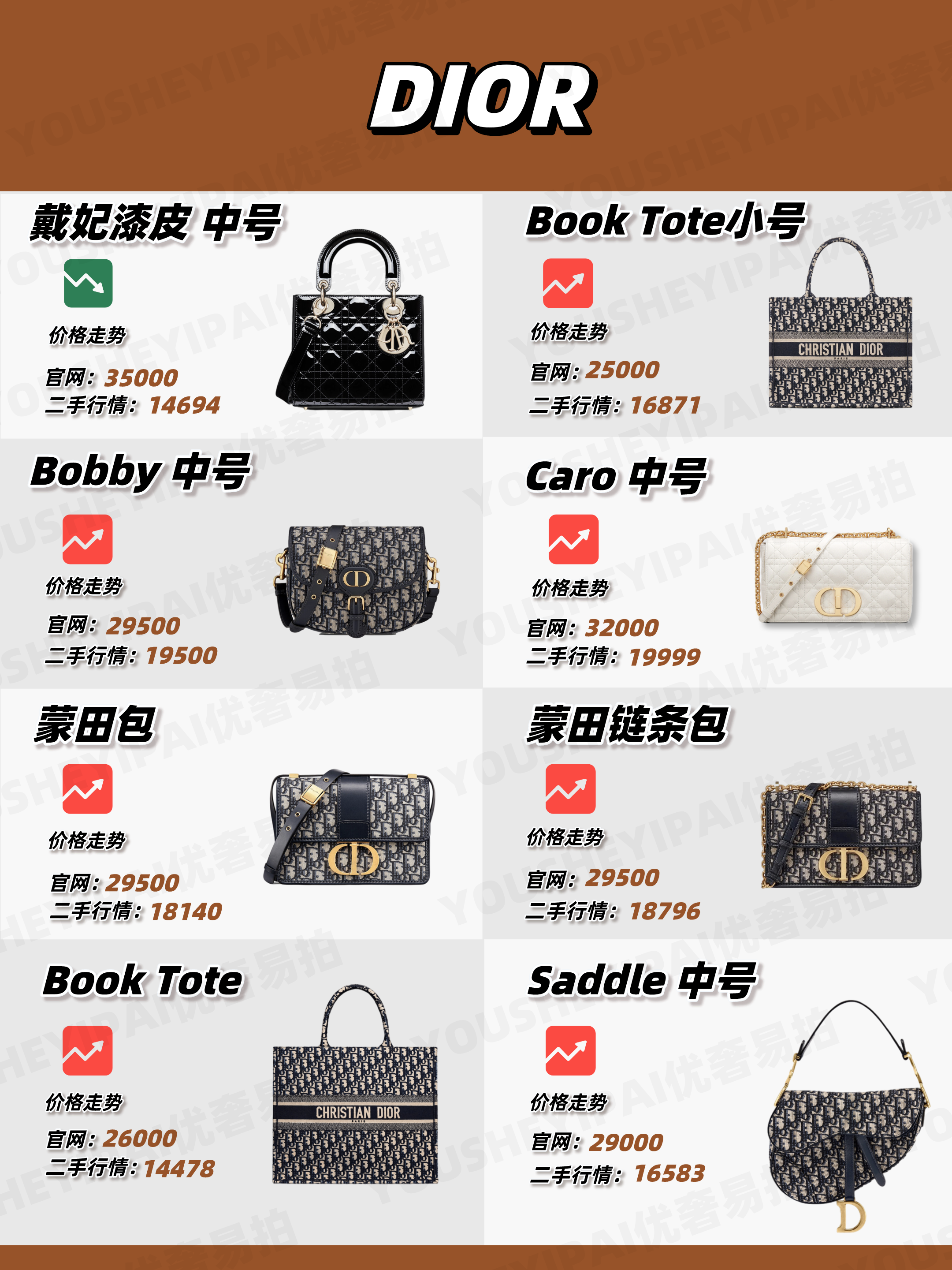 小奢为大家整理各大牌热门包包zzui新行情,一起来看看有没有你中意的包包吧~ LV的邮差包 CHANEL的方胖子小金球 DIOR的蒙田包 GUCCI的1955邮差包 CELINE的全皮凯旋门 以上几款都是各品牌在二级市场中行情走势zzui好的包包,是现阶段保值性zzui好的~ 而大家印象中的热门款,像LV的Neverfull和CHANEL 2.55和CF的中号在二级市场中的行情走势是一个向下的趋势。 每次在给大家整理zzui新行情的时候都会发现,随着季节的变换和包包本身价格的涨幅,都是会影响包包在二级市场中行情的走势 所以趁着心仪的包包便宜的时候,就抓紧时间入了吧~ 二手奢侈品|奢侈品包包|大牌包包|CHANEL包包|托特包|CF|时尚搭配|马鞍包|凯旋门|包包行情
