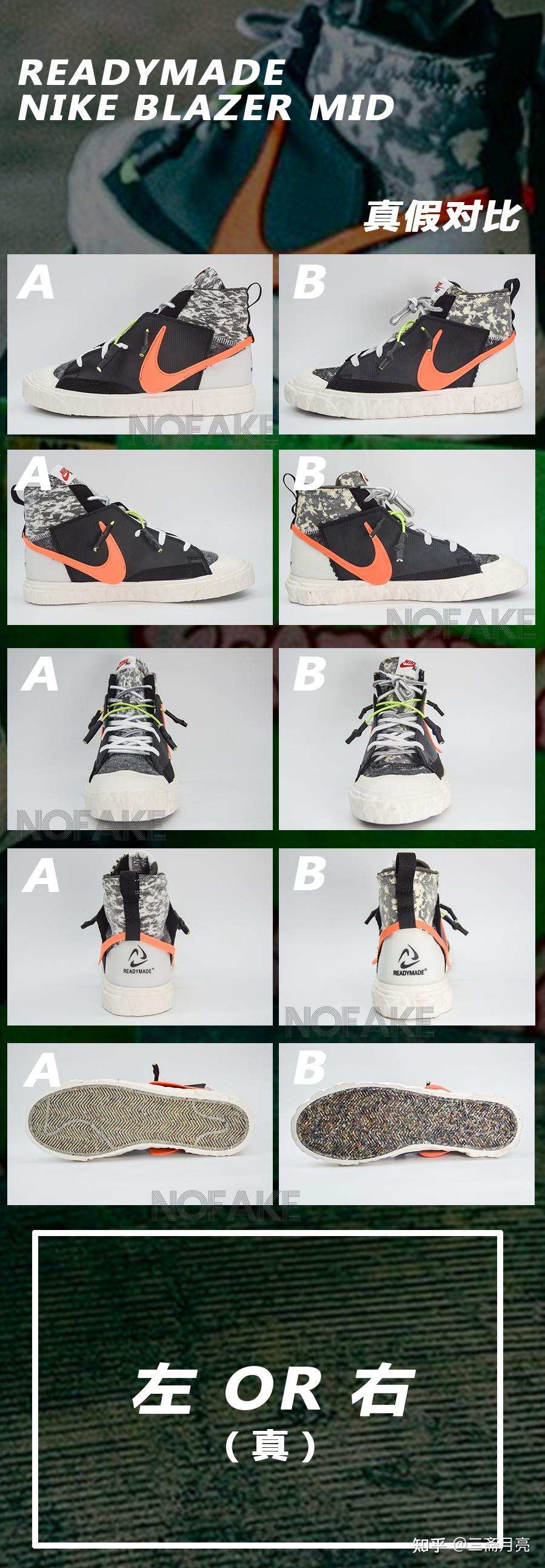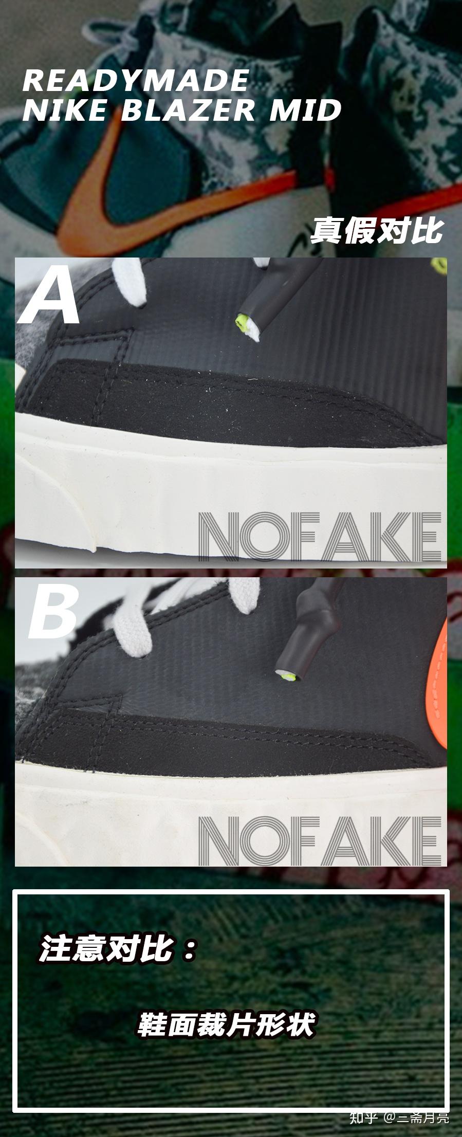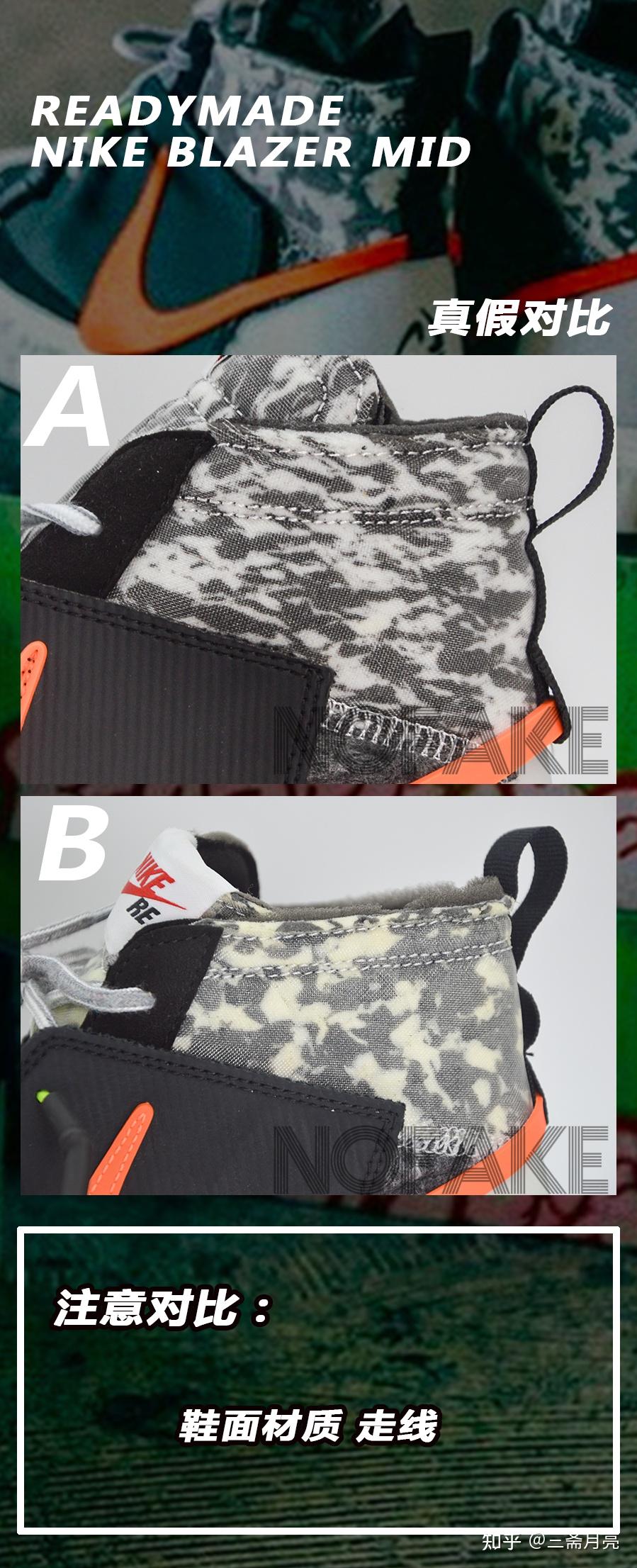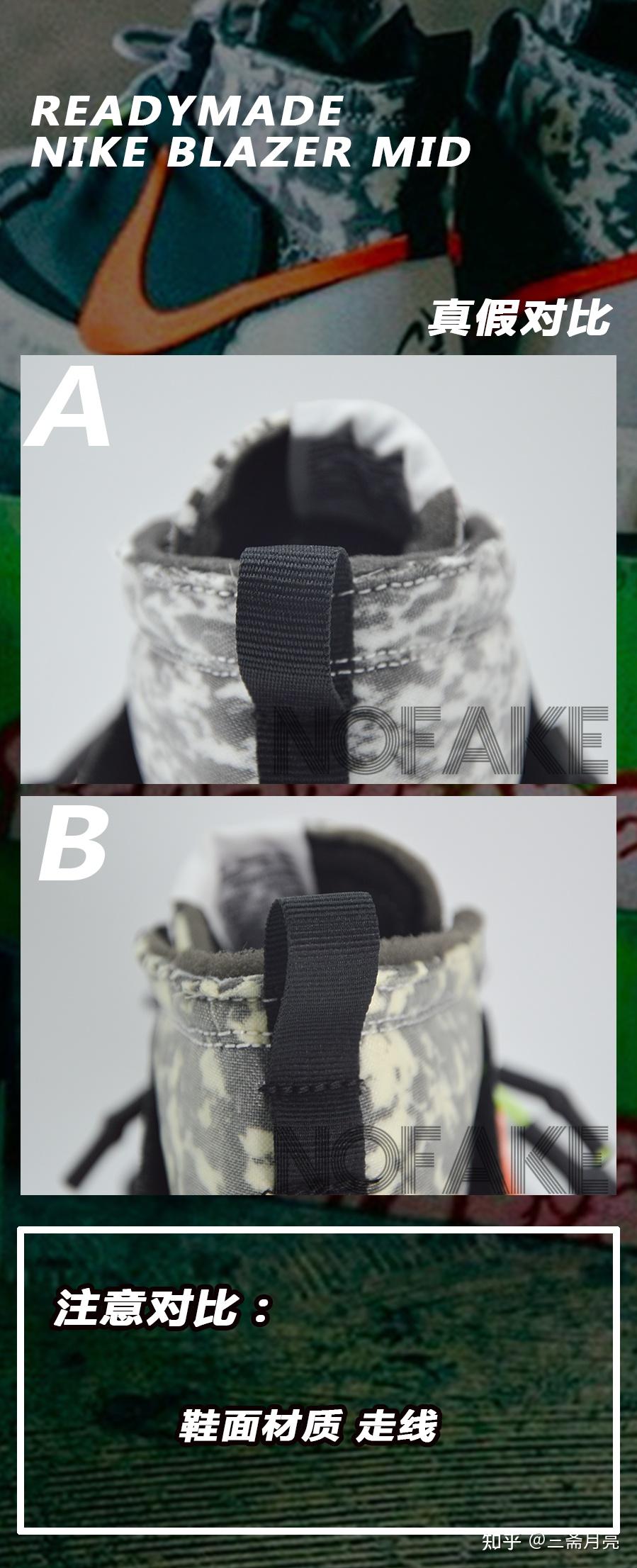 月亮(windrealns)3月中旬在「 READYMADE」刚刚发售时就写了军事机能READYMADE联名nike开拓者是东方文化崛起的象征?螺旋钩子让价格精品涨 实拍细节全网首发这篇文章,当时上了几个版本的实拍,放到今天来看也是裸鞋级别的。 READYMADE x NIKE BLAZER 很多朋友留言还是有很大的疑问,对这双热度颇高,但是又很小众的鞋款依然有非常大的热情。那么今天月亮(windrealns)就趁着老朋友的测评,给大家看一下具体的细节对比,以便更多的平台买家、二手买家、代购买家去对比自己手中的鞋子,避免损失。今天我们换个思路,用两双非正品来看一看,大家顺便可以翻翻上次的文章,看里面的鞋子那双是错误版A为fake,B为所谓组装裸鞋在原贴对比的留言里,很多中签的真鞋拥有者也是分不清B版本 接下来看月亮(windrealns)的 大家先自行对比一下,月亮的实拍和B类似 说到鞋型,月亮(windrealns)自己也对比了白得的,大家可以看看 继续看 特别是鞋底,这个回收材料的中底是一眼就能分辨 对比在这里 在这里我们先说一下,所谓组装裸鞋,其实并不存在,有些朋友对这些“裸鞋”还是有误解! 就像截图文章中说的“提前货”确实是有的,但是这些鞋子并不是以底面和裁片的形式流出!所谓“提前货”示焚方为了宣传,将成品鞋子送给明星穿着造势、大媒体拍摄宣传、团队公关、主理人自用人情等原因,这类鞋子非常的少,普通消费者几乎是不可能有机会入手的,更不会有大批量流入市场的情况! 像裸鞋圈每次提前释出的版本均为某些团队自主协议下单,以全包的形式下放至裸鞋圈,然后造势形成所谓的“无盒正品”裸鞋,高价出售。 大家可以先来看看你们所说的原厂底面和裁片 这些都是月亮(windrealns)给大家拿到的大厂裁片 大底、鞋带、围条、港宝等等 这是板鞋的围条,裁片在鞋楦上拼接完成后,粘上大底,然后就用围条包裹 后跟裁片 原厂回收材料大底,其实都是本地做的 原供应商的鞋带 后跟裁片 海绵组件 鞋帮大理石纹裁片 内里裁片 对勾组件 鞋舌织唛 鞋面大理石纹裁片 内里海绵及中衬组件 当然还有白色的各种裁片 那么接下来,我们就来看看,A为fake,B为所谓组装裸鞋的详细细节对比 一、鞋头对比 鞋面材质和鞋头形状很明显不同,包括鞋面鞋舌跟走线,A为单条,B为双条 月亮(windrealns)的,鞋面材质花白较多,鞋头包裹整齐 ,过渡明显 看这张,鞋头会有不规则的流状体纹路,这个不是瑕疵,就是风格所在 当然月亮也有自己的对比,大家可以看一下鞋头的,提前zp已经被肢解 二、鞋头侧面对比 A的过于平整,没有那种流体的纹路感而且鞋面材质都不同 月亮(windrealns)的,流体感很明显,鞋头幅度也正确 三、鞋带孔面裁片形状及走线 月亮的,裁片形状和走线细节完美一致 四、大对勾细节 月亮的,这个走线为白色,对比A那是一眼不同啊,钩子的弧度也注意一下。其实还有钩子下的黑色面料,也是不同的 五、短鞋带细节 看月亮的 六、鞋口面料材质 看一下月亮(windrealns)的 大理石纹路正确、走现整齐,关于色差问题,其实新鞋不发黄才是正确的。经过氧化后都会发黄的 七、后跟提拉对比 月亮的,鞋口很收,走线整齐 八、后跟logo对比 月亮的、钩子比例比较大,下面字体粗 月亮的对比大家看下 八、鞋带细节 这次的鞋带比较复杂,有两部分组成 月亮的 九、鞋舌织唛 月亮的,颜色是偏红的 看一下月亮的对比 反面自行对比下 十一、中底细节 月亮(windrealns)的,淡绿色 走线也看下 十一、鞋垫材质及精品胶 月亮(windrealns)的 ,对比了这么多,大家应该对你手中的鞋子有一个大概的了解了八。 后面白色的版本细节也给大家发一下吧 鞋盒呢也是升级了全做旧的原盒 鞋衬纸 钢印 防潮贴 来自日本的军事服装品牌「READYMADE」,日本设计师细川雄太肯定也是对目前的各种所谓流出鞋、提前款、裸鞋都头大至极! 对了各位朋友肯定说现在的情况月亮你还来测评Nike吗?? 月亮(windrealns)微微一笑: 文章所述所拍,均为国产!