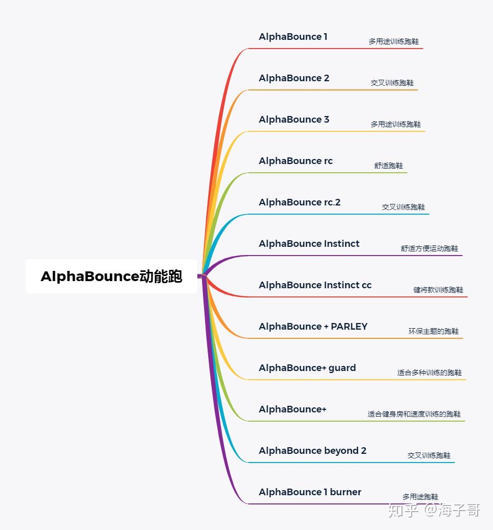 本文是阿迪达斯跑鞋系列的第二篇文章,因为阿迪达斯跑鞋的系列比较多,一篇文章放不下,所以分成了两篇文章,这篇文章主要介绍AlphaBOUNCE动能跑、Adizero竞速跑、Climacool清风系列跑鞋。 京东、淘宝年货节超级红包,每天领3次,大额红包等你精品,快试试你的运气吧! 第一篇文章介绍的是UltraBOOST长跑和PulseBOOST城市跑系列跑鞋,这两个系列可以归纳为Boost系列跑鞋,Boost系列是阿迪达斯zzui热门的跑鞋,受到了很多人的喜爱,大家可以移步到下面这篇文章去了解。 这里的科技介绍主要是针对动能跑、竞速跑和清风系列这三类跑鞋所运用到的科技,Boost系列跑鞋所运用到的科技,在第一篇文章里面有介绍。 Bounce材料是由EVA发泡而制成的中底材料,是市面上主流的中底材料,只是每家的叫法不一样,脚感也会有略微的不同。Bounce材料比较柔软,且富有弹性,同样有“踩屎感”的脚感,只是没有Boost那么强烈。Bounce材料同样具备优秀的回弹效果和缓震性能,只是逊色于Boost材料,而且重量也比Boost更重。 Lightstrike科技是全新的轻量缓震科技,和Boost相比,材质更轻、稳定性更好,脚感比Boost稍硬一点,在剧烈运动中,穿这种中底科技的鞋子可以更好的发力,一般运用在中高仿跑鞋和篮球鞋上。(未完待续) 这里收集的是AlphaBOUNCE、Adizero、Climacool这三个系列跑鞋的矩阵图,UltraBOOST长跑和PulseBOOST城市跑这两个系列的矩阵图放在了第一篇文章里。 1.AlphaBOUNCE 动能跑 AlphaBOUNCE动能跑系列,根据官方的介绍,感觉这个系列的跑鞋定位是训练跑鞋。跑鞋科技主要采用Bounce中底技术、Forgedmesh鞋面技术、橡胶外底和Adiwear外底等。 2.Adizero速度跑 3.Climacool清风系列 更多跑鞋相关知识+跑鞋选购指南,可以查看这篇文章。 更多亚瑟士跑鞋选购指南,可以查看这篇文章。 更多美津浓跑鞋选购指南,可以查看这篇文章。 更多索康尼跑鞋选购指南,可以查看这篇文章。 更多国产跑鞋选购指南,可以查看这篇文章。 更多李宁跑鞋选购指南,可以查看这篇文章 更多必迈跑鞋选购指南,可以查看这篇文章 更多安踏跑鞋选购指南,可以查看这篇文章。 更多耐克跑鞋选购指南,可以查看这篇文章。 更多大体重跑者跑鞋选购指南,可以查看这篇文章一、阿迪达斯跑鞋科技