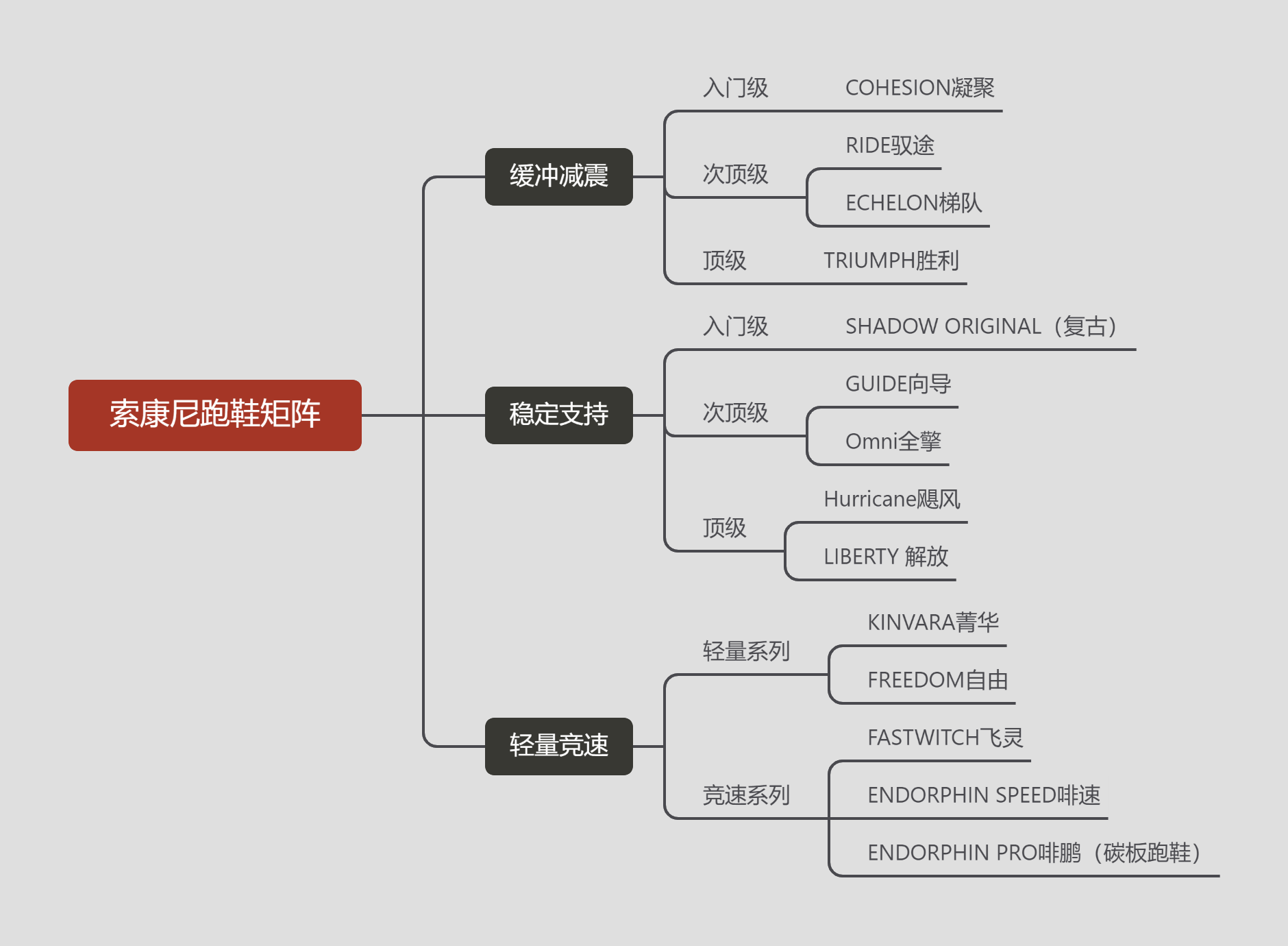 大家好,我是 @爱运动的大力,一个跑龄超6年的长跑爱好者,参加马拉松超10次。从一个小白,到买过各类跑鞋超50双的“人肉测试机”,历“坑”无数。 本文是专栏跑鞋选购那些事 的第三个系列,前面已经介绍了亚瑟士和耐克的选购,本藩示坟于索尼康跑鞋的选购指南。 对于新手跑友,经常会问到:索康尼跑鞋好不好?索尼康跑鞋系列都有哪些?索康尼跑鞋有哪些值得推荐?如何进行选择? 下面大力手把手教您选购SAUCONY索康尼跑鞋,穿透索康尼跑鞋矩阵迷雾,一文让您搞懂“SAUCONY索康尼跑鞋怎么选”。 一、索康尼跑鞋品牌介绍 二、索康尼跑鞋技术分析 三、索康尼跑鞋矩阵分类 四、索尼康跑鞋选购指南及推荐 五、总结 【全文4000+字,全程干货,点赞收藏不迷路,懒得看的小伙伴可以直接看第四部分】 提到SAUCONY索康尼跑鞋,国人心中想到的估计都是“四大跑鞋”,虽然四大跑鞋这个名头无从考据,但这足见索康尼跑鞋的地位。 SAUCONY索康尼于1898年在美国宾州成立,距今已有123年的历史,文化底蕴深厚,在美国享有“运动鞋中的劳斯莱斯”美誉。 索康尼SAUCONY的历史: 开头我们先通过一张图概览一下索康尼跑鞋的主要技术: 当然,SAUCONY索康尼的跑鞋技术远不止以上这些,我只是列举了主要部分,了解这些,对于后续大家判断跑鞋等级,选择合适跑鞋大有益处,下面一起来看看它的当家技术: 中底技术是各大跑鞋品牌的核心技术,索康尼目前的主流跑鞋采用的中底技术大体分为两大类: 一是以GRID技术为基础升级发展的PRO GRID、POWER GRID、PWRFRID+; 二是以EVERUN为基础发展出来的PWRRUN、PWRRUN+、PWRRUN PB。 「GRID」 GRID是Ground Reaction Inertia Device的首字母缩写,索康尼的成名技,是首款兼顾缓震和稳定的中底科技。初代GRID技术,采用热塑性弹性体,配置网格状的脚跟结构,能均匀地吸收脚部地冲击力,并通过网状结构分散力道,GRID从理念上融合了材料缓震及物理缓震的双重特性。 「PRO GRID」 在GRID技术上升级地第二代技术,比第一代结构做了改善,地面感应更灵敏,兼顾轻量和缓震。 「POWER GRID」 第三代技术,采用强力泡棉结合GRID技术,缓震功能不减,同时稳定性能更佳。 「PWRFRID+」 zzui新的GRID技术,较第三代技术提升了20%的缓震和15%的回弹性能,脚感更舒适,保护性能更强。 「EVERUN」 2016年推出的中底材料技术,EVERUN是一种E-TPU(发泡热塑性聚氨酯)材料,实打实的国产技术,由中科院宁波材料所与晋江国盛新材料科技有限公司合作开发。索康尼买来运用到跑鞋上,相较传统EVA发泡材料,弹性、耐磨性和温度耐受力更强。 据官方数据显示,EVERUN中底的能量回馈达83%,耐用性比EVA泡棉提升了3倍,对温度的敏感性降低了3倍。 目前,索康尼旗下的跑鞋已逐渐采用EVERUN技术或其升级技术,脚感舒适性进一步提升,GRID缓震科技逐步在被新的科技代替。 「PWRRUN」 以EVA材质为基础,通过调整配方和制作工艺,在能量回馈和耐久度方面得到提升。 「PWRRUN+」 TPU材质加上新发泡工艺,相较EVERUN材质,缓震性能更好,密度却更低,重量更轻。PWRRUN+中底材料主要使用在中高仿跑鞋上,据说,性能胜过Adidas的Boost。 「PWRRUN PB」 Pebax可以说是是目前zzui先进的中底材料,基本上你耳熟能详的跑鞋品牌,都由在其高仿跑鞋上使用 Pebax 材料,如耐克 的zoomX中底。 索康尼基于Pebax 材料,通过超临界液体发泡技术,研发PWRRUN PB中底,相较EVA重量轻40%,回弹反馈强88%,是索康尼目前zzui高仿的中底材料。 鞋面包裹性,对于跑者足部保护起到至关重要的作用,也是各大跑鞋品牌研究发力的重点之一。索康尼Saucony经过多年的打磨,研发出ISOFIT动态贴合技术。 该技术通过鞋侧的支撑条,把鞋带,鞋舌和鞋面做成一个系统,增强鞋面包裹感和贴合度。穿鞋像穿袜子一样,将整个脚包裹住,大大提升鞋子的舒适度。目前,索康尼跑鞋中带ISO后缀名的即说明该鞋运用了ISOFIT动态贴合技术。 「IBR+发泡橡胶」 一种轻质发泡橡胶,比标准发泡橡胶轻33%,手感比黑色的XT碳素橡胶软很多,用于大底前掌位置。下图蓝色部分就是IBR+发泡橡胶。 「XT-600 / XT-900」 XT-600 / XT-900都是碳素耐磨橡胶大底(上图黑色部分),主要作用是增加大底的耐磨性及抓地力。XT-900是在XT-600基础上进行了改进,耐磨性更好,使用寿命更长。 「TRI-FLEX」 是一种全新的大底结构,采用Tri-Flex箭头式沟槽设计,坚实耐磨,灵活性和抓地力更强,可驾驭多种地形,有助于过度内旋跑者长距离跑步。 根据传统跑鞋分类,我将索康尼跑鞋分为:缓震减震、稳定支撑、轻量竞速三大类别,我挑选了索康尼旗下在售跑鞋中,热度高、评价好的的鞋款,制作成了索康尼跑鞋矩阵图,如下: 了解了索康尼跑鞋的矩阵后,我们就可以结合自己的脚型,来选择合适的跑鞋了。 如果不清楚自己的足型以及对应的跑鞋系列,可以参考下图: 评价:作为一款入门级缓震跑鞋,索康尼的看家技术都有搭载,堪称性价比之王。 跑姿正常的中小体重入门跑友,或者追求性价比的学生党,可以闭眼入手。 作为同级别的跑鞋,价格相差不多,很多人纠结于驭途iso2和驭途13怎么选,有什么区别,这里简要分析一下: 选购建议:RIDE驭途13上市时间较ISO2晚一年,因此在中底科技上,搭载了更先进的PWRRUN,鞋身稍轻。RIDE驭途ISO2鞋面采用ISOFIT技术,舒适感和包裹性更好,同时价格更低,性价比较高。大家各取所需。 评价:高脚背/宽脚跑者的福音,为数不多的宽楦鞋款。 评价:作为索