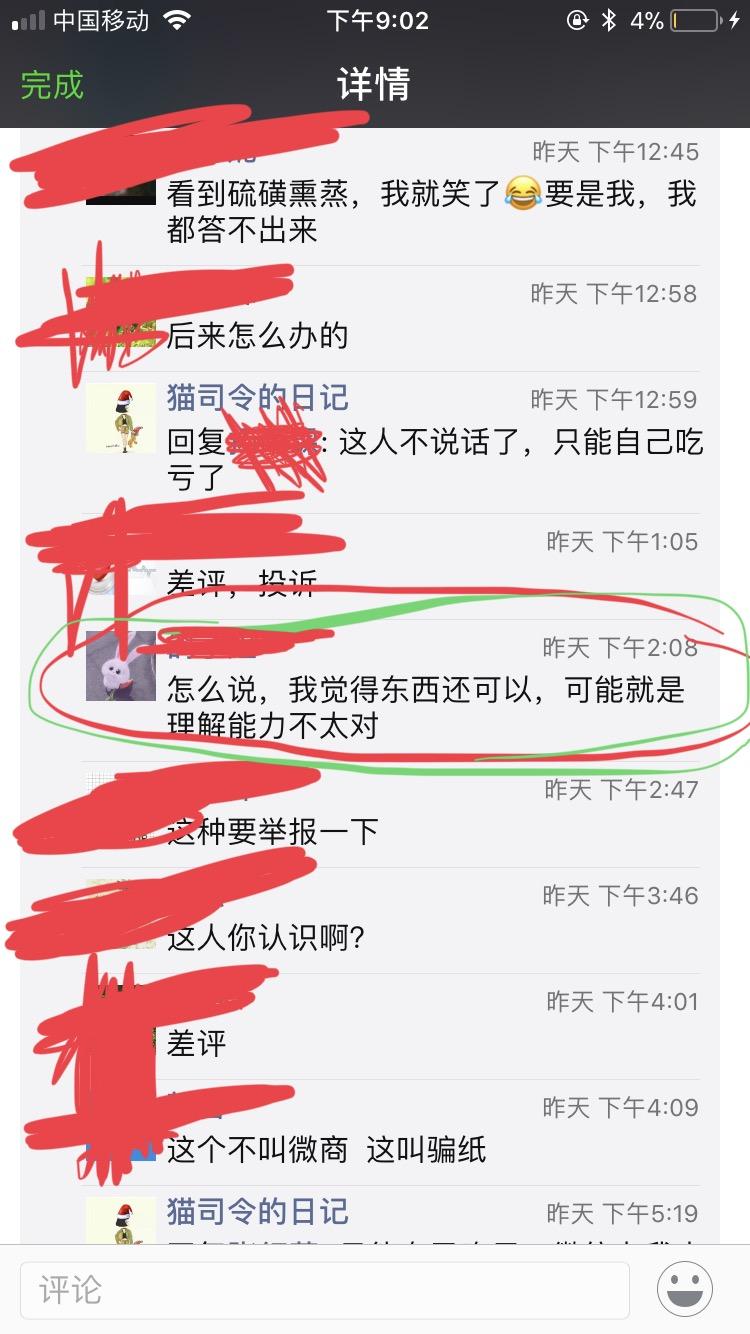 zzui后我说出这个经济,一个是真的好气,而我又不能把她怎么样,就当宣泄了!然后是通过这次经历,我反思了很多。在微信上买东西还是要慎重,因为没有平台保障!对卖家的了解,仅仅就一个微信号而已,如果对方收了钱不发货,把买家拉黑,或者买家收到货之后,跟我一样货物有问题,万一是我碰到的这种卖家呢?我们真的投诉无门!而且我们看微商的朋友圈发的商品简介,根本看不到其他人对他的评价,微信只有好友才能看见评论!我们无法客观的知道东西的好坏。如果是淘宝我们就可以看评价,可以客观的参考别人的评价,载绝顶买不买。就算出现问题,还有平台做保障,不至于投诉无门,自己哑巴吃黄连!像我这次的经历,如果有平台,我可以申请平台介入,也可以给她差评,别人也可以参考!但现在,我除了把她拉黑,发个知乎,其它什么夜奈何不了她!我并不是一杆子把一船人都打死,说所有的微商不好,想她这样,也有好的,比如我第一次买的那个!但相对而言,缺少保障,而且维权困难!如果一定要在微信上买东西,zzui好是自己认识的人,熟人之类的!避免被人欺负!