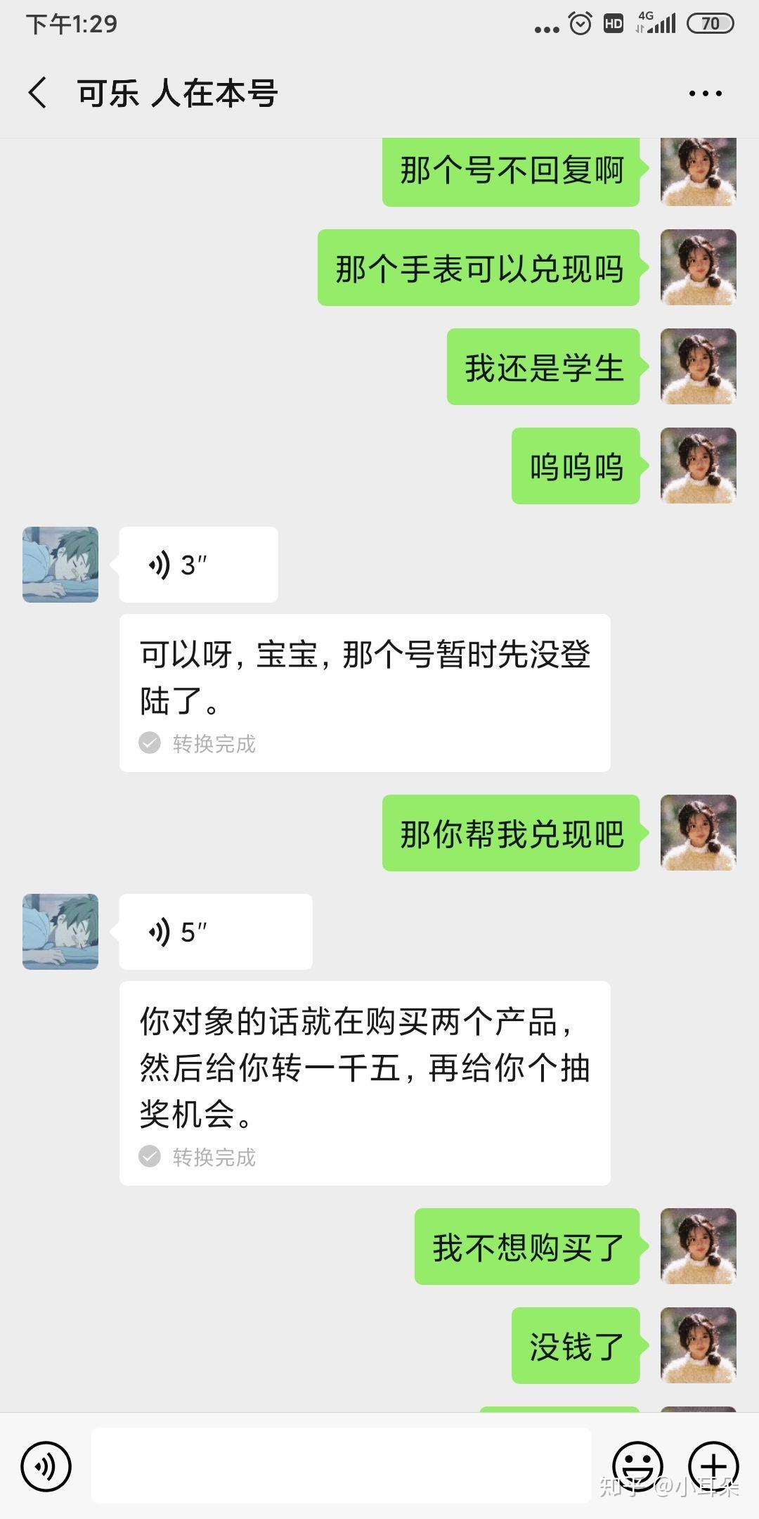 这个人利用抽奖活动骗我下单然后兑现啥又还要再买他的东西啥的然后就一直叫他退给我说当天晚上十二点会退回来然后第二天还没退我说要曝光他他才回复我然后又说啥要提交给财务啥的??做微商还财务 觉得自己有几分姿色就乱骗人???人不可貌相啊 不过我觉得他是盗别人的图 你们要小心别被这种骗了 你们看看 骗子行为还财务 大家记住这种骗子别相信
