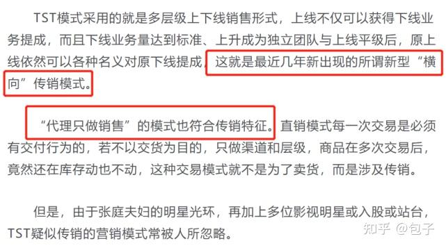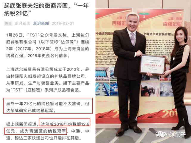 众所周知,张庭和林瑞阳夫妇zzui早是做微商起家的。 在直播行业还没有火起来的时候,张庭林瑞阳就成立了知名的微商品牌,赚了一大桶金。 1 12月29日,据官媒报道称,石家庄市市场监管局以《查证函回复》的形式,公开披露了知名日化品牌“TST庭秘密”运行主体达尔威贸易公司涉嫌利用网络从事传销活动。 另外据“李旭反传销团队”《查证函》回复,早在6月份的时候,就已经对达尔威贸易公司涉嫌传销一事立案调查,原因是“其利用金融机构转移或隐匿涉传销精品”。 而且有相关人员称,达尔威公司此次被财产保全冻结精品高达6亿。 而公司第一时间也做出了回应,称公司始终坚持合法经营,依法纳税,“目前公司运营一切正常,我司将积极配合相关部门工作。”张庭、林瑞阳也转发该微博回应。 其实早在两年前就有媒体公开质疑过,认为张庭的这种代理和线上线下的销售形式,涉及到了新型“横向”传销模式,当时也引发了不少争议。 对此张庭夫妇翻车一事,网友都不意外。 毕竟他镁帆司的微商品牌做了这么多年,一直以来,公司的经营模式,很多人认为,与传销没有什么太大的区别。 早在今年六月份,张庭林瑞阳的公司就因为涉嫌传销被立案调查。 根据官方透露,张庭夫妇在调查期间试图转移或藏匿传销精品,被官方发现后,市场监管局也采取了相应的保全措施,分两次冻结了张庭夫妇公司的精品,总金额高达6亿元。 如今张庭夫妇被查处,不少网友喊话,希望能够全网封杀。 2 揭秘张庭林瑞阳商业版图 据天眼查App,张庭相关公司有90家,其中,由其任法定代表人的公司77家,而其中张庭9家公司于同日注销,成立时间均不足一年。 上海达尔威贸易有限公司法定代表人林吉荣,林瑞阳(林吉荣)关联69家公司,其中,张庭、林瑞阳夫妇与陶虹均在上海达尔威贸易有限公司任职。 值得一提的是,成立于2021年的公司多半已注销。 截至目前,包括达尔威贸易公司在内,张庭与林瑞阳夫妇共同关联11家公司。 上海达尔威成立于2013年6月,注册资本为2.24亿元,法定代表人是林吉荣(即知名演员林瑞阳),企业性质为有限责任公司(外商投资企业与内资合资)。 上海达尔威贸易有限公司的简介显示,产品包括TST、TST庭秘密、TST活酵母、TST修复乳霜、TST冻膜、TST保湿水和TST雪花水等等。 上海达尔威大股东为上海广鹏投资管理有限公司,持股占比达到35%;此外,上海胜极生物科技有限公司(以下简称上海胜极)持股33%。 上海广鹏投资管理有限公司法定代表人为张淑琴(张庭本名),由领扬科技有限公司100%控股;上海胜极的法人代表也为张淑琴,由展麗(香港)有限公司100%控股。 “TST庭秘密”,属上述公司缝下的日化用品品牌,是由林瑞阳、张庭夫妇于2013年创立,以化妆品、护肤品为主打品类,并主要通过线上商城“庭秘密APP”和线下实体店的O2O方式进行产品销售。 据悉,TST于2014年进军微商,主打“活酵母”概念,旗下主要产品为TST系列护肤品等。2014至2018年,TST在微商圈中火爆,以令人咋舌的速度崛起,被人称为“微商第一品牌”。 值得注意的是,陶虹是上海达尔威的单一第七大股东,持股比例为1.93%。 此外,陶虹还100%持股北京zzui陶然服装服饰有限公司,而该公司是达尔威单一第五大股东。 11月23日,上海淘不庭文化传媒有限公司发生工商变更,陶虹退出该公司股东。 据企查查显示,陶虹虽然退出了与张庭夫妇等人合开的上海淘不庭文化传媒有限公司,仍是上海达尔威贸易有限公司股东,持股比例1.9301%,列单一第六大股东。 此外,在陶虹百分百持股的北京zzui陶然服装服饰有限公司,还持有上海达尔威贸易有限公司4.7049%的股份,是单一第四大股东。陶虹zzui终受益股份6.635%,为该公司zzui大自然人股东,受益类型属于关键管理人员,任职类型则是董事。 3 曾利用明星效应扩大宣传 称一年纳税21亿 在达尔威公司涉嫌传销被查的消息传出来之前,尽管网上一直有相关的质疑声音传出,但因为张庭及丈夫的明星效应,以及其他多位知名演员联合宣传,TST吸引了大量的粉丝和追随者,曾一度因“张庭夫妇TST微商纳税21亿,成上海百强企业”的宣传引发热议。 公开资料显示,上海达尔威贸易有限公司注册精品23180万元人民币,法定代表人为林吉荣(即知名演员、张庭丈夫林瑞阳),公司缝下拥有日化用品品牌“TST庭秘密”,由林瑞阳、张庭夫妇于2013年创立,以化妆品、护肤品为主打品类,并主要通过线上商城“庭秘密APP”和线下实体店的O2O方式进行产品销售。 根据他们的宣传,TST主打的产品之一就是TST活酵母系列,“活酵母”是林瑞阳20年前于法国发现的产品,回国后尝试将其运用到护肤品中,据说有着美白、祛斑、冻龄等多重作用。 4 张庭,何许人也? 张庭出生于1970年,是知名女演员。 因先后出演了《戏说乾隆》《穿越时空的爱恋》《唐宫美人天下》《武媚娘传奇》等大热的电视剧而被观众们熟知。 后来在很长一段时间,张庭几乎是从大屏幕上消失,再度高调回归大众视野时夫妇二人大秀恩爱,为他们的微商品牌TST做宣传。 2015年,张庭曾携手丈夫林瑞阳参加综艺节目《为她而战》,恩爱的夫妻人设让二人收获了大量关注,与此同时,他们的微商版图也伴随着关注度的提升不断扩展。 2014年到2018年,TST在微商圈中爆火,被人称之为微商第一品牌,张庭夫妇身价也跃升至300亿。同时张庭夫妇也高调为TST进行宣传,比如为员工发10个月年终