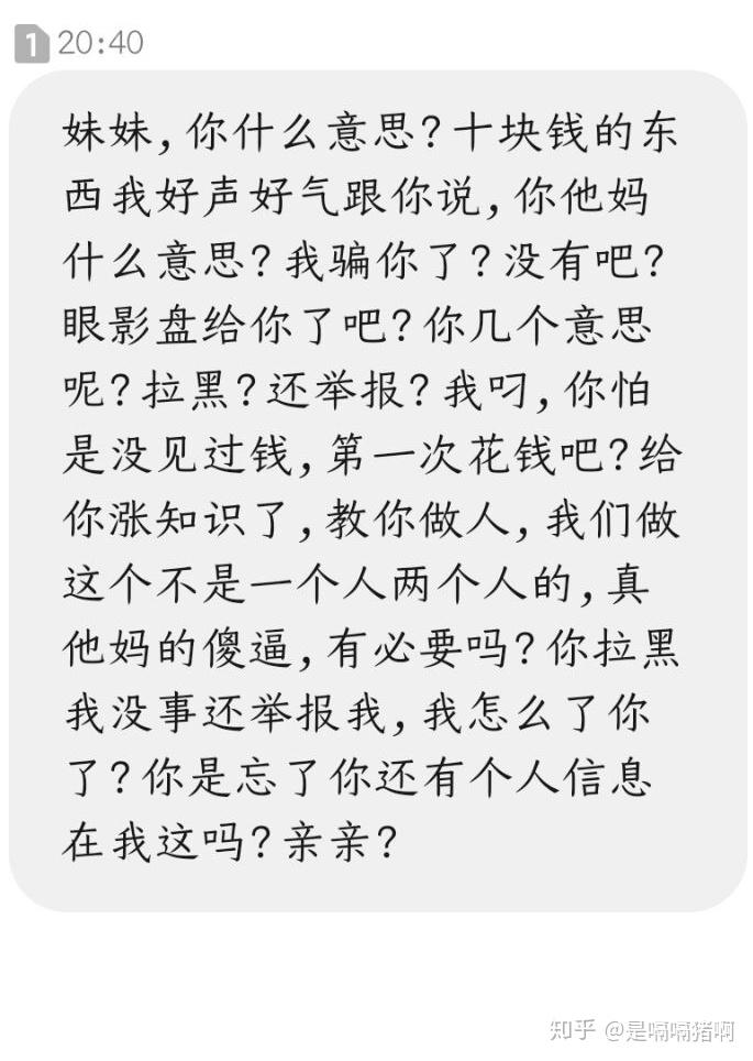 关键词:“推荐好友免费送”活动 恶意举报 灵感来源:亲身经历 就在昨天,我经历了一些与我而言有点儿被吓到事儿。 在一两个星期前,一个微商申请加我的微信,想着也是无聊,我就同意了。然后过了些日子发现她的朋友圈里面写着“推荐一名好友免费送3ce眼影盘”,附带了一个正品的图片。 然后我就叫上了我的表妹去询问,她说需要付10元的邮费,毕竟是小数目的钱,就给她了,然后是很常规操作的联系人电话,地址。 过了一个星期左右就收到了。拆开了包装发现味道特别大,塑料味还有不知道是什么的气味,非常刺鼻。这些粉非常的劣质而且粗,用我表妹的话来说“适合画画”。 下面居然还有个蓝色的...反正就是很劣质 然后一开始也没管这个,看见她pyq发88元2支mac中样,就好奇去问(不过这个假的概率真的很大),顺便问问她眼影盘的事情。 我已经很礼貌用词,显得我乖乖巧巧了 可能就是因为这个,就被她觉得我是个小学生了吧 在忽悠我...overtake这个款是他拍出来的,但是我收到的虽然也叫做overtake 反正就很假 然后我就把这个人拉黑删好友投诉了 (骗子) 看在她还这么有道理的份上,我觉得我不举报,实在是非常的过意不去。况且微信投诉的这一栏里面,它是有写着这个是属于一个诈骗行为是可以举报的。 然后 恐怖的事情来了 我寻思:我也很好声好气啊,是你强词夺理牛头不对马嘴,你早说这是活动款可能我都不会干这样的事情,怎么就这么无聊呢。还有这些污言秽语,恕我直言我是真的身边没有这样这么脏话连篇的,况且,也不是涨知识,我啥都知道啊。我也没有做错啊,微信居然有这一栏我就可以投诉啊是吧。 再者,其实我觉得微商他也算是一种服务行业的东西。就像淘宝客服他们好声好气,其实我觉得是必须要的。不可能说 我作为一个销售者,难道我就会说你这些东西你爱买就买不买就算,这样子是赚不了钱的呀。毕竟你要推销别人,那你肯定语气中就会带着那么一点点地讨好,这是一个推销的行为,好声好气有问题吗,你可以不好声好气的(况且在我询问他关于免费领眼影盘,这个事情的时候,她对我也没有多好声好气,她只是那种简单的回复我两个字“好的”“收到”这些。我相信淘宝客服一般情况下,都是会比较态度良好的,跟他的顾客沟通的。 更加好笑的是她居然精凭范了自己的电话号码,发短信到我收快递的手机里面。虽然我也不知道他的手机是不是真的是她的手机的电话号码,但是我觉得这个行为就非常的愚蠢,她现在跟我说这些像打嘴炮一样的东西并不能够解决前面的问题。 然后紧接着,因为是我推荐表妹,我的表妹推荐她的朋友,可能我表妹的朋友还推荐了一些人吧,然后我跟我表妹说了,这件事情之后我表妹也觉得这个眼影盘实在是太劣质了,然后就删除了好友。但是他们其实是跟这个人并没有什么太大的接触的,而且他们也没有把她拉黑也没有投诉她。我的表妹的朋友收到了,这个微商的好友申请上面写的是你们这几个小朋友等着清明节过节吧。 太迷惑操作了... 再然后我就被举报了。我也不知道,腾讯为什么会同意他这样子的恶意举报,因为我并没有发任何违规的东西,但是她还是成功地举报了我。作为一个品德优良的中学生,我是第一次收到这样子的警告。毕竟是真的长这么大以来,我就从来没有看见过这样子的东西,也只是在网上面会见到。我也真的是万万没有想到微信那个操作平台居然会觉得我的问题还不是她的问题。警告,上面写着我多次涉嫌违规内容要警告处理,但是我是真的没有发过任何关于什么买东西或是宣传的,我也不知道他这个举报是怎么样才能去报成功的。 生气归生气,还是要总结教训。 1.在快递写那些收货地址的时候,其实可以尽量选择家附近的像菜鸟驿站这样子的比较大的投递站。尽量不要精凭范自己的个人信息。 2.这种说邀请好友,然后可以免费获得什么什么商品的这些东西真的不要相信。 3.其实我觉得投诉是很有必要的,但是也一定要保护好自己,毕竟我举报她,我也只是仅仅只是举报还有拉黑,我已经没有干什么别的事情去诋毁她什么的了,就已经收到了这样子的短信。这样的事情其实真的很经常发生。这样的人也不止他那样子的一个,两个可能其实很普遍。所以在选择你要购买一个东西不只示泛买或是说你要付出一定的金钱的时候,一定要注意看一下对方是否真的可信。 4.收到这样子的信息也不要害怕,其实他很大概率的,只是在吓唬你,毕竟他也不会,因为你这样子一个人的拉黑和举报她会给你寄一些有害的快递这样子很不值得,她做微商肯定举报他的人也多了去了。如果是真的收到了一些奇奇怪怪的快递,然后地址又和这个人有关系,一定要报警。 这里是勇敢的嗝嗝猪同学。 码字不易,点个赞再走叭!