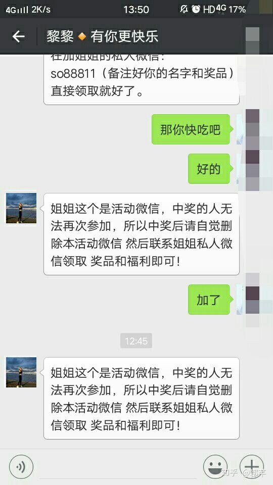 下面是另一个领奖的微信号,我骗她 说活动号已经删了。