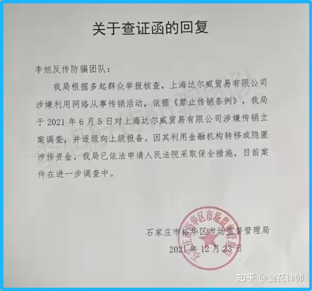 近日,石家庄市裕华区市场监督局一则《关于查询函的回复》,被网友公开,文件中指明上海达尔威贸易有限公司涉嫌利用网络从事传销活动,目前已被立案调查。而这则看似普通的回复函,却在网络上被广泛传播,一度占据各大网络媒体热搜榜,为什么呢? 据了解,回复函中所涉及的公司,由林瑞阳、张庭夫妇创立,主要以微商的形式运营品牌“TST庭秘密”。早在2021年5月,该公司就曾号称旗下公司3000多家,会员1200多万人。有媒体报道,在其巅峰时期,仅纳税额一年就突破了21亿元,年会时甚至给员工发放10个月的年终奖红包。 而该微商集团,在2015年起步发展时期即不断举办各种活动宣传推广,甚至邀请林志玲、罗志祥等知名艺人为其品牌代言。该公司以微商为名义,号称进行直销经营,实际却是采用多层级上下级销售模式,通过线上商城“庭秘密APP”和线下实体店的O2O方式进行销售。很快就拉拢了大量代理加盟,发展迅速,规模不断扩大! 有媒体从部分代理商处了解到,所谓的“TST庭秘密”的微商代理,其实就是“拉人头、疯狂囤货”。例如小萌就因为在朋友圈看到了大量的“TST庭秘密”的加盟广告,宣传很多90后小姑娘通过代理“TST庭秘密”月入20万,还宣称诸多明星都在使用,因此她便选择了加盟。 虽然一开始加盟的时候,并没有收费,但是加盟之后,面临的却是繁琐的代理机制。“你的朋友是有限的,但是你朋友的朋友是无限的”,“一生二、二生三、三生万物”,小萌在加盟后,面对公司的持续不断地洗脑式宣传,以及“看见人家一个月挣二十几万”,自然无法抑制赚钱的欲望。为了满足上级对自己的业绩要求,只能不断拉朋友加盟,疯狂囤货。 其实这么多年来,“TST庭秘密”的微商代理模式,一直就被质疑涉嫌传销,但是毕竟大牌明星的代言,以及大张旗鼓的宣传,再加上,其经营主要是通过网络的模式,范围广但地域分散,加盟代理也以女性为主,“宝妈“群体也比较多,慢慢让很多人忽略了其存在的问题。 如今,经过部门发现问题的代理人员以及李旭反传防骗团队不断举报,终于引起了石家庄市裕华区市场jiandu管理局的重视,相信经过进一步的调查,“TST庭秘密”必然遭到查处,张庭夫妇面临巨额处罚的同时,还可能因涉嫌“组织、领导传销活动罪”而受到法律的制裁。 多种微商火爆,是否涉嫌传销,你可知道? “TST庭秘密”公司只是目前被爆出的一个比较典型的涉嫌传销的微商公司,近年来,随着微信的普及,互联网社交零售的兴起,越来越多的人选择从事微商,但是各种微商公司,鱼龙混杂,其中必然还有很多涉嫌传销的公司,其实如果稍微了解一下相关的法律知识,也是很容易辨识的。 对于什么是传销,我们《禁止传销条例》第二条就做出了明确的定义:传销,是指组织者或者经营者发展人员,通过对被发展人员以其直接或者间接发展的人员数量或者销售业绩为 依据计算和给付报酬,或者要求被发展人员以交纳一定费用为条件取得加入资格等方式牟取非法利益,扰乱经济秩序,影响社会稳定的行为。 另外,《禁止传销条例》中还列出了多种属于传销的行为: (一)组织者或者经营者通过发展人员,要求被发展人员发展其他人员加入,对发展的人员以其直接或者间接滚动发展的人员数量为依据计算和给付报酬(包括物质奖励和其他经济利益,下同),牟取非法利益的; (二)组织者或者经营者通过发展人员,要求被发展人员交纳费用或者以认购商品等方式变相交纳费用,取得加入或者发展其他人员加入的资格,牟取非法利益的; (三)组织者或者经营者通过发展人员,要求被发展人员发展其他人员加入,形成上下线关系,并以下线的销售业绩为依据计算和给付上线报酬,牟取非法利益的。 我国《刑法》第224条还明确规定了【组织、领导传销活动罪】,明确规定从事传销活动的,处五年以下有期徒刑或者拘役,并处罚金;情节严重的,处五年以上有期徒刑,并处罚金。 有的微商公司宣称:“分销制度不超过三级不会定为传销”,真的吗? “分销制度不超过三级不会定为传销”宣传当然是不对的,根据上文援引法律的具体条款,显然可以发现,是否认定为传销,并不以分销层级数量来做区分。只要通过发展人员,通过多种形式对被发展人员做出限定和要求,主要利益来自被发展人员所缴纳的费用,牟取非法利益,即可认定为传销。 而关于层级的描述,仅在相关单位追究违法责任的时候,作为判断责任的情节予以考虑。 例如:根据《zzui高人民法院、zzui高人民检察院、公安部关于办理组织领导传销活动刑事案件适用法律若干问题的意见》中关于传销组织层级及人数的认定具体为:对传销组织内部参与传销活动人员在三十人以上且层级在三级以上的,应当对组织者、领导者追究刑事责任。 zzui后,笔者提醒广大网友,如果在从事,或者正在从事微商,一定要通过正规的途径了解学习相关法律规定,而不可轻易相信微商公司的宣传。根据相关法律规定,一旦发现微商公司采用的运营模式涉嫌传销,一定要及时退出,避免遭受损失,更不能积极参与其中,导致zzui后可能要坐牢就不划算了。对于有关传销的线索,可以及时拨打当地市场监guan局的举报监督电话,进行举报。 你或者你身边有正在做微商的朋友吗?大家比照看看,学点法学,避免吃亏。 对此你有何看法,欢迎留言评论!