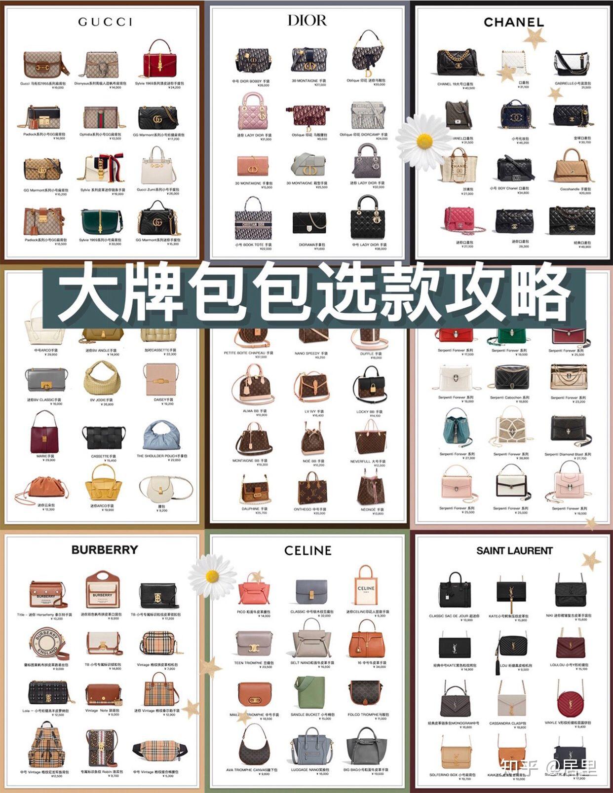 第一只大牌包 | 九图看大牌包包选款攻略||| 选择人生第一只奢侈品包包,不要追求一步到位,买现阶段zzui适合自己的就可以,菠萝包整理了9大奢侈品牌的经典包款合集,希望姐妹们都能选到喜欢的包包 · ① Louis Vuitton 路易威登 #路易威登 Louis Vuitton 法国品牌, 作为很多女生人生中第一款大牌包品牌。性价比极高,经典入门款有老花系列:noe、speedy,品牌风格比较有标识性,款式也是越来越有味道了 · ② Gucci 古驰 #GUCCI 古驰 意大利品牌,日常被推荐zzui多的,很多爆款包包一个比一个好看,GG Marmont还有老花系列都是比较经典的,近几年也如同开挂一样,[飞吻R]每季新款都惹人爱 · ③ Dior 迪奥 #Dior 迪奥 法国品牌,整体风格优雅,精致、时尚、名媛风、品牌辨识度高,Lady Dior戴妃包就是经典之作,Saddlle马鞍包和金今年新款Bobby,又掀起了时尚圈人士的追崇 · ④ Chanel 香奈儿 #Chanel 香奈儿 法国品牌,一只走高仿路线,2.55包包是经典之作,经典款价位都在3-4W,小皮具也要5k起步了,这是一个无数女孩梦想拥有的品牌[暗中观察R] · ⑤ Bottega Veneta 葆蝶家 #葆蝶家 Bottega Veneta 意大利品牌,编织是它家的经典设计,低调的奢华就可以形容它,在BV包包上几乎找不到它品牌logo,热门云朵包了,非常适合凹造型,还有Arco,很适合通勤搭配 · ⑥ Bvlgari 宝格丽 #宝格丽 BVLGARI 意大利珠宝品牌,整体风格比较贵族气质,特色就是皮具与珠宝的结合,好看又高级。自带高雅,比较经典的就是蛇头包,珐琅向茜宝石工艺打造,灵动妖娆[飞吻R] · ⑦ Celine 思琳 #CELINE 法国品牌,极简的设计风格,比较热门的款有:鲶鱼包、笑脸包、豆腐包等,基本价位在1W以上,它家品质还是不错的,做工精细,但是相对于香奈儿和爱马仕来说,价格比较合适 · ⑧ Sant Laurent 圣罗兰 #圣罗兰 Saint Laurent 法国品牌,国内很多人叫它“杨树林”,流苏链条包是它家的拿手之作,热门款还有niki,整体风格酷帅,也是很多时尚博主必备单品了 · ⑨ Prada 普拉达 #普拉达 PRADA 意大利品牌,整体风格也是设计比较简单,稳重又非常典雅,鼎鼎大名的杀手包[得意R]是普拉达的,还有今年的大热门Hobo腋下包,时尚圈穿搭都有它的身影 · ?? 买到自己喜欢的包包,才是zzui对的选择