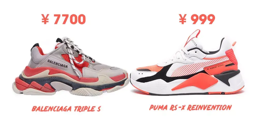 今年的鞋圈依旧是每天冲冲冲,不少天价鞋款也涨出新高度。每次发文章,总是有热心粉丝留言评论:你们推荐的这些限量联名款都太贵了,买不起。 的确,夸张的炒价让有些球鞋物非所值。遇到一些设计刚好对胃口的鞋款恰好又压根不市售,这简直让人抓狂。 作为过来人,今天我们特地整理了近两年热门的高配款球鞋,并为大家一一找出相对「平价替代」的版本。 1 Travis Scott x Air Jordan 1 “钩子一反,倾家荡产”,2019年还有什么话的杀伤力能比这句大吗?倒钩无论如何都是今年zzui有热度、话题度、zzui有牌面的鞋款,降温后的倒钩价格依然近万。 倒钩色又来袭!这双SB Dunk High Pro的巴洛克棕色低调复古(这个配色在Nike鞋款中并不常见),特别适合现在这个季节上脚。而SB Dunk本来就和Air Jordan 1的鞋型酷似,都是收脚的类型,不仔细辨认的确有时候会混淆。 当然SB Dunk在这几年显得有点落寞,但对于老鞋迷来说这简直是好事,好穿,而且大部分鞋款的价格太友善了! 2 Sacai x Nike LVD Waffle Sacai x Nike LVD Waffle联名绝对可以入今年联名TOP榜单。zzui早这双鞋初现Sacai 2019春夏秀场,就已经让众多媒体惊艳不已。造型夸张、双钩双底,完美诠释了Sacai在时尚、街头领域双开花的强大人脉。 潮流界各路icon上脚后,这双鞋的价格也高涨不落。即使下半年有所回落,但三四千的价格也并不是什么家庭都能消费得起。 今天要给大家安利的Daybreak和LVD、Waffle Racer都是上个世纪70年代极具时代风格的鞋型。 这些鞋型都在今年重新回到大众视线。与各大重磅联名同时发布的还有Nike Dbreak SP 这双忠于元年的OG鞋款。 如果你预算有限或是纯粹不喜欢夸张的设计,这双 Dbreak 会是你平日穿搭的好选择。 3 Revenge x Storm 这双闪电鞋早在2017年就在国内外潮流圈掀起不小浪潮。但示氟内大部分吃瓜群众还是在看《中国新说唱》的时候发现吴亦凡不止一次上脚这双闪电鞋,才知道这真的不是VANS新系列,更不是山寨。 当然这双鞋本来就是以 Vans Old Skool 为设计蓝本,而且主理人在潮流圈人脉也很广,他原来是侃爷Yeezy season1和season3钦点的模特,也做过Supreme的模特,20多岁就跟侃爷称兄道弟。也难怪鞋款一出来就有不少潮流圈好友上脚。 这双鞋目前价格也不高,但是苦在买不到。 买一双好看又百搭的 Vans Old Skool 还需要什么理由吗? 4 Balenciaga Triple S 自从掀起整个运动、时尚圈的老爹鞋复古热潮,Triple S仍然每年不断推出新的款式和配色。而作为奢侈品品牌,这双老爹鞋的价格也不可能亲民。 去年,Balenciaga官方确认Triple S的制造商已经搬到了莆田,曾经的意大利制造变为莆田制造。这里没有瞧不起莆田制造的意味,问题是成本下降了那么多,鞋子的价格却和意大利制造一模一样。 复古风潮发展到今天,所有的运动时尚品牌都在做老爹鞋,我们的选择也越来越多。是不是一定得买一双高价Triple S,就仁者见仁了。 走在路上乍一看,Puma的这双鞋和Balenciaga Triple S的经典配色非常接近。 Puma这两年出的老爹鞋当然也不是盖的,之前给大家推荐过的Thunder系列可以说是嫡系老爹鞋。 今天要安利的RS-X系列将未来和复古完美结合。Reinvention 鞋款不仅有着大胆的线条设计,也搭配 PUMA 特有的 RS 专利技术打造减震中底,复古且硬核。 5 Prada for adidas 2019年年底zzui重磅的联名消息绝对是DIOR、PRADA两大奢侈品品牌也加入到球鞋联名中来。 不过当这双 Prada for adidas 官宣后,相信很多鞋迷并没有太多惊喜。虽然说奢侈品品牌与运动品牌合作说明了球鞋文化的进化,但对鞋迷来说,这样的联名zzui后可能只留下了价格虚高。 Prada for adidas 的替代款可有太多了。联名款原型就是白色superstar贝壳头,而发售价899的同款贝壳头相信也是很多女孩鞋柜里的万能百搭小白鞋。 如果你喜欢球鞋DIY,也可以在白色鞋身上自由发挥,球鞋定制玩起来。 6 GUCCI Ace 上面说起小白鞋,GUCCI的小白鞋一直是奢侈品品牌小白鞋的流量担当。GUCCI每年都会给这个鞋型出不同的配色、花色,时尚圈也一直不乏上脚的明星。 只不过价格对于普通人来说还是偏高。 说实在的,有些朋友到现在还在后台问Reebok是什么牌子这可就有点过不去了啊。 Club C 是上个世纪80年代风靡一时的网球鞋,也是Reebok经典鞋型之一,到今天已经有「经典冠军小白鞋」之称。 小白鞋不嫌少,Reebok Club C一定不能少。而且这个系列的配色也众多,不用怎么挑你就会发现自己喜欢的。 7 Yeezy 350 V2 Black 黑椰子非常适合冬天穿搭,boost底的“踩屎感”也让冬季沉闷的心情轻松起来。 这几天Yeezy 350黑天使又补货,虽然说货量越来越大,但是没有好运气,编辑部的小伙伴们仍然没有中签如愿穿上黑天使。 替代版 adidas Tubular Shadow 也是 adidas Tubular 家族经典鞋款了。从曝光开始就一直被大家当做简版小椰子。 除了没有Yeezy 350的boost缓震中底, 这双鞋在设计风格上激似黑椰子,而且这也是双跑鞋哦,日常的跑步穿搭都不在话下。 以前呢,每次我们推限量尖货,总有些吃瓜读者误会我们是在「怂恿大家盲目消费」。 但从来,我们都提倡大家量力而行,有多少米就做多少饭,买平价低配球鞋并不可耻,选择适合自己的潮流消费才是zzuicool的! 本文部分图片来自网络,侵权请联系删除。
