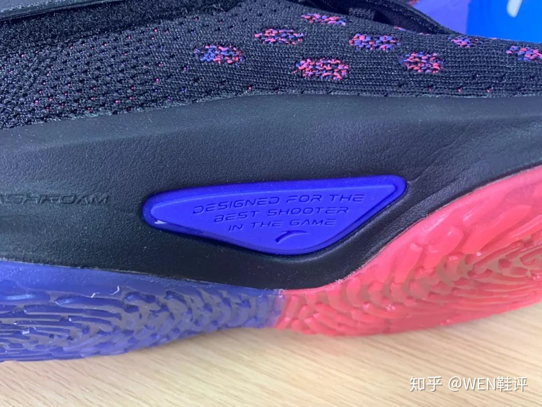今天要做的就是这双联盟品质3D球员—克莱汤普森的第五代签名战靴。在开箱之前先给大家讲解一些必须要知道的事情,首先KT5这双鞋是在汤普森受伤之前设计的,用了接近2年的时间,是一双完全为实战设计的球鞋。一共设计了500份手稿,由汤普森本人从中选出50份设计图,是汤普森从50份设计图里找到自己喜欢的特征整合设计而成。 发售价是749元,现在实体店以及网上已经发售了。 首先我镁反看这个鞋盒,单纯从鞋盒设计角度来说,这个鞋盒是属于很用心的程度了,作为汤普森第五代签名鞋,鞋盒延续前一代用心的设计。正面可以看到一个汤普森专注训练和比赛时候的表情LOGO。这双鞋的配色叫“KLAYTHEISM”,意思呢是“克莱主义”,不知道什么是克莱主义的去看我们前几天的VLOG。 鞋盒上面有很多相关的元素,打开以后也是如此,给大家看一下,另外还有一张小卡片,背面说的是:快速的移动能力,超强的自尊心,给了我很大自信;虽然投篮能力很强,但是防守才是我zzui骄傲的事情。这是克莱对自己的一个称呼。其他就没啥了,要是有个KT4的小手环或者贴纸啥的我觉得会更好。 接着来说这双鞋吧。基础信息 发售价:749元 尺码:US8.5/EUR42是否偏码:略微偏大重量:440g 首先说下这双鞋的造型,OG第一眼一定会看出来AJ18的影子。所以这双鞋是不是一双实战好鞋?如果你觉得AJ18好,那这双鞋你觉得能差到哪里去? 这双首发球鞋的配色采用的是红头蓝屁股的设计,灵感来源于作为3D球员(加入3D球员的意思解读)的克莱汤普森本人的球风,进攻端可以火热到单节37分,防守端可以限制对位球员的进攻能力。更重要的一点是KT5借鉴了罗马数字V这样一个梗,红蓝加中底的效果zzui后看起来就会很像KTV里的灯光一样。同时,这双鞋的图片效果会看起来非常的炫酷,所以实物距离效果图确实是有点买家秀和卖家秀的感觉。 说完这个先来说配置,鞋面采用A-WEB的编织鞋面,同时进行一定的镂空进行减重,保证包裹的同时增添一点其实没有什么卵用的透气性,魔术贴的设计提供整个球鞋鞋身的锁定,防止鞋带在球员频繁跑动之后松散降低包裹感和鞋脚一体性。 在鞋后跟内部采用了一块足够大的TPU之后,外侧也增加了一个TPU作为这双球鞋的加固。 中底采用安踏a-flashfoam缓震,但是采用了双密度的中底,所以这双鞋的整体脚感明显偏硬。相对应的回弹和缓震极限会提升的比较明显,同时zzui大的弊端就是球鞋重量在中底上占据了不少。使得整双球鞋的重量变成440g。为什么在现在这样一个追求轻量化的时代里,汤普森会选择一双重量偏高的球鞋?因为汤普森本人其实属于力量偏高的3D射手,拥有联盟品质的对抗,所以偏高的重量对他来不重要。另一个点是安踏目前的中底科技里并没有保证轻质并且稳定性非常高的中底科技。其实整个国产品牌目前在篮球鞋领域都没有,匹克态极,李宁云,甚至韦德之道上用的B+C都做不到轻质且支撑性好。这是EVA材料的一个通病。 KT5的足弓部分是有一块可以看见的TPU提供支撑和抗扭,并不是一个贯穿设计,而是一个组合设计。这双KT5上用了两块中底支撑板。两块TPU,一块放在整个中底,一块放在侧面足弓支撑底部分。这是这双KT5整个重量偏高的重要原因。假设今年安踏还会提供类似KT4 PRO那样的产品,中底的TPU在更换成碳板之后会减重不少。 外底的纹路跟KT4接近99%的相似,原因是就目前来说,找不到更好的鞋底纹路给汤普森了。目前的纹路是zzui适合汤普森做无球跑动以及急停的问题,相对于耐克的激进创新,安踏选择了保守的延续,是好是坏看你们个人评判了。 其他的小细节主要是前掌外侧突出的上翻以及前掌外侧的加宽增加支撑和防侧翻,后跟用外底上翻加11号球衣号码来提升后掌稳定性,签名则是在这个盖子下面,盖子的反面则是克莱的卡通形象。 如果说zk4是一双极致的全能后卫鞋,那这双KT5就是一双极致的3D射手球鞋。牺牲脚踝的灵活性,以及牺牲脚感换来一个全方位的包裹和支撑。甚至可以说这双鞋牺牲了所具备的球鞋潮流属性,就是一双完全为实战而生的篮球鞋,当然,全新的水晶球配色个人主观来说觉得比这双首发配色好看的多,就曝光图来看,是一双可以依靠配色拯救的球鞋。嗯,没错。我个人觉得这个首发配色确实没那么好看。 OK,那么本汾的开箱就到这里结束了,会尽快让文胖和果子去做实战测评的。为大家挑出这双鞋的适合人群以及缺点。如果喜欢这个视频记得投币点赞收藏三连支持我们一下吧。