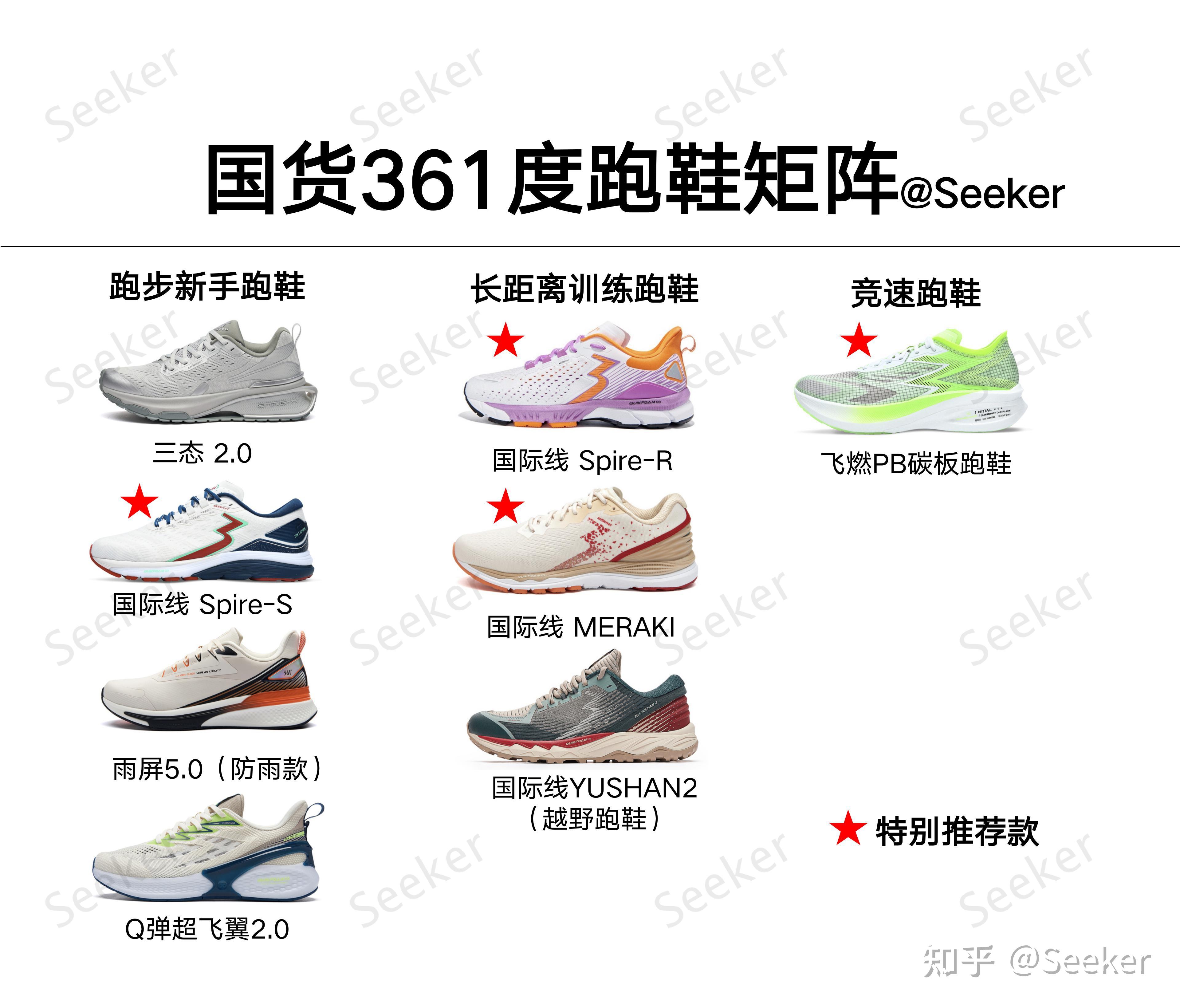 361度38节价格还不到五折,平时都不怎么打折的,跑友们更新跑鞋的时候到啦! 作为跑鞋博主,今天要介绍这么一个国产跑鞋品牌: 在国外有上千家销售网点,遍布巴西,美国,欧洲的英国,德国等等等。在海外销售的几乎每一双跑鞋都会登上权威的跑鞋杂志,跑者世界。 你能猜到这个品牌是哪家吗? 没错,就是今天要介绍的361度,在国外发售的产品国内叫361度精品线,和国内的LOGO,不一样,精品线的LOGO是一个大大的“3”字。 在跑者世界官网搜361 degree,搜出来84条结果,可见其入选的跑鞋之多。 今天要介绍的361度品牌也是跑鞋小课堂专栏第八篇跑鞋品牌介绍文章。之前的七篇品牌介绍文章都汇总在下面的「1.3万+点赞,3万收藏」的文章里: 为方便阅读,本藩361度品牌介绍文章目录如下,查阅资料太费脑,花费一周时间写完,你们的一键三连是我继续写下去的动力哈: 一. 361度品牌介绍 二. 361度跑鞋技术分析 三. 361度跑鞋矩阵及值得买跑鞋推荐 1. 跑步新手跑鞋推荐 2. 长距离训练跑鞋推荐 3. 竞速系列跑鞋推荐 361度也是晋江系出来的品牌,福建人好会做生意,安踏,匹克,特步,整个晋江系几乎占据了运动品牌的大半壁江山。一开始是从台湾引进设备生产旅游鞋,再到运动鞋,到zzui后扩展到整个运动品牌。 361精品线是361度为了打入精品市场推出的品牌,361度精品线和国内的361度团队在设计上和运营上都几乎是完全分开独立运营的。 361度精品线的跑鞋设计团队大量是从NIKE,ASICS,Adidas等挖骄俘来,尤以亚瑟士zzui多,所以361度精品线的跑鞋也是自己非常喜欢的。 精品线出品的跑鞋,在目前也可算是闭眼买的类型。 这里要尤其强调一些精品线的LOGO,361度精品线的LOGO,由原来的361度,改为了一个大大的“3字”,在我看来这个大大的“3”字要更大气一些。 361度LOGO: 正在穿的361精品线Spire-R的361精品线LOGO: 361度的跑鞋技术主要是2个方面,一个是它家针对不同等级跑鞋的差异化中底科技,另一个是QDP的动态引导系统。 中底科技主要是三种: 品质的PEBA尼龙弹性体,和耐克的ZOOM X以及李宁的beng同一种中底材料,目前用在品质的竞速跑鞋飞燃上,听说近期会发售升级款,大家拭目以待; QU!KFOAM是以EVA为基底发泡而成,它一共有两种变体,QU!KFOAM ∞和QU!KFOAM lite,QU!KFOAM ∞也叫Q弹超科技,是一种现在中高仿跑鞋上通常会用的超临界发泡的工艺,轻质且具有很不错的回弹,Q弹超多用在精品线系列跑鞋上; NFO是361度一款比较早期的中底泡棉,多用在低端鞋款上,脚感虽然比较软,但是回弹性差很多; 还有一个是361度的步态引导系统QDP(QUICK DYNAMIC PERFORMANCE),这个系统是由QU!KFOAM鞋垫, QU!KFOAM中底,以及EVA下中底组成,共同构成这个系统,有点类似于亚瑟士的动态引导系统,这就是挖角亚瑟士的用处所在吧 还有其他技术如RPU止滑大底等不再做过多介绍。 361度品牌的跑鞋加上精品线品牌的跑鞋种类有很多,近几年361度在做减法,将精力集中起来,减少跑鞋的品类,主推主力鞋款。下面推荐的鞋款都是在国内渠道可以买到的鞋款。 分为三类跑鞋,针对跑步新手的短距离入门跑鞋;针对进阶跑者的长距离跑鞋;针对比赛场景的竞速跑鞋; 跑步新手跑鞋主要针对平时跑量在5km左右及以内的初跑者,这类跑鞋在保护性方面做的比较好,且性价比相对较高。 按照从大体重到小体重的顺序来介绍: 三态2.0是361度zzui近新推出的入门跑鞋,整个跑鞋保护性做的非常充足:Q弹超中底,后跟硬质港宝,中足尼龙稳定支撑板。几乎所有能上的缓震和保护都上了。 不管你是小体重还是大体重都能提供充足的缓震和保护。而且如此高的颜值,平时街穿也可以穿。 Spire系列就是多次获得跑者世界大奖的系列之一,这款Spire-S和R系列算是兄弟系列,S系列更软一些,更适合初跑者。 这款Spire-S系列也是自己正在穿的跑鞋,采用的精品线系列经典的配置,Q弹超科技中底和QDP快速动能效力和灵敏系统(翻译过来就是鞋底稳定和步态引导,让跑步更加稳定且能提高跑步效率)。 精品线出品值得信赖,如果你是初跑者,每次跑步在5km左右,则这款缓震充足,踩屎感的跑鞋会非常适合你 Spire-S系列测评文章: 雨屏跑鞋经过了数代的迭代,已经来到了第五代,这是一款防雨款的跑鞋,鞋面是采用的防泼水设计,中底是Q弹科技中底。 雨水比较多的地区的童鞋们不妨入手这款防雨款跑鞋,专门做防水设计的跑鞋品牌还是非常少的。 Q弹超飞翼2.0也是自己目前正在穿的跑鞋。这款跑鞋的颜值真的很喜欢,中底采用的Q弹lite材质,跑鞋的缓震相对于Spire系列要弱一些。 更适合60kg以下的小体重跑者,也可以作为平时街穿的休闲鞋使用,是一款颜值和性能都还不错的入门款跑鞋: 长距离训练跑鞋主要是用于平时的10km及以上的长距离跑步,甚至用于参加半程以及全程马拉松。 这类跑鞋要具备长距离后半程不会卸力,一般的入门跑以及休闲跑鞋的通病就是短距离不会有感觉,但是长距离会越跑越累。 而361度的精品线系列也是多次荣获跑者世界大奖的跑鞋,特别是Spire系列更是常客,下面推荐三款: Spire-R系列是首推的一款马拉松跑鞋,也是自己正在穿的,在去年的高赞好物100活动中,自己作为选品官也是将这款跑鞋推荐在跑鞋榜里。 这是一双可以轻松驾驭长距离训练以及全程马拉松的跑鞋,详细测评可以看下面一篇被编辑推荐的回答: Meraki可以理解为途伐于Spire系列。 如果说Spire系列是适合马拉松的武