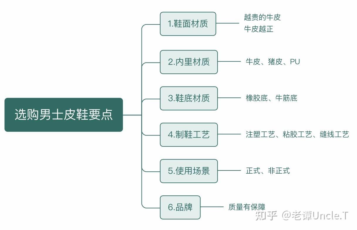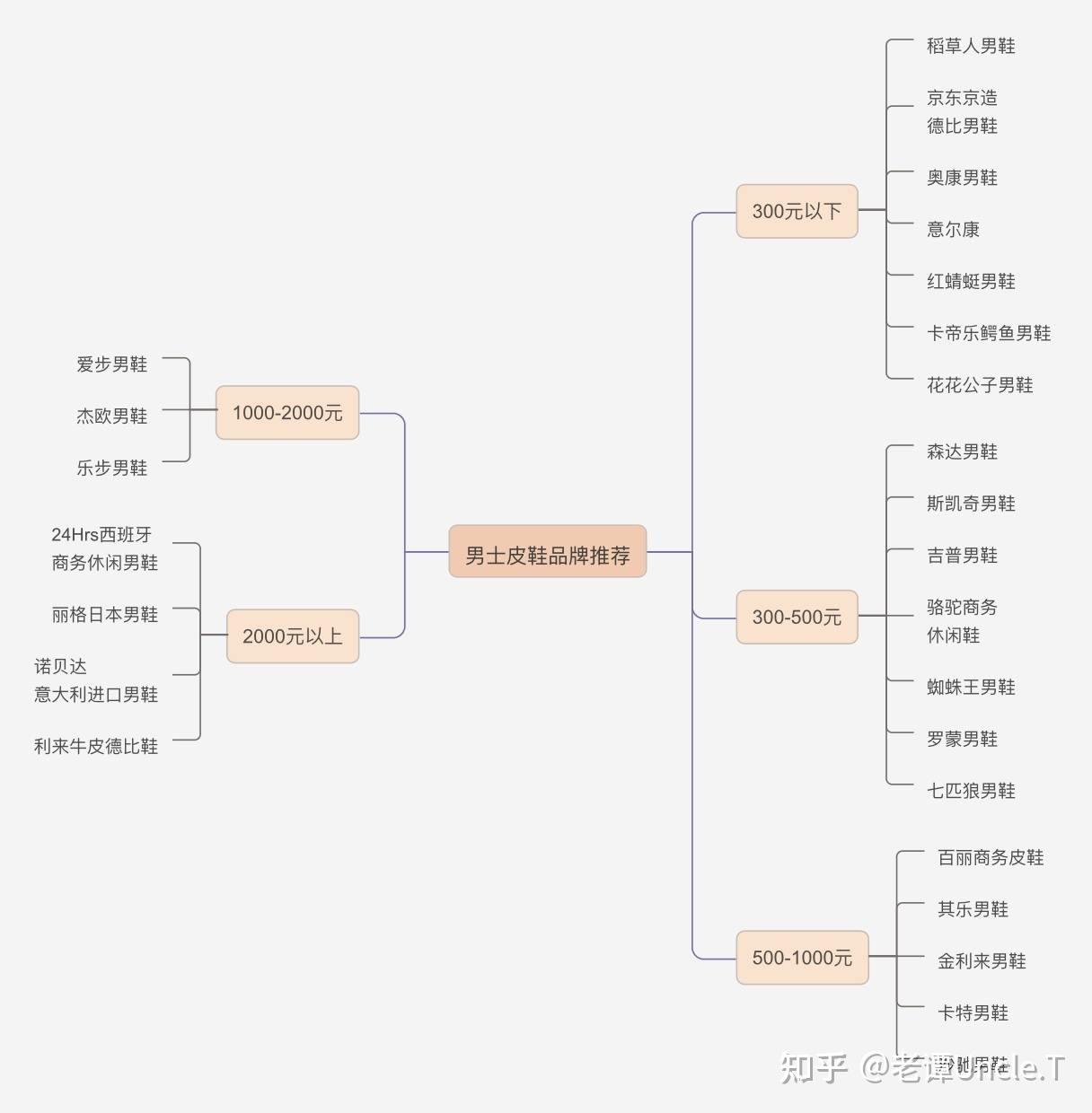 大家好,我是 @老谭Uncle.T ,本文章为在知乎首发原创,请勿抄袭,违者必究。 作为爱生活的大叔,平时日常穿戴,对皮鞋的要求也是少不了的,我平时工作各种场合需要,皮鞋穿的也比较多,从500到5000的皮鞋都买,本文章主要从皮鞋品牌和价位出发帮大家理一理男士皮鞋品牌怎么选择。 抄作业清单先放上: 如何选购一双适合自己的男士皮鞋?皮鞋品牌怎么选择?整理了思维导图供参考: 市面上的正装皮鞋以牛皮为主,也是我们选择zzui多的,而且不是牛皮就很贵,200左右就能买到不错的头层牛皮,价格区别在于牛皮的质感,越贵的皮鞋牛皮越正,质感越好。 内里材质的舒适性和透气性很重要,皮鞋的内里材质有牛皮、羊皮、猪皮、PU。 皮鞋的鞋底材质以橡胶底为主,耐磨、防滑、弹性好,主要有橡胶底、牛筋底、真皮底 橡胶底还有减震的功效,因此是皮鞋鞋底zzui常见的一种!橡胶鞋底优点是耐磨性佳、防滑、有弹性、不易 断裂,柔软度较好、伸延性好、收缩稳、硬度 佳、弯曲性好、防水;缺点是较重、透气性、吸湿性不好、怕油浸泡,不宜在汽车加油站等接触油的地方穿。 牛筋底,和橡胶底的功能相似,柔软度比橡胶底还好,但由于价格上比普通的橡胶底贵,所以用的少 真皮鞋底,西方的绅士皮鞋上比较常见,真皮底优雅,一般适合室内正式场合。但比较不耐磨,容易磨损,下雨天不太适合户外穿。 按工艺手法分为注塑工艺、粘胶工艺、缝线工艺,缝线工艺有布雷克缝制和沿条固特异两种。 注塑和粘胶工艺简单价格实惠,但是注塑鞋不耐磨,粘胶鞋容易开胶,非常不耐用,能不选前往不要选!缝线工艺比较好,很多高仿皮鞋都采用这种工艺,对皮质材料和制作要求都比较高,舒适耐穿。 不同的场合穿不同的皮鞋,正式的场合穿正式一点的皮鞋,非正式场合就可以穿休闲皮鞋了。所以根据具体情况而定。 皮鞋品牌怎么选择?这些品牌男鞋,都是当下很流行的款式。价格不同,质量有保障!价位越高,质量越好!大家可以根据自己的需求选择合适的皮鞋。 皮鞋品牌怎么选择?以下推荐二十七款双十一值得入手的男士皮鞋: 奥康正装休闲两用皮鞋 男士皮鞋推荐点评:这款皮鞋带质感头层牛皮,甄选PU材质,亲肤柔软,吸汗减湿,双脚可以自然贴合舒展,还有缓震聚氨酯材质做底,耐磨耐折,防滑无忧,舒适轻松! ?意尔康商务正装皮鞋 男士皮鞋推荐点评:这款皮鞋是牛皮革鞋面,纹理清晰自然,光泽明润柔和,简约的鞋面充满时尚都市气息,而且有舒适内里,质感柔软,还有轻盈的塑胶底,简约的纹理,真的是男人正装的首选! ???稻草人皮鞋 男士皮鞋推荐点评:这款皮鞋是细腻牛剖层革打造,纹理清晰,属于经典风格,还能贴合足部肌肤,柔软舒适,轻盈的步履由脚下开始,还是橡胶大底,柔软舒适,行走自如。 ???意尔康柔软单鞋 男士皮鞋推荐点评:这款皮鞋舒软休闲,简约稳重,宽绰脚前掌设计,贴合不软塌,给脚部释放舒适空间,走路轻松自在,它还有柔软细腻的内里,上脚舒适。细腻质感,贴合脚面,感受轻透舒适的脚感,它的弹性拉合鞋舌,柔软贴合脚背用,简单的方式让穿脱便捷,穿着更舒适! ???红蜻蜓商务休闲时尚皮鞋 男士皮鞋推荐点评:这款皮鞋简洁表现,商务百搭,简约鞋面添加时尚元素,搭配流畅缝线打造属于你的商务型格,还有质感打蜡系带,鞋面融合流畅鞋身缝线,予您品位稳重中的张扬,提升整鞋气场度,再加上猪皮革内里柔软透气,触感细腻,让行走自如! ???京东京造德比男鞋 男士皮鞋推荐点评:这款皮鞋精选优质头层牛皮,保留皮料原始粒面纹路,经抛光、打磨、上色、固色等12道工序精制而成,细腻柔韧,考究大气,鞋底采用轻质橡胶材料,分段设计更适应行走脚弓,脚底变化,防滑减震,舒适回弹,随意弯曲都不易变形,还有品质头层猪皮内里,猪皮透气透水性优良,吸湿排汗,透气不闷,为双脚营造出干爽舒适的环境! ???卡帝乐鳄鱼男鞋 男士皮鞋推荐点评:这款皮鞋选取头层牛皮,纹理清晰,光泽,自然皮质柔软富有弹性,还有猪皮+织布内里干爽透气,营造干爽的鞋内环境,更加柔软亲肤,还有它的聚氨酯鞋底,柔软耐折,轻质舒适,鞋底凹凸纹路,增强阻力,抓地稳健! ?花花公子男鞋皮鞋 男士皮鞋推荐点评:这款皮鞋是头层牛皮鞋面舒适与透气兼具,并采用猪皮内里护足亲肤保持脚步干爽,还有橡胶防滑鞋底,加深纹理,立体设计,防滑耐磨提高稳定性! ?森达男鞋 男士皮鞋推荐点评:皮质柔软,色泽温润,脚感贴肤舒适,做工细致,外观养眼,非常好的鞋,森达品质始终如一。 ?斯凯奇男鞋 男士皮鞋推荐点评:这款皮鞋质感很好,皮革纹理细腻,光面牛皮结合冲孔设计,品质出众,简约有型,尽显随性休闲格调! ?吉普男士皮鞋 男士皮鞋推荐点评:这款皮鞋属于牛皮鞋面,采用二层牛皮,不易磨损,严选内里材质制造,舒适透气,还有严选耐磨橡胶大底,耐磨防滑! ?骆驼商务休闲鞋 男士皮鞋推荐点评:这款皮鞋是专门挑选柔韧质地的牛皮,不添加人工化学精品剂,释放惹眼蜡感光泽,内部使用透气毛孔清晰可见,具有亲肤感十足的软度及弹性猪皮,拼接了细腻吸湿的绒布,帮助提升脚感的干爽度。鞋底选用优质橡胶鞣制而成,独特的巧克力状底纹设计, 有效提升防滑性能,强化摩擦力,耐弯折,不易断裂。助你轻松迈步,使行走变得自然省力。 ???蜘蛛王男鞋 男士皮鞋推荐点评:这款皮鞋甄选优质的用料,从鞋面到内里再到鞋垫鞋底,每一个细节都很讲究,只为穿着的体