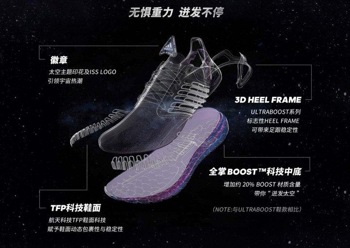 耐克和阿迪达斯在缓震科技上的竞争,有点儿像三英战吕布。耐克这边有经典的 Air 气垫,各种 Zoom 材料,价格逐渐下探的 React 以及今年下半年出现的 Joyride 等等,阿迪达斯呢,在跑鞋上差不多就是 BOOST 走天下了,没办法,BOOST 材料实在相当优秀,可塑性也很强。 对于我这样一个买过了七八双 BOOST 中底鞋子的人来说,对 BOOST 的情感可以说是颇为复杂,一方面它脚感确实舒适,尤其是多年前第一次踏在 BOOST 上的感觉,堪称惊艳;另一方面,时间久了,它给人的新鲜感也逐渐降低了。就我个人的穿着体验来说,并不是所有的 BOOST 鞋款都脚感优秀,比如当年一鞋难求的三叶草 NMD 系列的前掌就太单薄了,而 Yezzy 350 系列又在稳定性和包裹性上有待提升。 但不管我们对 BOOST 有着如何的期待和苛求,阿迪达斯的 ULTRABOOST 系列在绝大多数时候都能让挑剔的人闭嘴。如果有人问我,想买一双舒服的 BOOST 鞋子,该买哪款?回答 ULTRABOOST 就像多年以前回答买手机就买 iPhone 一样保险。 在 ULTRABOOST19 这款慢跑鞋上,我们见到了阿迪达斯在 BOOST 之外更多的思考,比如鞋面编织工艺,稳定系统和防扭转配置。这种思考并未停止,甚至还有跃升的迹象:ULTRABOOST20 来了。 我换掉 BOOST 鞋子的原因,往往不是它不弹了,或者鞋面破了,而是白色的中底粘上各种污渍根本都洗不掉,变得太脏。所以到了后面,阿迪也推出了各种彩色的 BOOST 中底,以获得更个性的外观,以及更强的抗污能力。 在 ULTRABOOST20 上,我们见到了全新的 BOOST 中底的全新颜色:荧光紫,或者叫它星空色。 随着光线的流转,它的中底会呈现蓝紫变焕的颜色转换,这种奇幻的色彩会在漫威系电影中经常见到,像是《精品护卫队》里深邃的太空,像《奇异博士》里的 BOSS 多玛姆,更像此前漫威电影宇宙里的zzui终大 BOSS ——灭霸。 不过,本次跟 ULTRABOOST20 产生联系的,不是漫威电影,而是精品空间站(ISS,International Space Station)。为纪念阿迪达斯与精品空间站(ISS)美国国家实验室达成长期合作,阿迪达斯推出了 ADIDAS ULTRABOOST20,不止赋予了这双鞋子对抗重力的跑步体验,还增加了它的科技感 与精品空间站(ISS)美国国家实验室的合作为阿迪达斯也带来了更多的设计灵感。在鞋身的诸多地方,我们都可以看到这些关于 ISS 精品空间站的设计元素,比如鞋舌处的胶质铭牌,鞋垫处的空间站抽象图等等。 反而,除了阿迪达斯标志性的三道杠,我们甚少看到 ULTRABOOST20 上直接能透露这是阿迪鞋子的元素(鞋垫上的 logo 别人也看不到)。 作为一款定位于偏时尚潮流类的休闲跑鞋,ULTRABOOST20 在设计上相较于 ULTRABOOST20 要更休闲一些,同时,ISS 元素的加入赋予了它独特的潮流感,这种潮流关乎于科技、探索和理性。 区分 BOOST 鞋款舒适度的维度有时候很单一,那就是 BOOST 材料的添加量,一般来说量越多鞋子就越软弹。比如在 ULTRABOOST 鞋款上,这种材料的添加量就比 PUREBOOST 的多不少,而到了 ULTRABOOST20 上,又要比经典款的 ULTRABOOST 再多 20% 的 BOOST 材料。 这种用料的扎实是显而易见的,尤其是在后掌处,可以明显看到鞋底的厚度,因而 ULTRABOOST20 几乎可以称得上是阿迪跑鞋家族里的「高跟鞋」了。 如果说 ULTRABOOST20 有什么明显区别以往的技术的话,那么鞋面编织工艺的进化就值得一提了。 阿迪的 Primeknit 编织和耐克的 Flyknit 编织工艺有异曲同工之妙,基本上都是通过一体成型的编织鞋面,以及针法和编织密度的不同,来获得舒适性、包裹性、透气性和稳定性的大和谐。 而在 ULTRABOOST20 上,阿迪的 Primeknit 编织鞋面遇到了 TFP 航天科技(定制纤维铺放,Tailored Fibre Placement)。 ULTRABOOST20 的 TFP 技术(定制纤维铺放,Tailored Fibre Placement)的作用有一些像之前在 AlphaEdge 4D 上用到的 ForgeFiber 鞋面技术:通过在鞋面加上 TPU(一种弹性橡胶)涂层,提升抗压性、弹性和强度。 在 ULTRABOOST20 鞋面前部和中部,有很明显的回形针状纹路,这就是定制纤维,手感摸上去相当强韧,能对鞋面起到很好的支撑和稳定作用,当然,鞋面的强度也会提升。这也是 ULTRABOOST20 和 ISS 精品空间站联系zzui紧密的一部分,因为 TFP 技术也会经常用在航空航天领域。 不少的长跑跑者会对跑鞋的防扭转性能相当在意,在 ULTRABOOST20 上也沿用了前代的 Torsion Spring 防扭转系统,只是在重量上变得更轻。鞋后跟出的 3D HEEL FRAME 稳定框架也保留了下来,从片状改为条状之后,也减轻了重量,并依旧能保证后跟的稳定性。 以上就是 ULTRABOOST20 上用到的各种科技元素。 阿迪达斯和 ISS 精品空间站的合作才刚刚开始,航天科技从太空到地面的征程也是如此,未来 BOOST 中底还将被送往精品空间站美国国家实验室进行严格的微重力测试,以进一步优化,这或许会成为 BOOST 技术进化的新契机。 zzui后需要讲一下的依旧是阿迪达斯的好基友,来自知名轮胎品牌马牌提供的橡胶大底,在不少阿迪的中高仿鞋款上,马牌橡胶大底频频出现,为阿迪达斯提供更耐磨更防滑的鞋底性能。作为一款跑鞋,减重是必要任务,因此,它又一次采用了镂空的设计。 其就我个人而言,其实可以看到阿迪在 ULTRABOOST20 上的追求,那就是「进一步的稳定」。 坦白说,阿迪跑鞋的稳定性反而是zzui不需要担心的,毕竟此前我试过的大部分阿迪鞋子,不管是跑鞋还是潮鞋,一双双都是稳如狗,不存在走着走着就扭一下崴一下的情况。 到了 ULTRABOOST20 这款相对高仿的跑鞋,脚感已经到达了「中庸」的状态。 很多