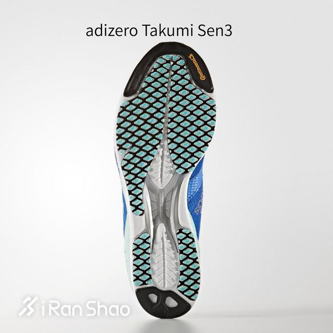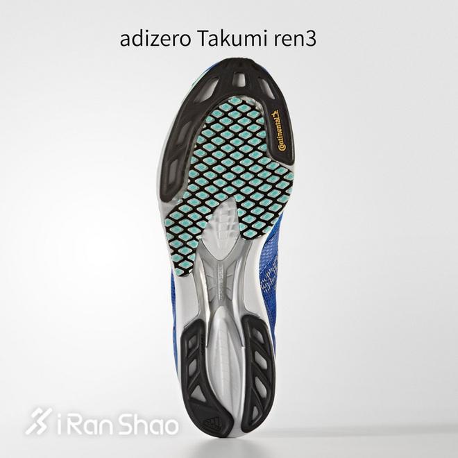 无论是主打竞赛的adizero Takumi Sen还是偏重速度训练的adizero Takumi Ren,“轻”,“快”是两个永恒的关键词。相比adizero adios Boost,adizero Takumi Sen&Ren Boost在重量要轻了很多。其中主要的原因就在于Takumi系列并没有像adios那样大幅地在中底使用Boost,而仅仅只是在前掌部分注入了高密度的Boost材料,更多的还是以传统轻量EVA中底为主。