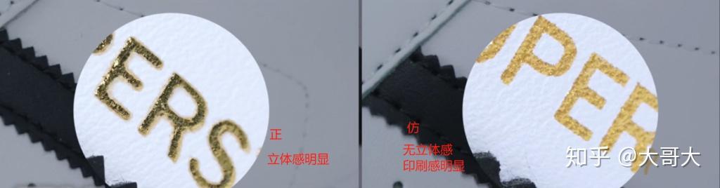 贝壳头作为阿迪达斯三叶草家族zzui久负盛名的鞋款,经典的鞋身设计加上精致的贝壳鞋头,从 1969 年面世以来,受到每一代年轻人的追捧。 虽然目前市面上的金标贝壳头鞋货量很多,但依旧有很多精品品滥竽充数。 今天奢易买就给大家分享阿迪达斯adidas金标贝壳头鞋子真假鉴别的小技巧。 1、鞋头 正品贝壳头板鞋鞋头较软,按压弹性明显,X形纹路圆润饱满,粗细均匀;精品品鞋头较硬,轻易无法按压,X形纹路棱角分明,粗细不一。 2、鞋舌 正品鞋舌标金色有光泽,字体清晰,立体感明显;精品品偏黄,字体模糊 3、侧面 鞋身侧面有SUPER STAR字母 正品字母立体感明显;精品品似印精品的,无立体感 4、透气孔 正品透气孔干净整齐,大小均匀;精品品透气孔毛边明显,比较粗糙 5、中底 正品鞋垫偏蓝,精品品偏白 揭开鞋垫,正品中底有凹凸感明显的蓝色 adidas及三叶草 logo。中底结实,大力摁压凹陷较小。 好了,今天的分享就到这里,喜欢这篇文章的小伙伴请关注奢易买,每天都会为大家更新轻奢品鉴别的小技巧哦。