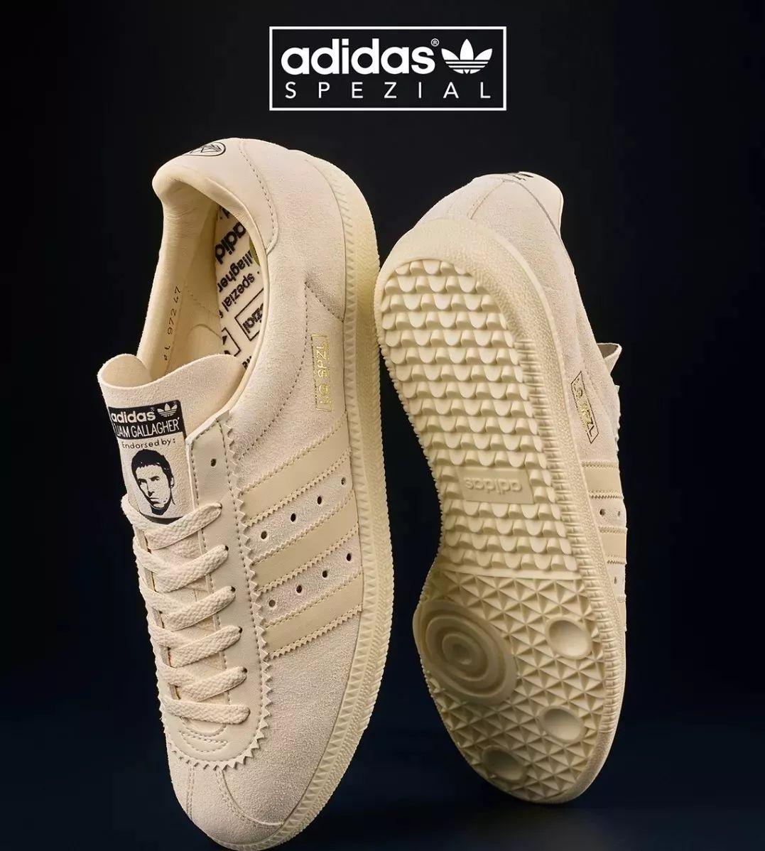 这款鞋创作灵感则来自Liam对阿迪达斯品牌的毕生热爱,满满的细节处理, Liam的头像印制在鞋舌处,鞋侧有一个“LG SPZL”标签。鞋身采用米白色配色,三条纹依然瞩目,带来简洁的外观设计,又是一款百搭鞋款。