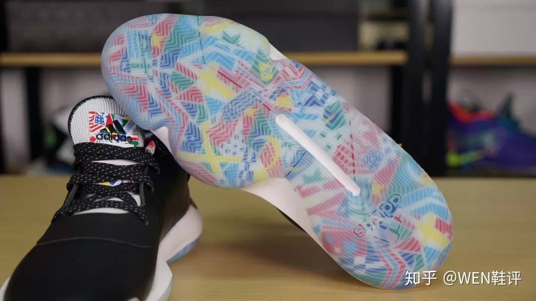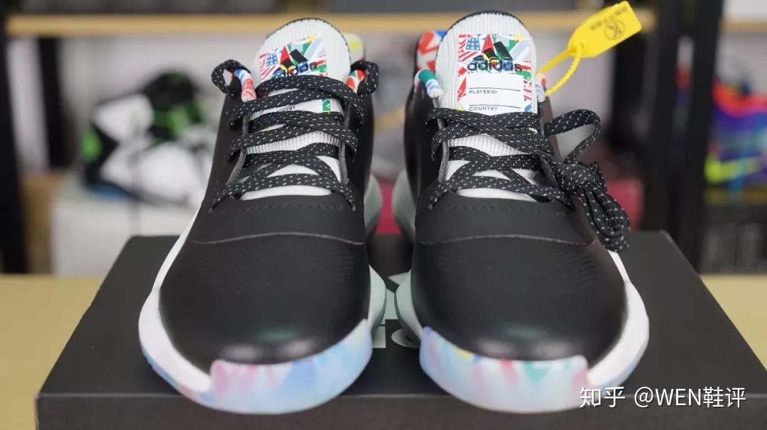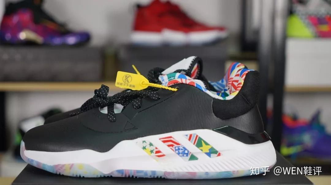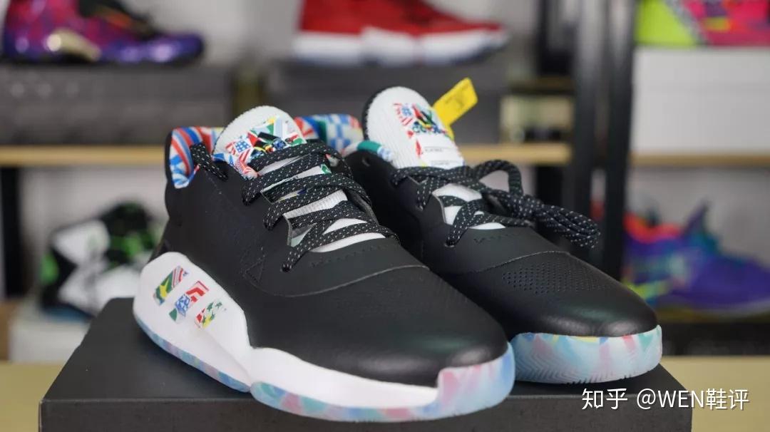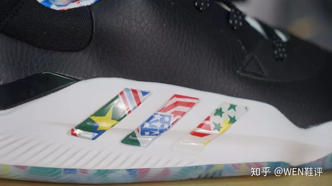 多么熟悉,多么经典,多么******的鞋盒啊。我现在真想灵魂发问一下:你们说到底是单身快5年的我先脱单,还是阿迪先把团队鞋盒的样式改了? 好了,来看球鞋吧。 这次我镁泛入的是低帮版。原因其实有两个:第一,作为更喜欢突破的我来说,我个人更偏爱低帮鞋,第二,之前我们做过的Marquee Boost,Hypredunk X,包括之前那款Pro Bounce Madness2019,几乎所有的团队鞋款我们都入手的是普通的高帮版,而没有入手低帮版,这次正好换个口味,换个风格。 拿到这款鞋的第一眼,我会有点想到我们手里的那款利拉德5。因为它的鞋面材质和我们手里那款CNY配色的利拉德5一样,是皮质的鞋面。很复古。 在鞋面前掌的位置,有做透气孔的处理。在鞋带孔的周围,是一层额外的加固,这个设计不管是之前的米切尔一代还是MB上面都有体现,对于鞋面的包裹可以起到一定提升的作用。不过这双鞋有一个很有意思的店:整双鞋只有4个鞋带孔,所以这么少的鞋带孔会不会对球鞋的包裹起到一些副作用?是我比较关心的一个问题。 这双鞋的鞋舌,大家可以看到,也是有做到一个透气的处理,这样一来,鞋舌的厚度会比较薄,拉紧鞋带之后会有勒脚的风险。 这双鞋的中底就是大家zzui熟悉的bounce了。在鞋面部分还有一个很有趣的设计,依旧是阿迪zzui喜欢的结构抗扭。不过和之前直接在外侧整一个外置塑料抗扭片不同的是,这款PB19是直接将中底的bounce拉长到鞋面上,同时在鞋面的bounce区域,有硬质塑料的阿迪logo。 后跟部分,上面这部分设计的很厚,但是不知道为什么,我觉得阿迪祖传不跟脚的坏习惯这双PB19也会完美的继承。后跟里内置和外置tpu的配置都是常规操作,绝对不会少。 鞋底方面,漂亮的水晶底加上熟悉的人字纹。不过这次阿迪的人字纹是做了改良的。可以明显看到鞋底是有分区域设计的,而且和之前“大刀阔斧”的分区域不同的是,这次的鞋底切割得更为细致。 同时,鞋底正中央的镂空也是阿迪习惯性的结构抗扭。说到这里我镁反试试这双鞋的抗扭。 这双鞋的配色,是阿迪达斯专门为了即将开始的篮球世界杯所推出的特别版配色,所以大家可以看到包括鞋舌,鞋身的logo,鞋的内衬,鞋底都有很多国旗的设计。我觉得还是一个比较不错的创意和配色。 其实整双球鞋看下来,就会觉得这双鞋充斥着满满的阿迪达斯风格:简约。 除了常规的造型,你几乎看不到任何多余的设计,所有的设计都是基于球鞋性能本身,能脚踏实地,绝对不花里胡哨。说句中肯的话,这样的思路,能保证下限,也就是不犯错,但是这款产品的上限,属实很低。
