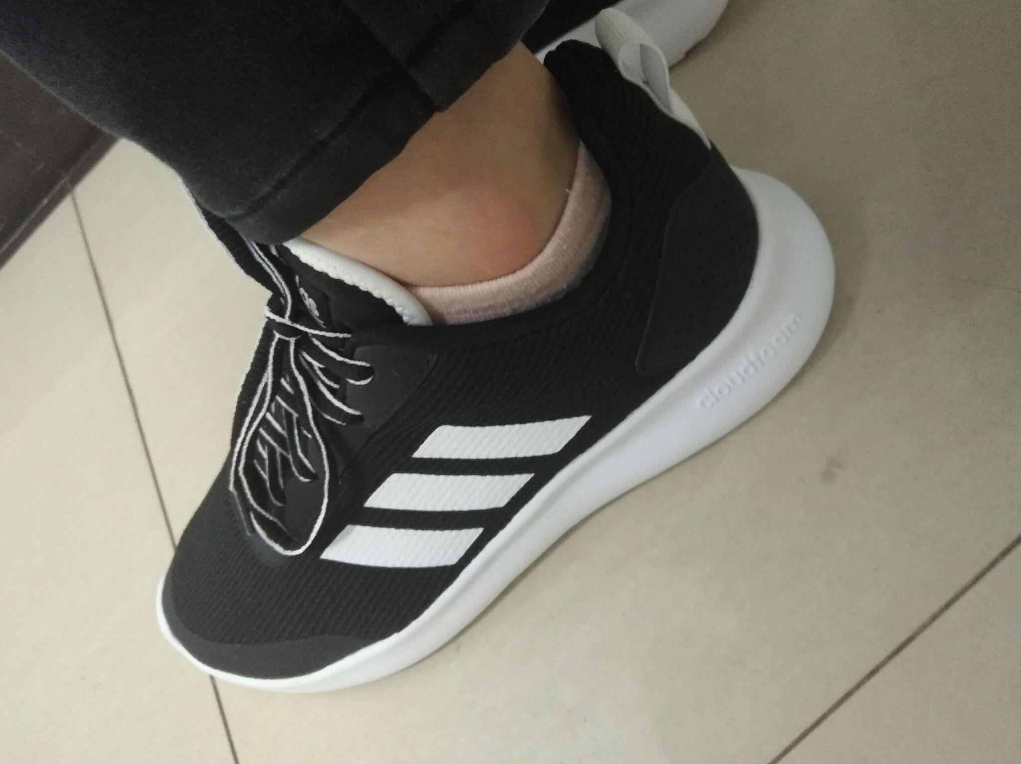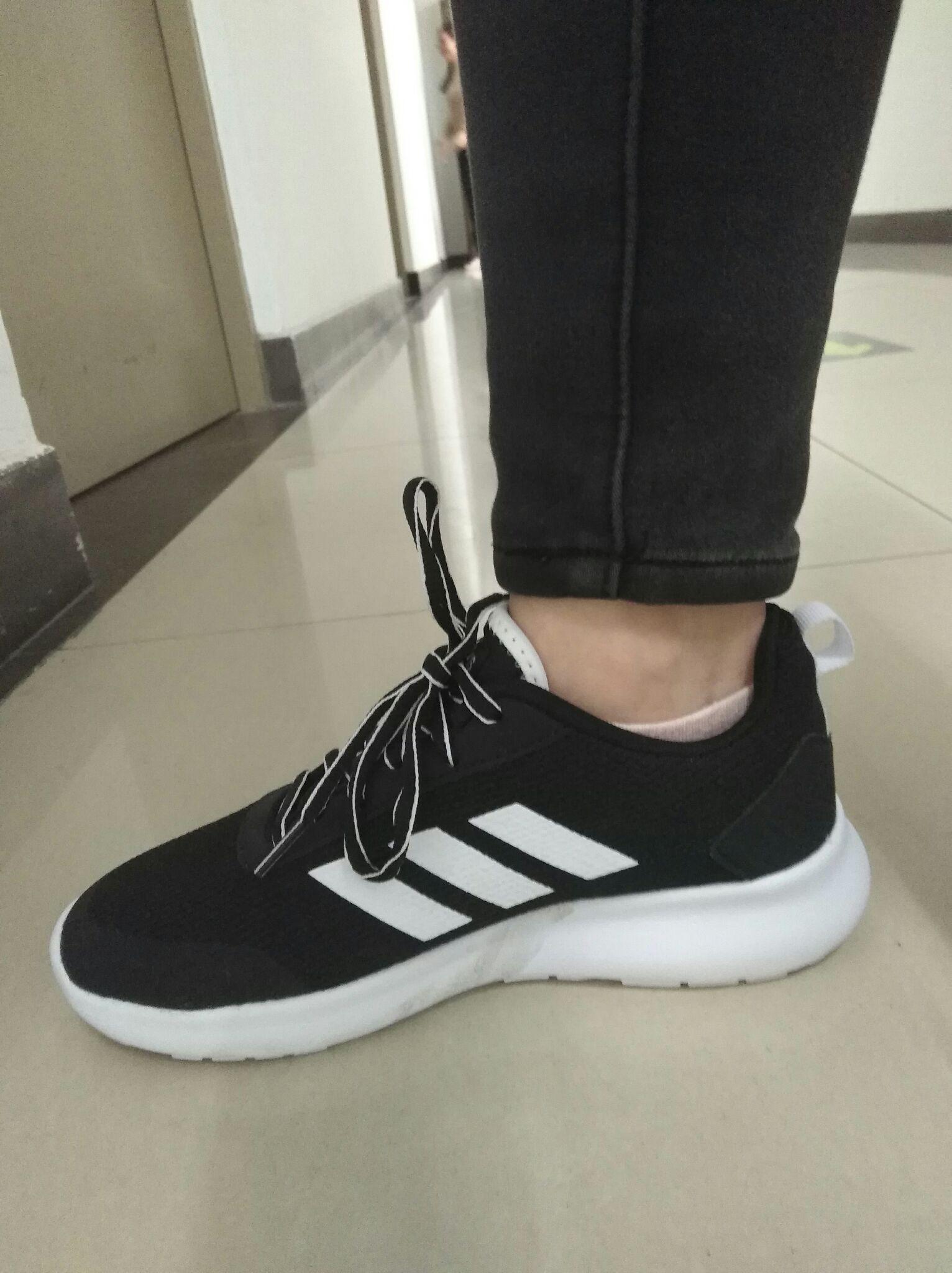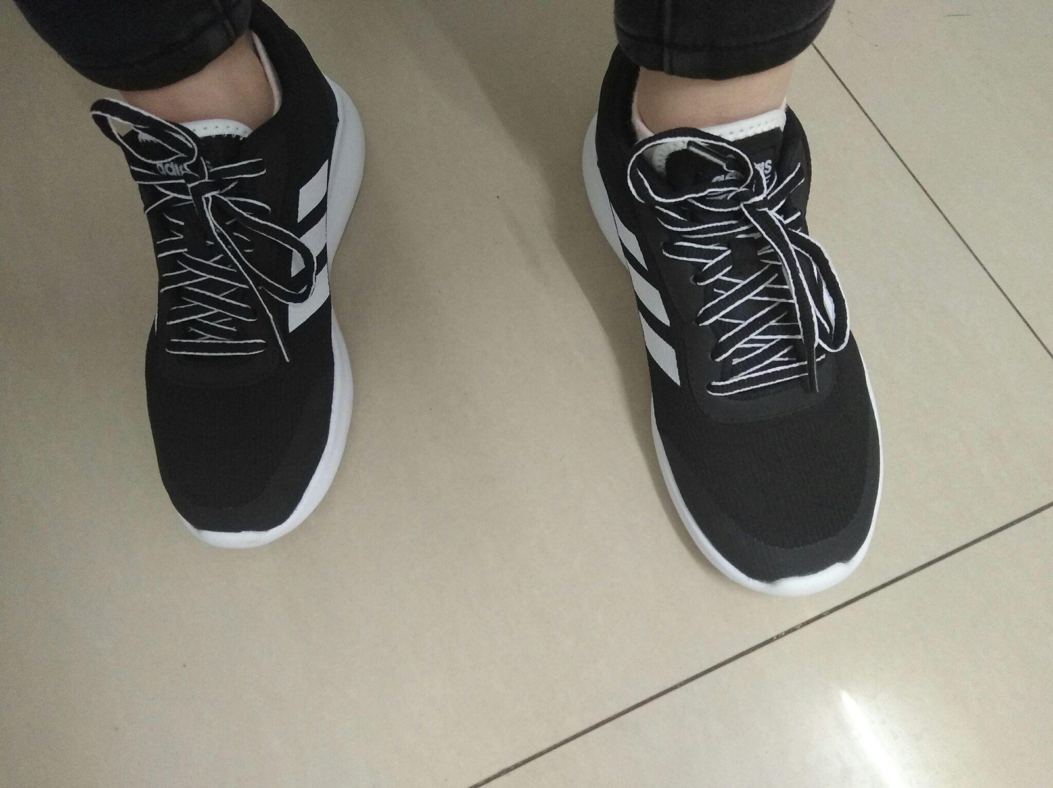 昨天趁女王节打折,去淘宝阿迪达斯官方旗舰店入手了一款阿迪达斯跑步鞋。眼巴巴等到0点迅速下单,精品到这双170块阿迪达斯。先晒购买记录: 不得不说,顺丰的物流还是蛮快。北京安检加强还可以在发货后一天内送到,物流体验还是蛮不错的! 下面就是激动人心的开箱环节! 从顺丰拿到后外包装是这样的,感觉有点廉价,包装也不是很好。 打开看里面有另一个盒,这个盒更破,还有一张出货单。 好在鞋还是好好地放在盒里,有纸减震。 因为选的是基础款,感觉上脚挺白搭的,穿什么裤子都好看。我这条是普通黑色牛仔裤,之后试了一下阔腿裤也很好看。 (这张图倒着照得,效果不太好ho) 下面说一说穿着感想: 上脚效果非常棒!本来以为会特别显脚大但是意外地没有!因为我本身脚小且瘦,怕阿迪不适合买的时候特别犹豫,但是没有想到特别显小!吹爆阿迪! 面料厚度适中,透气而且挺舒服的,脚感不错,跑步也很合脚减震,接下来春夏两季可以穿个爽了 ! 总之阿迪的鞋上脚是真舒服,基本款都这么惊艳,以后要多多买啦! (图片没有滤镜,在较暗光源下拍摄。)