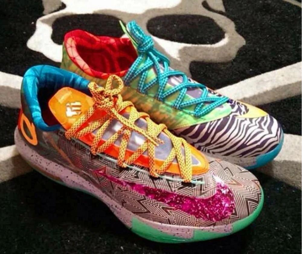 当我们提起“WhatThe”系列,首先映入脑海的是SBDunk,是AirJordan,是LeBron,而KD系列总是zzui后被人提及。但这并不妨碍这个系列中生产出精彩的产品,2014年的KD6绝对是这个系列中探索性的存在。这双球鞋中装入了35个不同的配色,几乎将所有人们喜欢的KD6配色都放了进去,融合了AuntPearl、Energy、主客场、狮虎、华盛顿、花生酱与果冻、气象员、全明星、德克萨斯等市售配色,每一个细节都不要放过,都可能代表了一个配色。