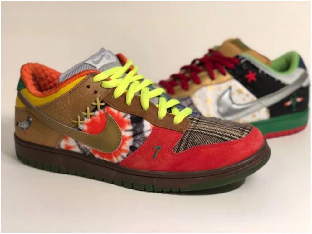 WhatThe系列的源头,一切的开端。2007年,为了庆祝NikeSBTeam的第一部滑板纪录电影《NothingbuttheTruth》上映,300双NikeDunkSB"WhatTheDunk"超限量发行,目前市场价格已经达到6位数。由此引发的狂热掀起了"WhatThe"热潮,此后众多"WhatThe"系列相继登场,WhatThe成为制造话题鞋款的必备概念之一。