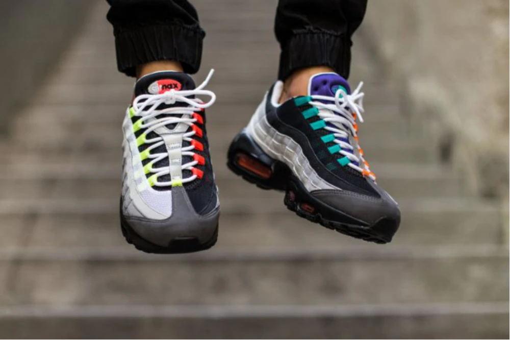 左鞋融合了SafetyOrange和Grape,右鞋则体现了Neon和HotRed的精髓,后跟分别以蓝色和红色的NikeAirLogo呈现,3M反光细节的加入则更添亮点,也更符合AirMax95跑鞋的功能定位。这款鞋带有渐变色的层次感做的恰到好处,整体灰黑的色调,只不过在细节注入区分,是一款日常穿搭的加分设计。或许并不是每个人都能驾驭五彩斑斓的“WhatThe”,但是每个人都可以上脚这双NikeAirMax95“Greedy”,让细节决定你的品味。