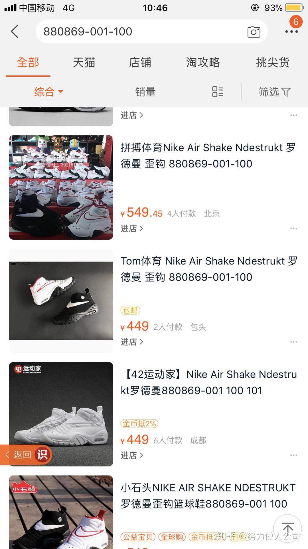 3、某宝店铺是很多人购买莆田鞋的第一选择,因为退换比较简单,而且某宝上鞋子都是明码标价的,所以不存在上当受骗等问题。但是某宝上买莆田鞋,价格一般比其他渠道贵些,而且质量也确实不咋地。